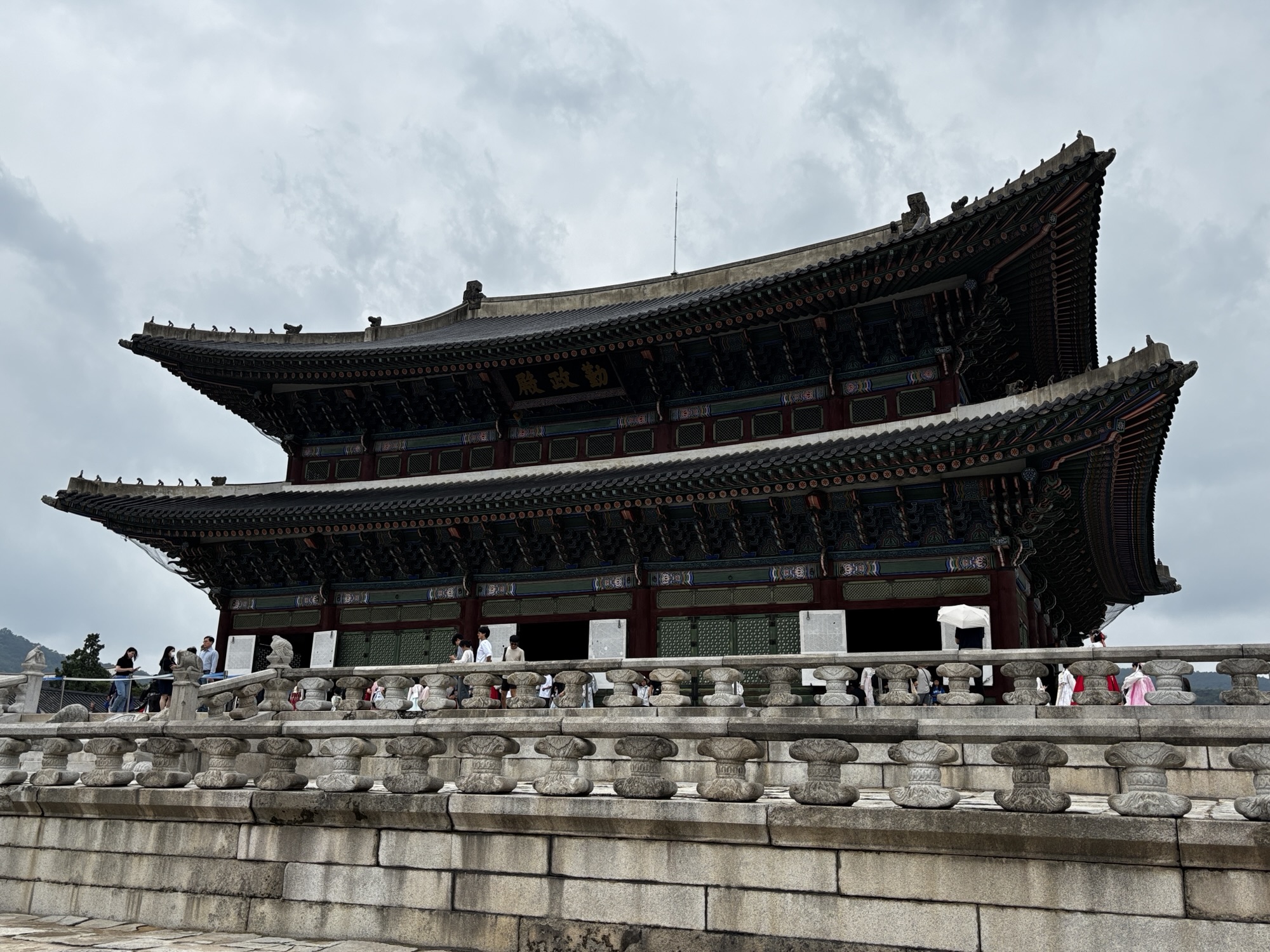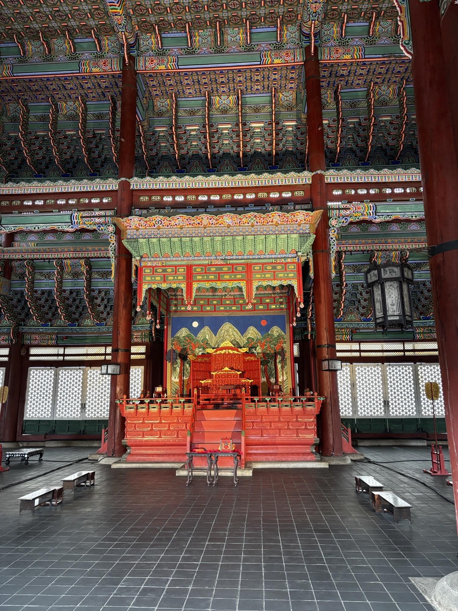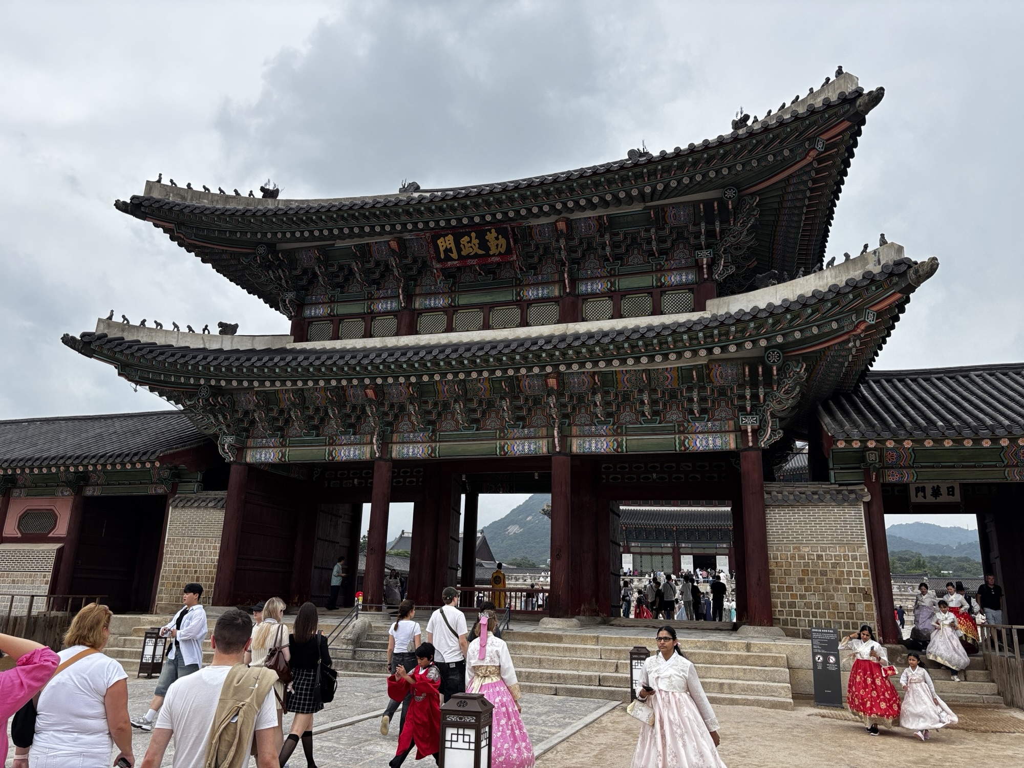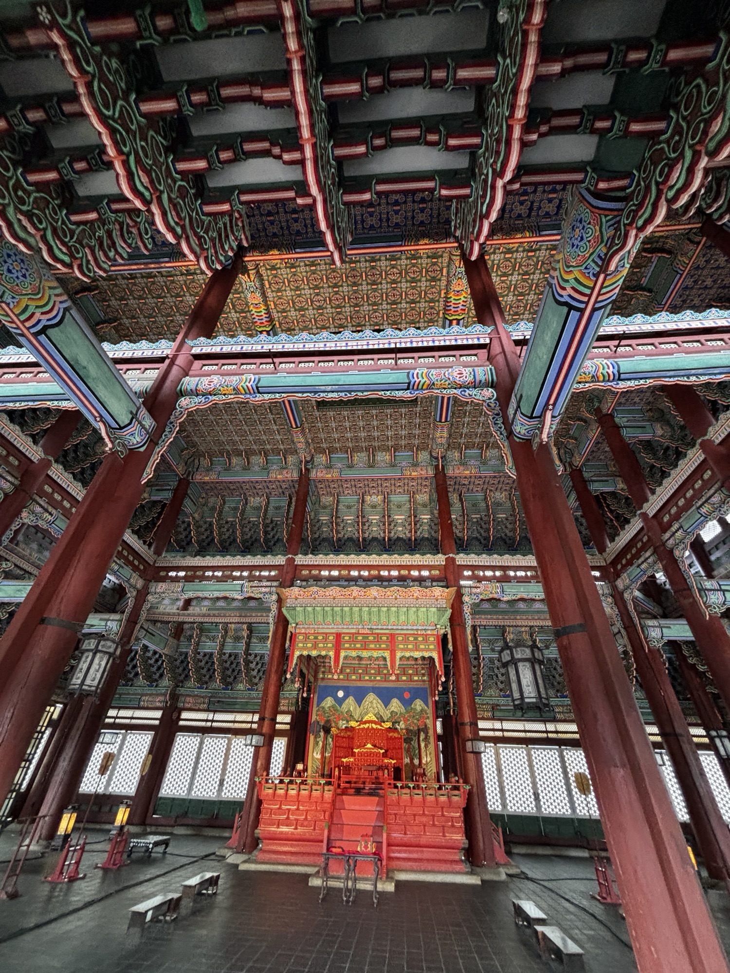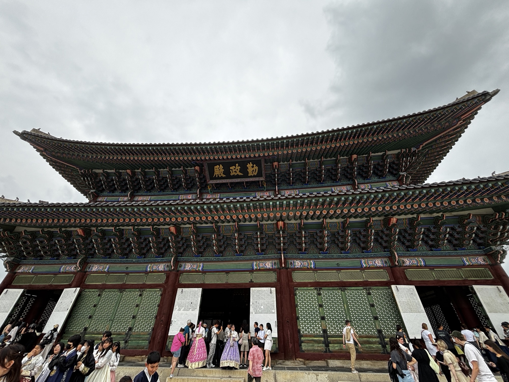 Zaczynamy zwiedzanie od bramy głównej i dziedzińca a później przechodzimy do Geunjeongjeon. To główna sala tronowa – serce władzy. To tutaj odbywały się audiencje królewskie i uroczystości państwowe.