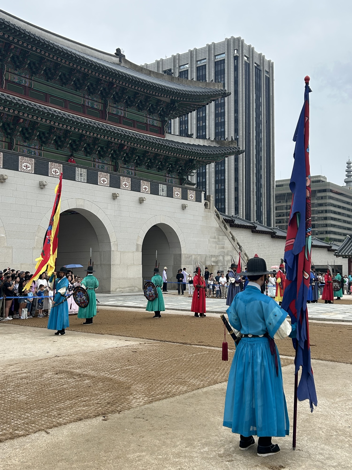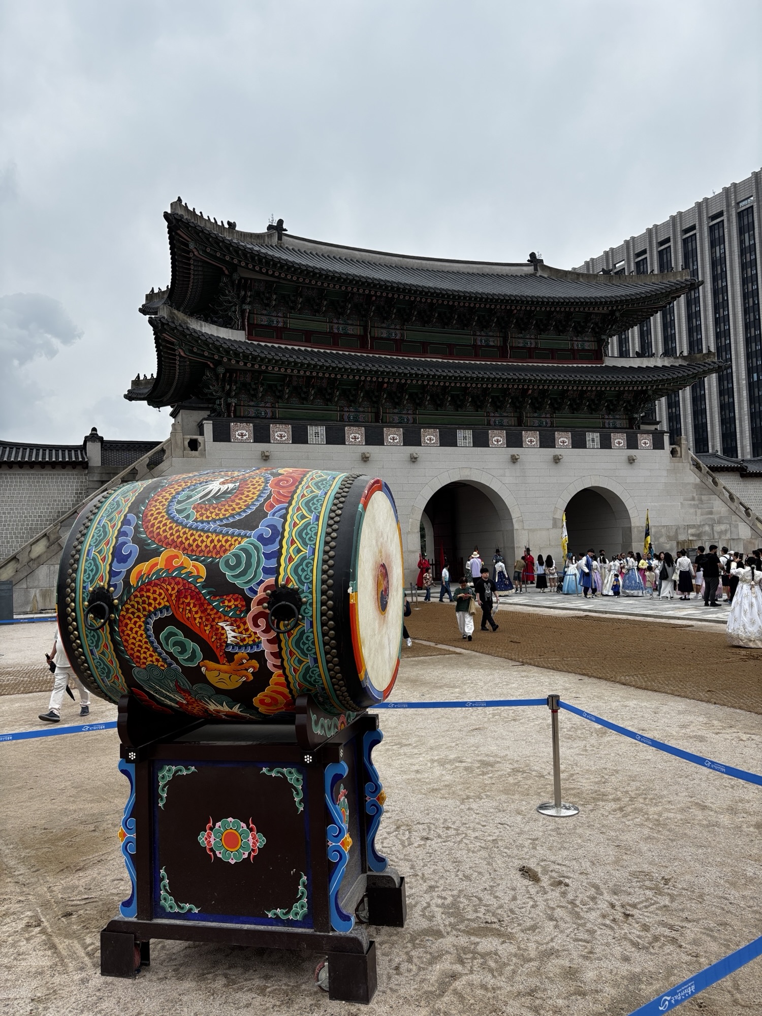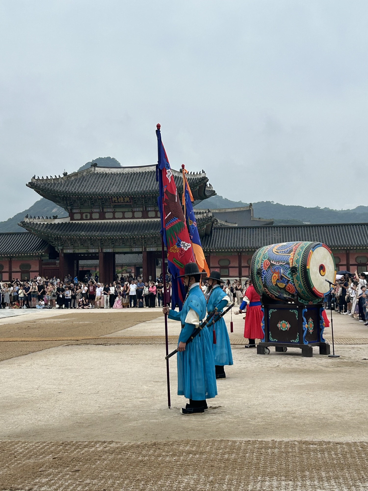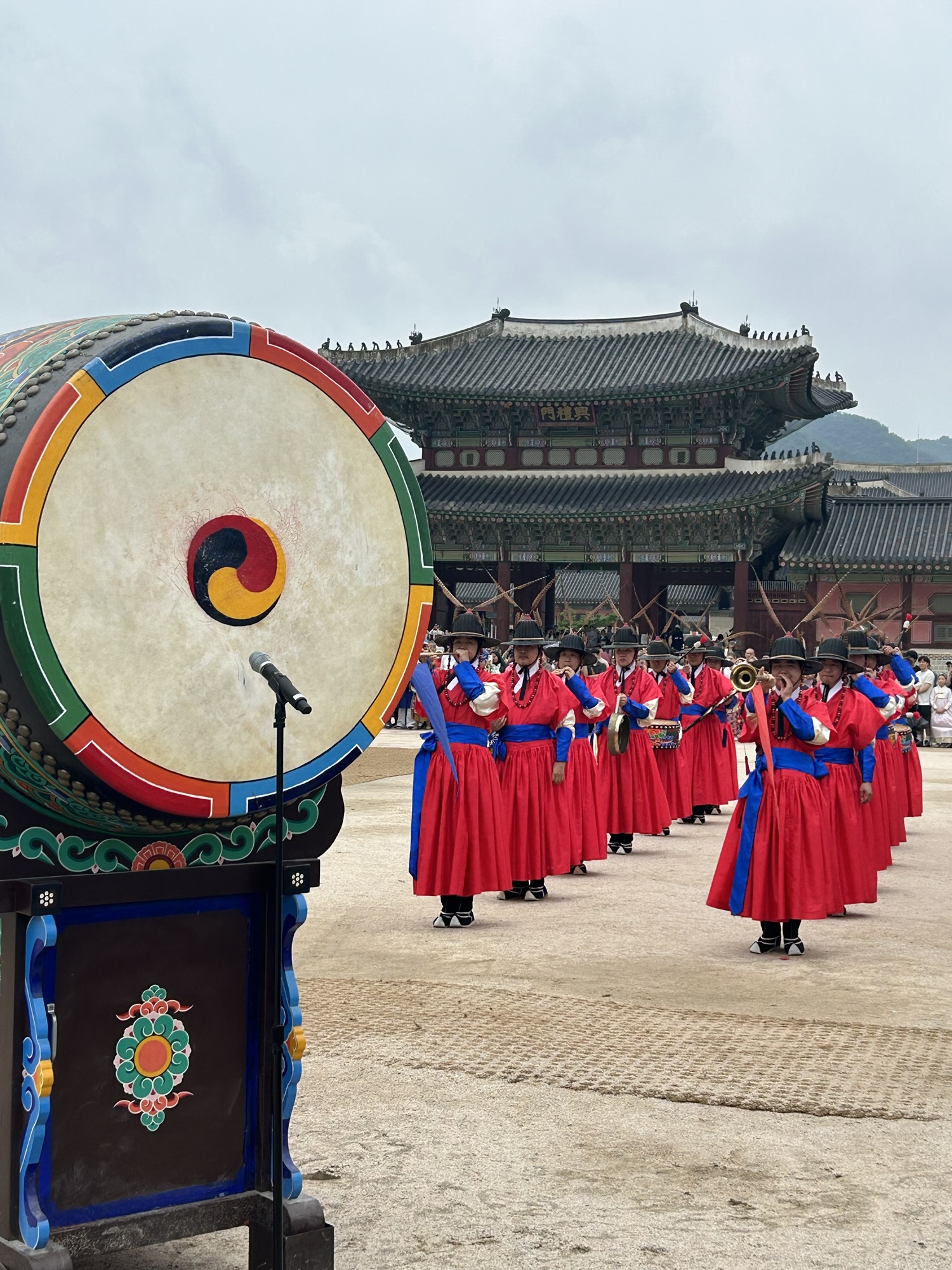 Zaczynamy zwiedzanie od bramy głównej i dziedzińca a później przechodzimy do Geunjeongjeon. To główna sala tronowa – serce władzy. To tutaj odbywały się audiencje królewskie i uroczystości państwowe.