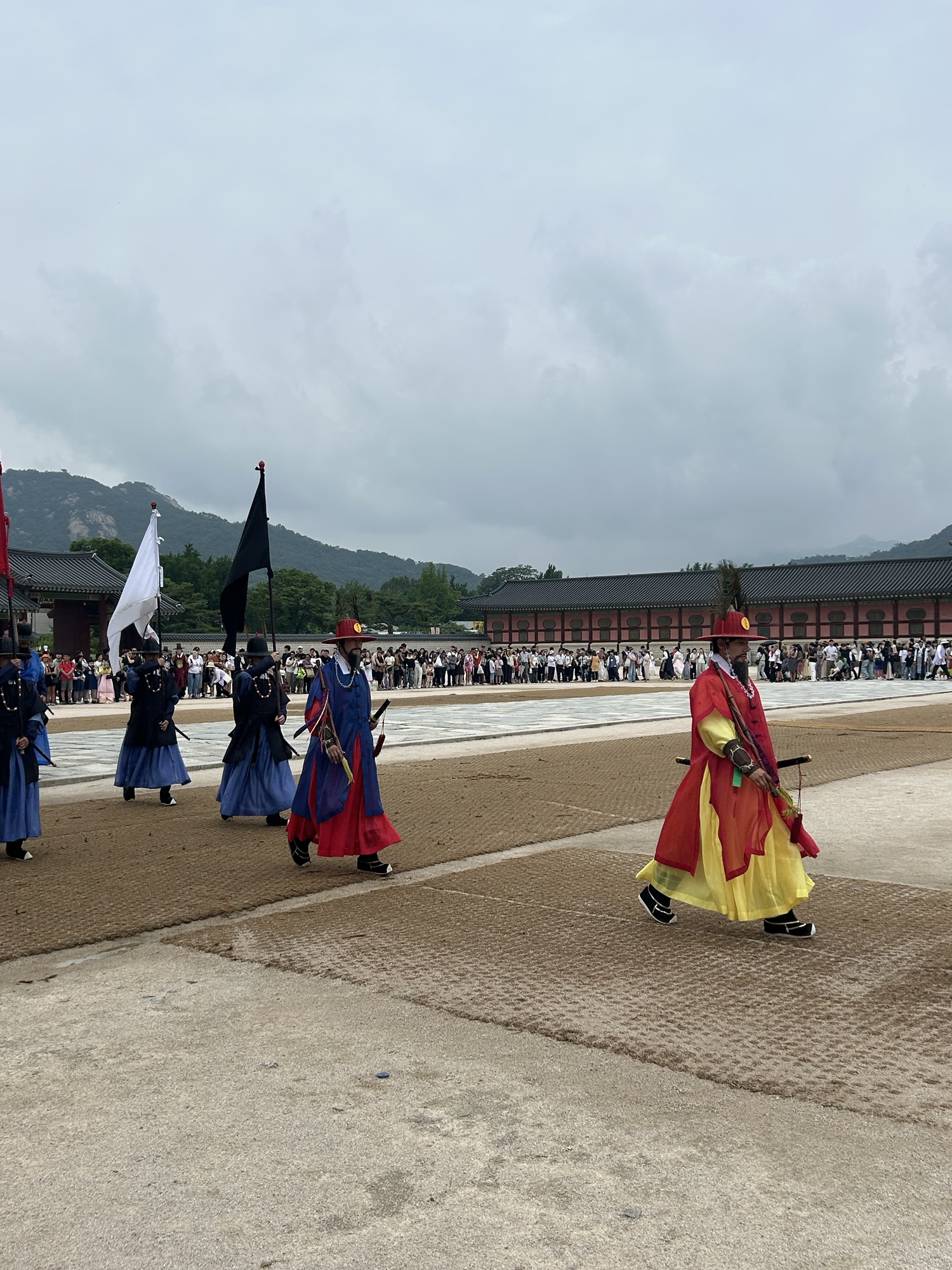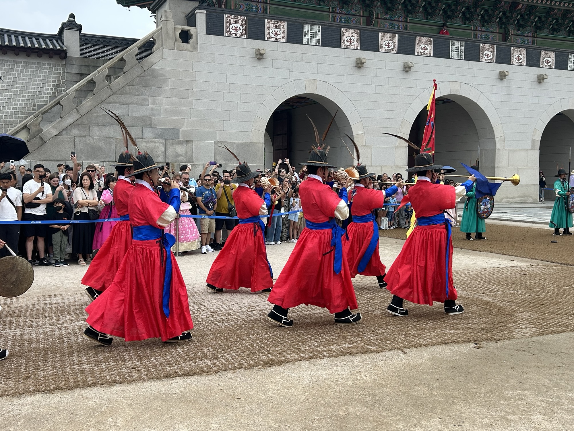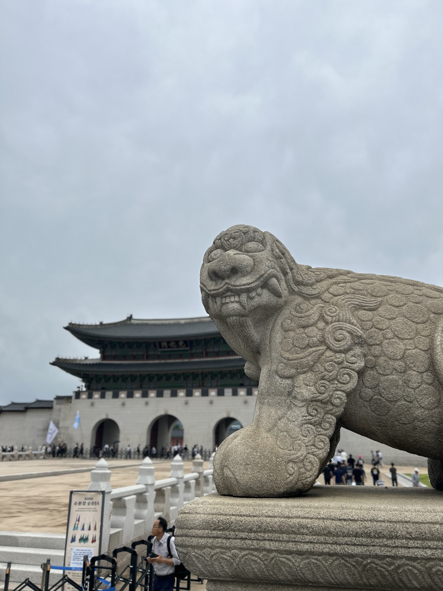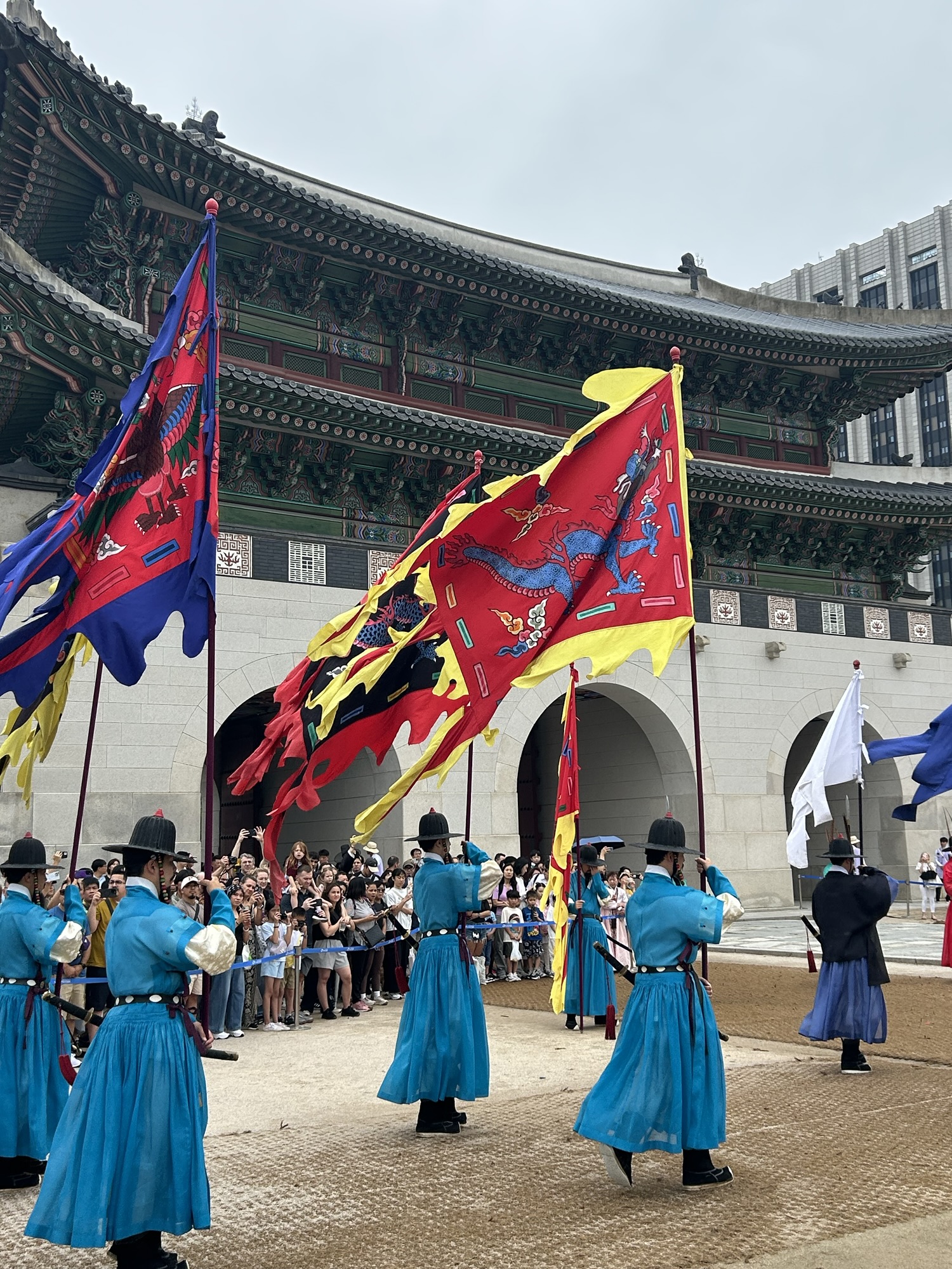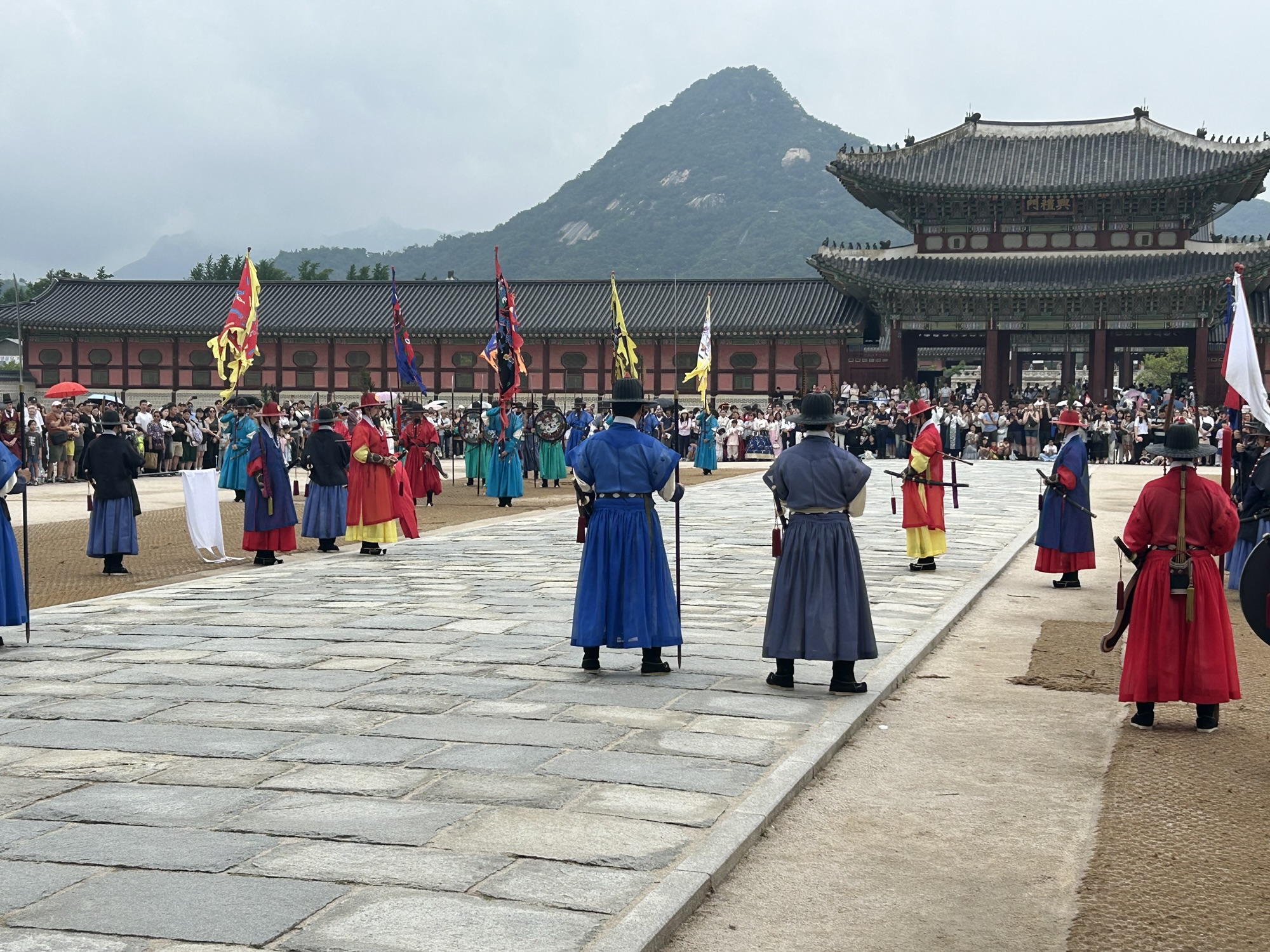 Zaczynamy zwiedzanie od bramy głównej i dziedzińca a później przechodzimy do Geunjeongjeon. To główna sala tronowa – serce władzy. To tutaj odbywały się audiencje królewskie i uroczystości państwowe.