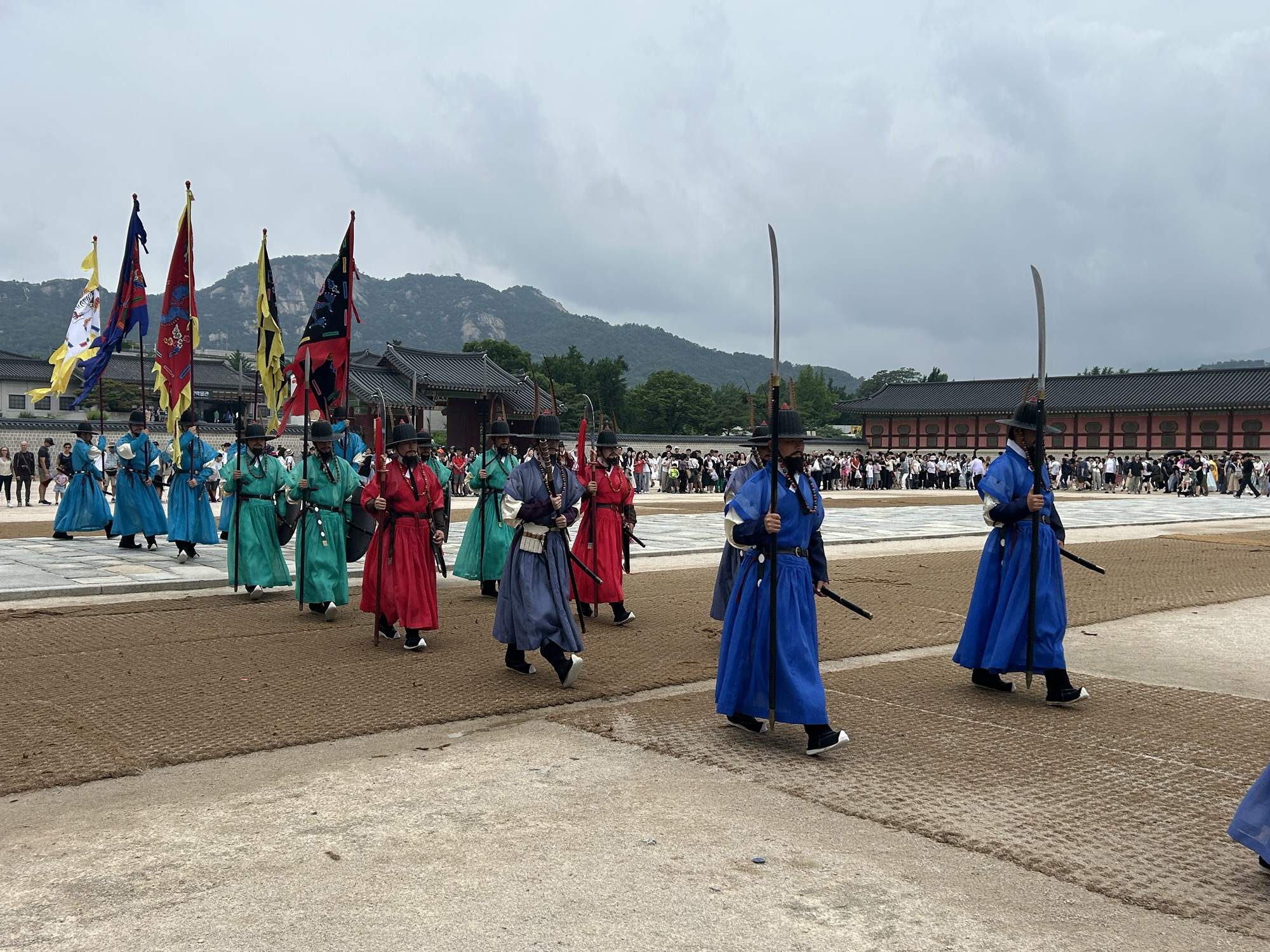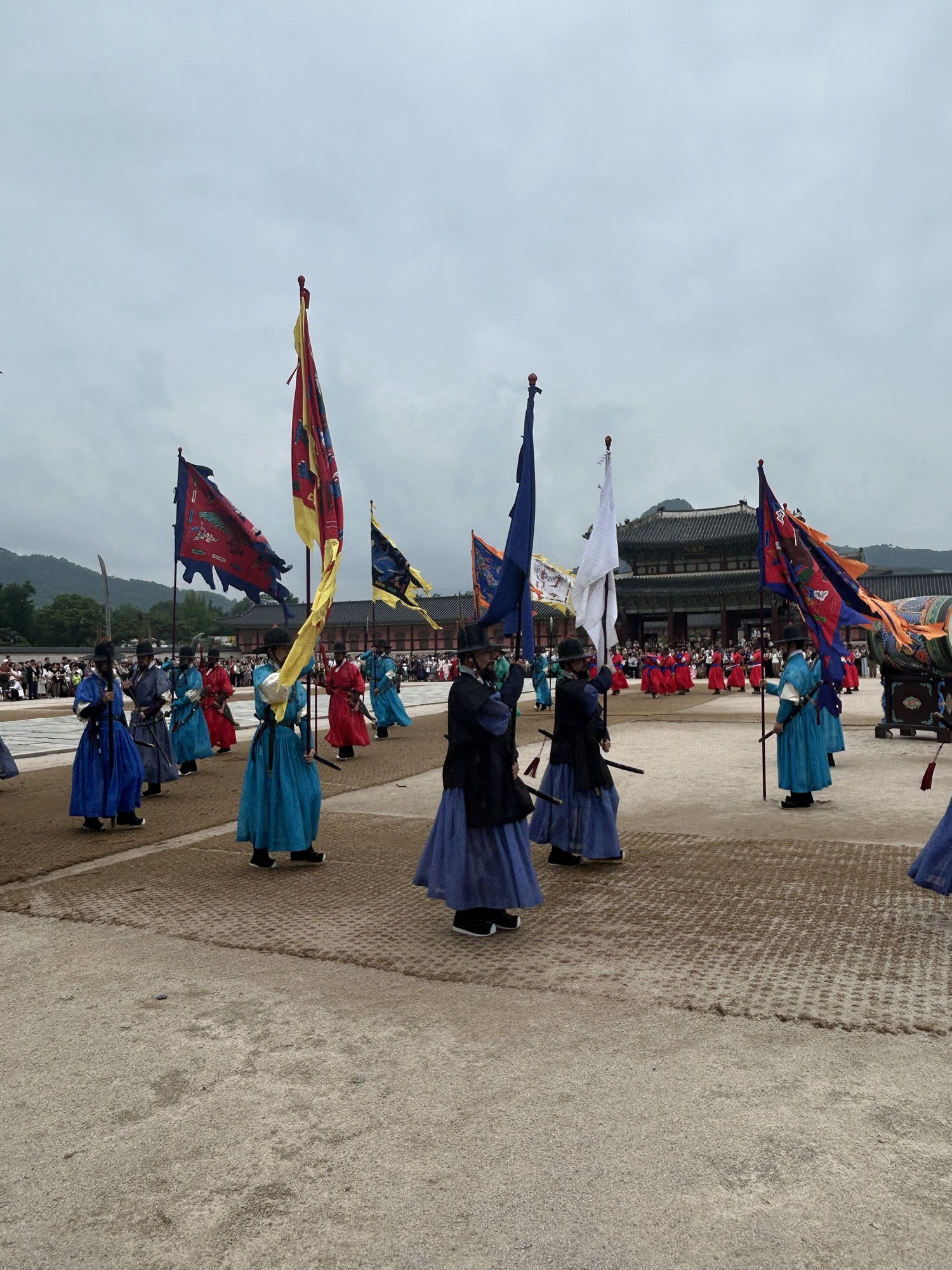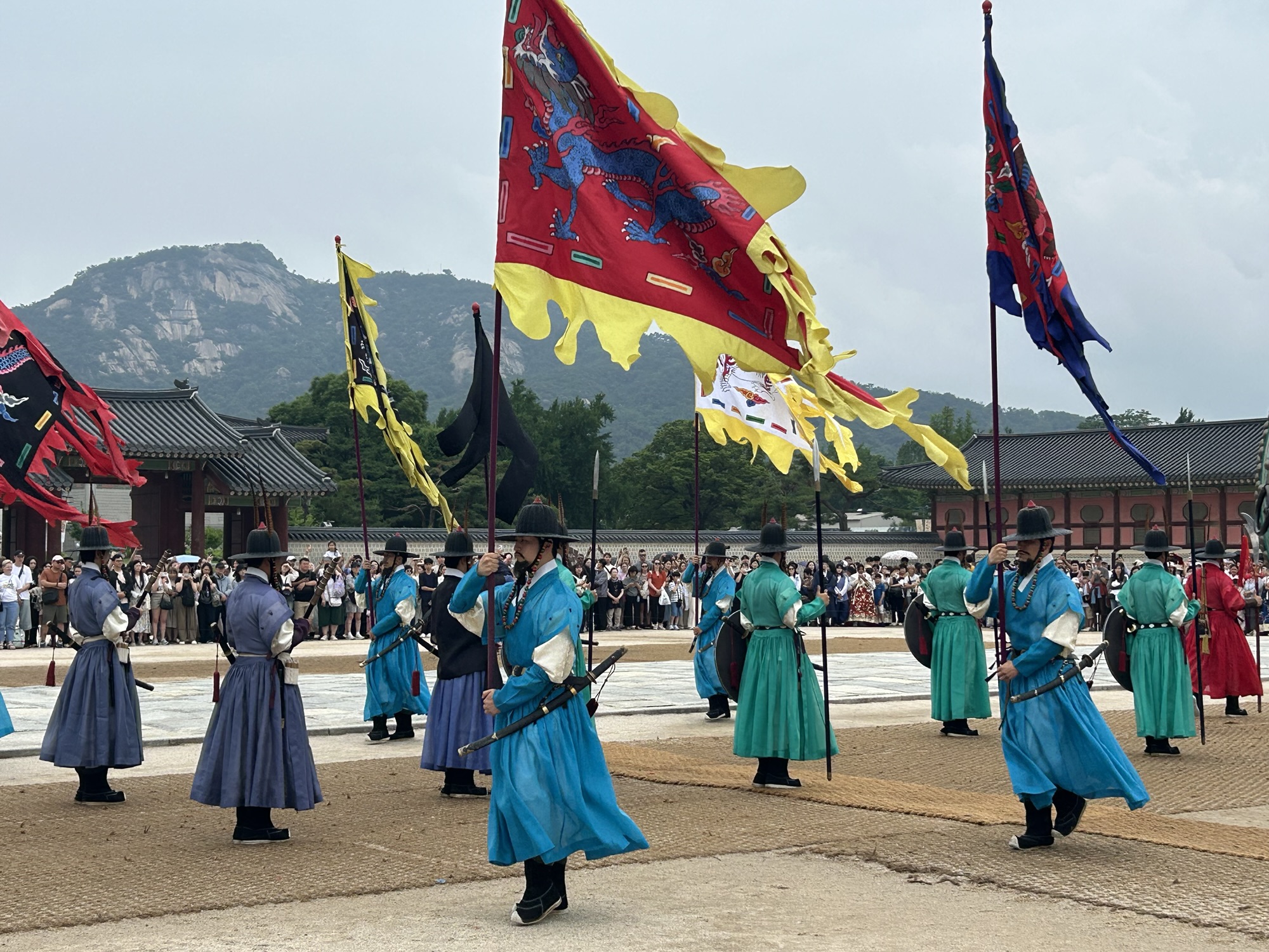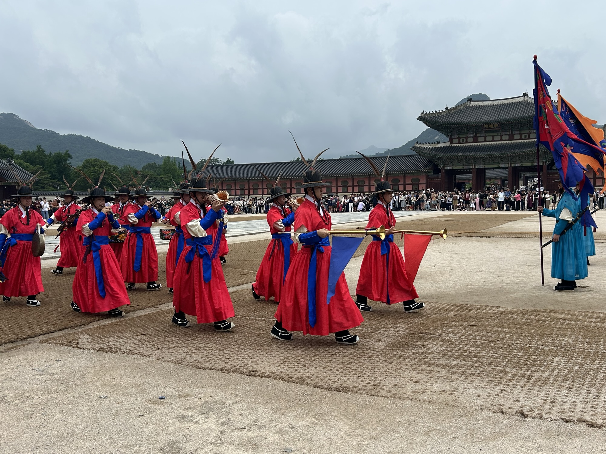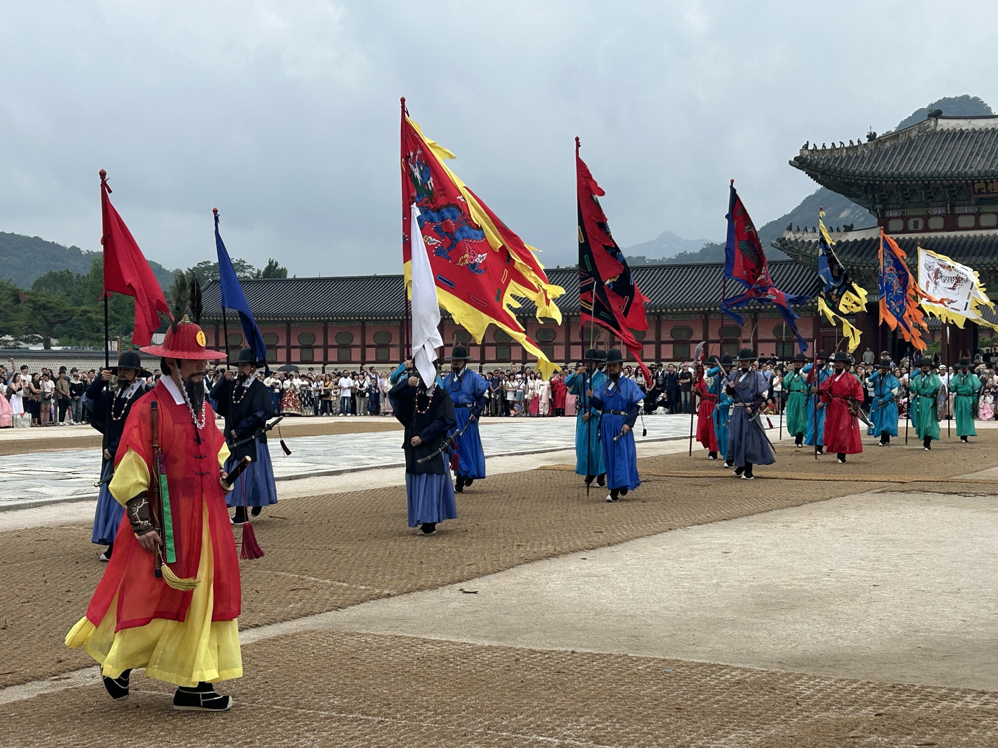 Zaczynamy zwiedzanie od bramy głównej i dziedzińca a później przechodzimy do Geunjeongjeon. To główna sala tronowa – serce władzy. To tutaj odbywały się audiencje królewskie i uroczystości państwowe.