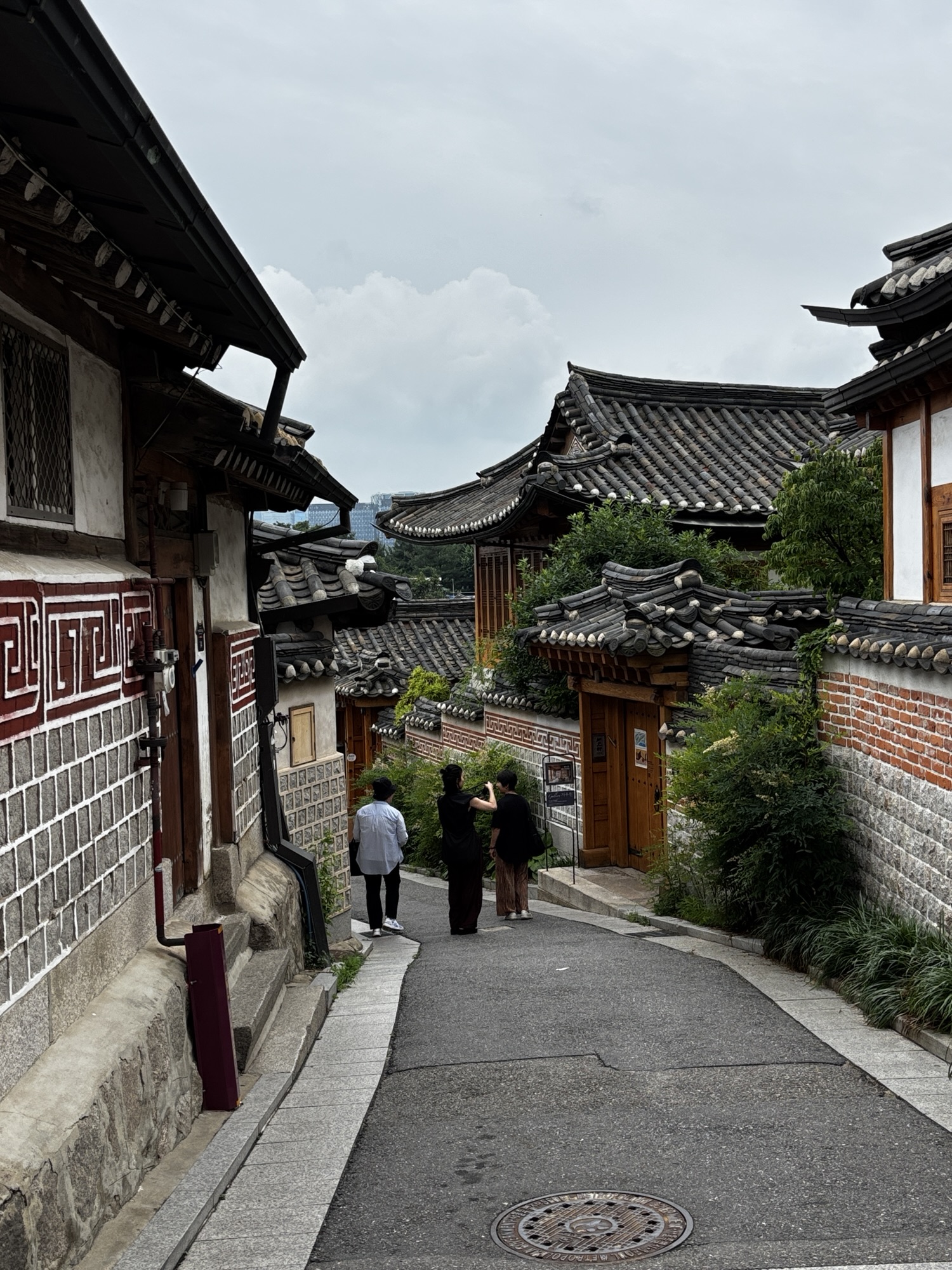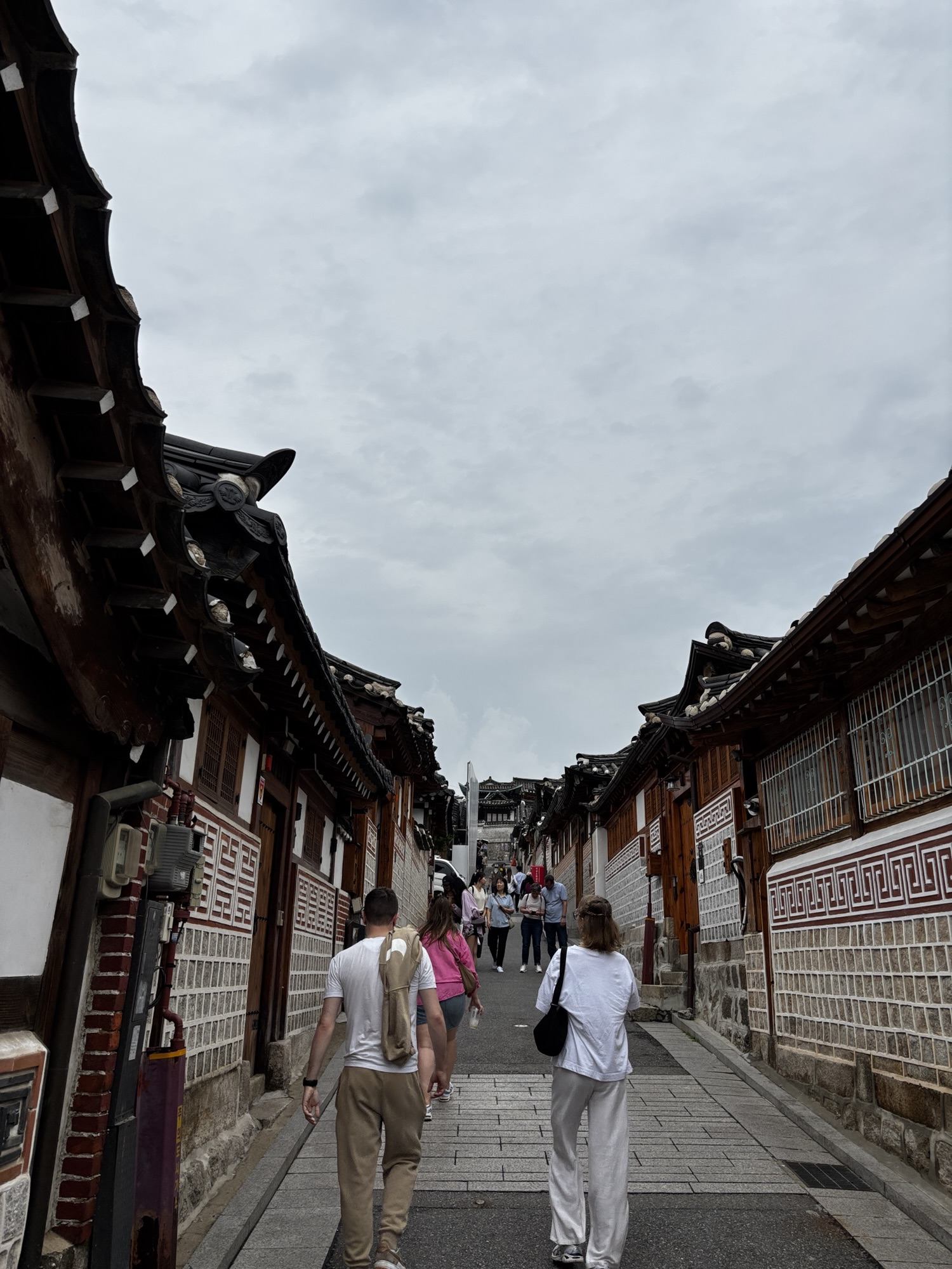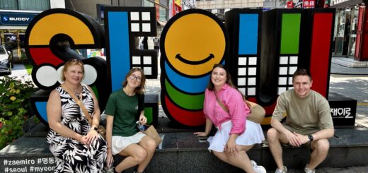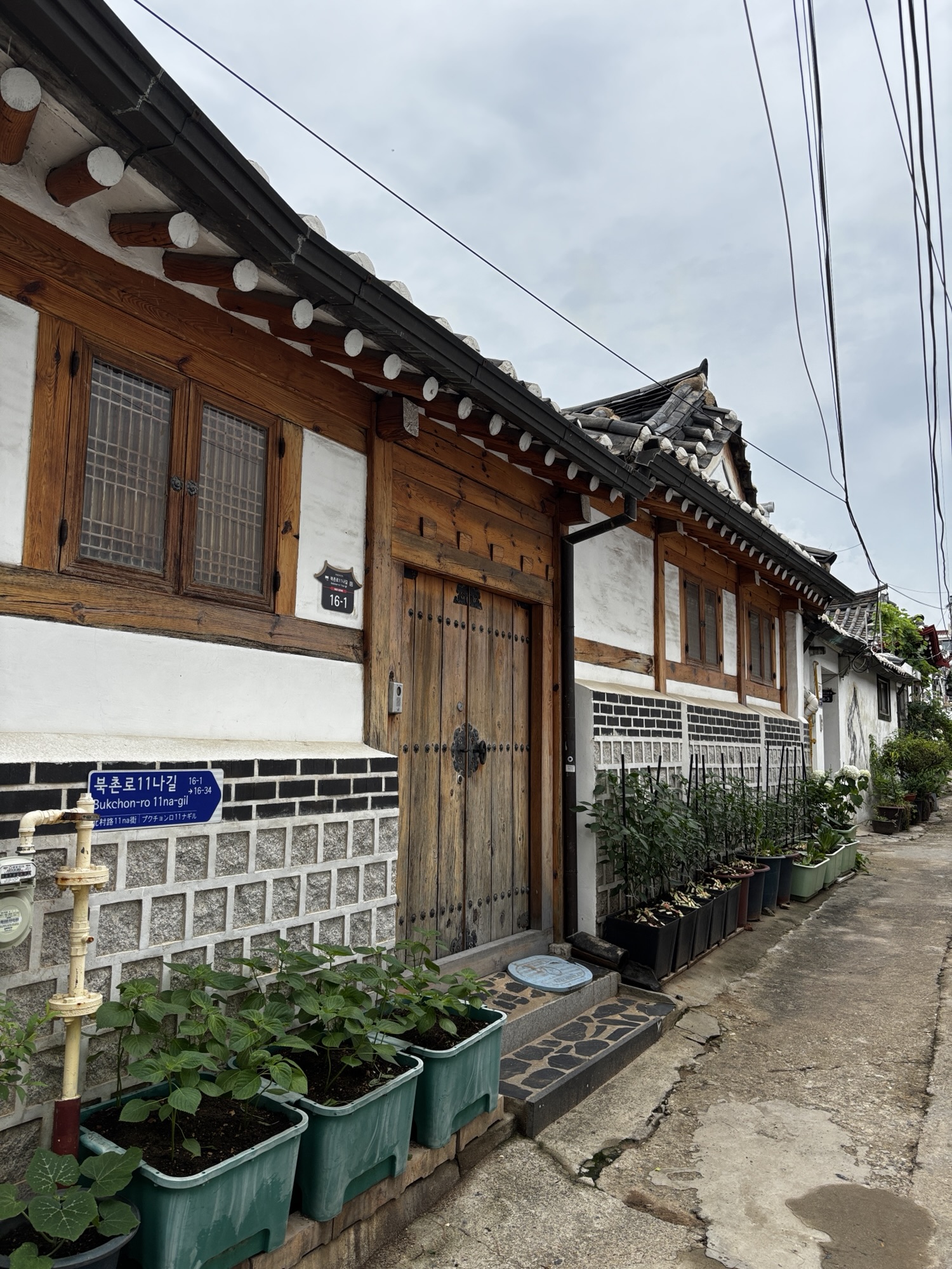 Oddajemy sukienkę do wypożyczalni i powoli, spacerkiem idziemy na pobliską, jakże urokliwa dzielnice Bukchon Hanok Village. To jedno z najbardziej urokliwych i autentycznych miejsc w Seulu, które przenosi odwiedzających w czasy dynastii Joseon. Znajduje się między Pałacem Gyeongbokgung w którym byliśmy przed chwilą a Pałacem Changdeokgung w którym będziemy we wtorek. Dzielnica to słynie z dobrze zachowanych tradycyjnych koreańskich domów – hanoków.