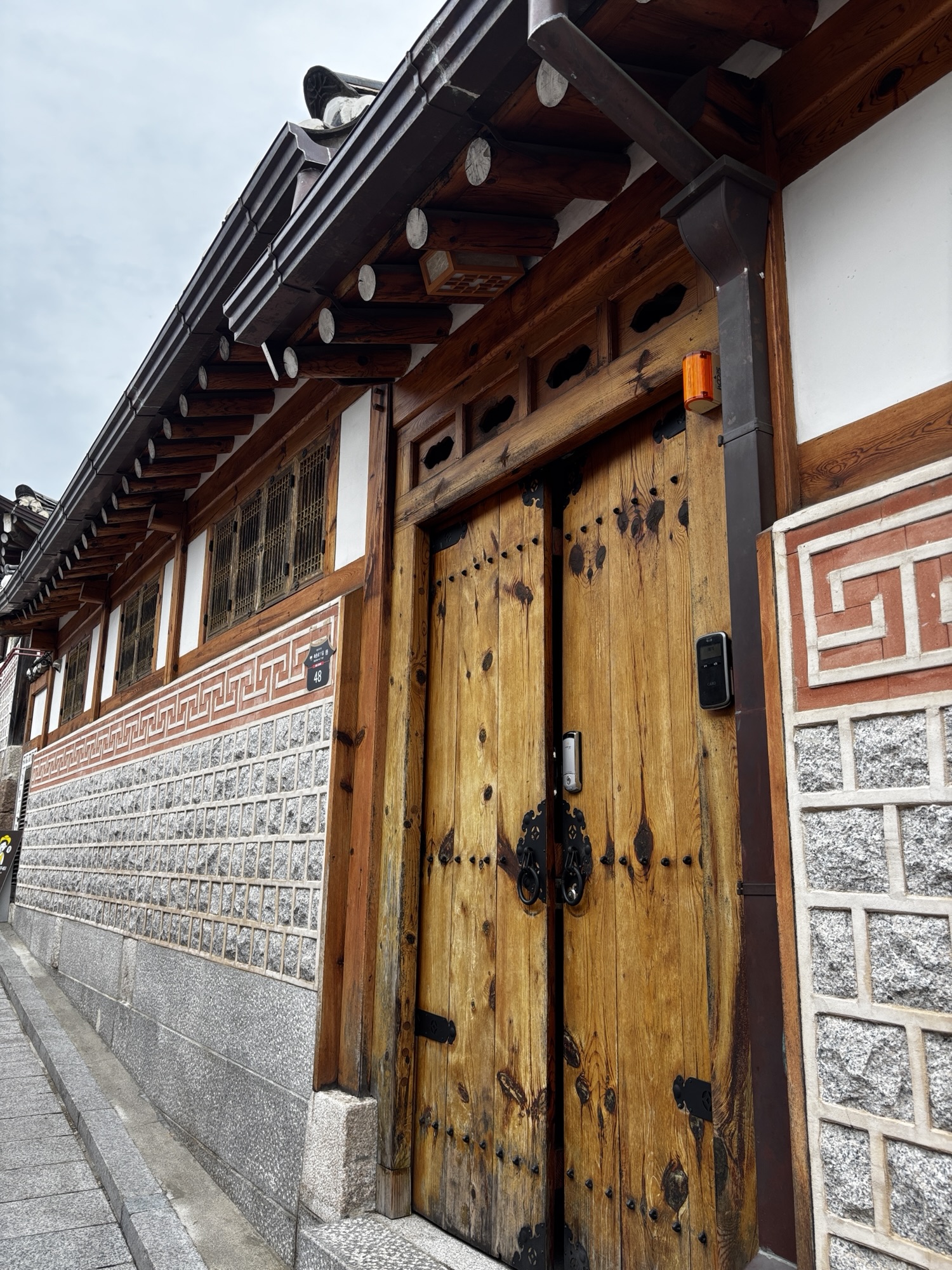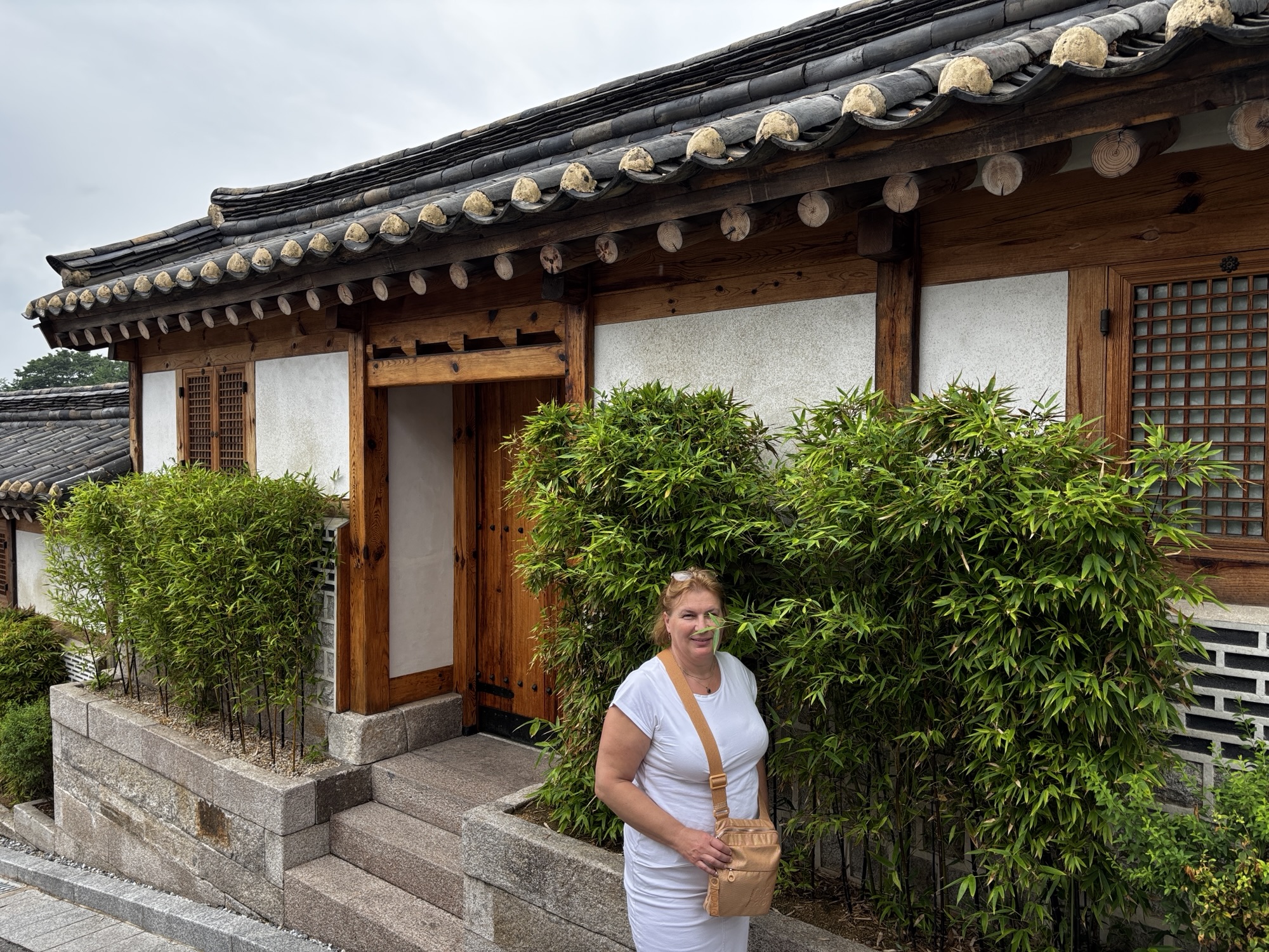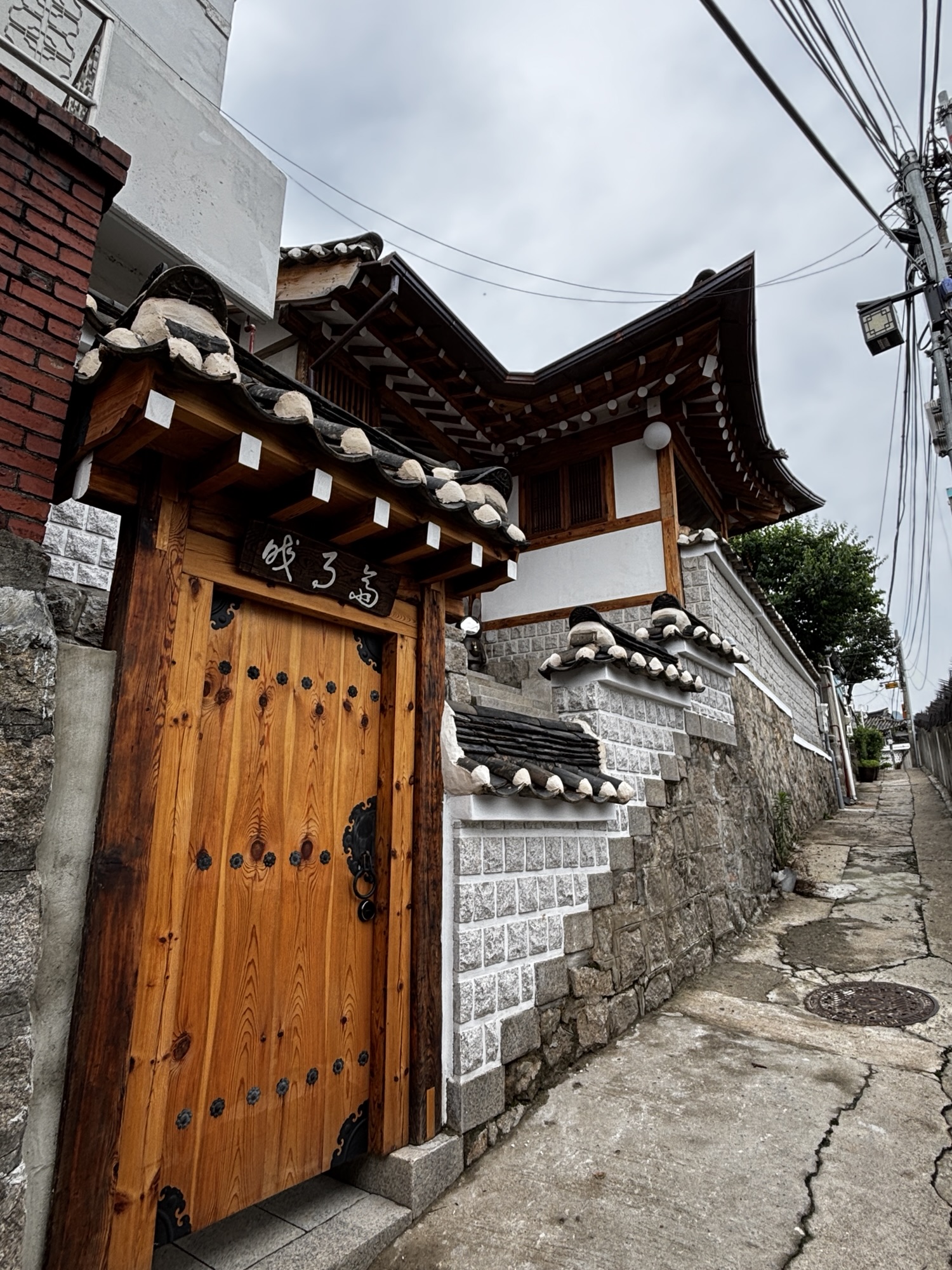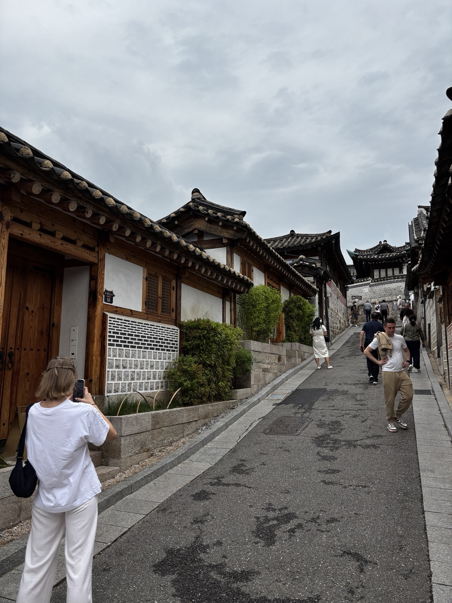 Oddajemy sukienkę do wypożyczalni i powoli, spacerkiem idziemy na pobliską, jakże urokliwa dzielnice Bukchon Hanok Village. To jedno z najbardziej urokliwych i autentycznych miejsc w Seulu, które przenosi odwiedzających w czasy dynastii Joseon. Znajduje się między Pałacem Gyeongbokgung w którym byliśmy przed chwilą a Pałacem Changdeokgung w którym będziemy we wtorek. Dzielnica to słynie z dobrze zachowanych tradycyjnych koreańskich domów – hanoków.