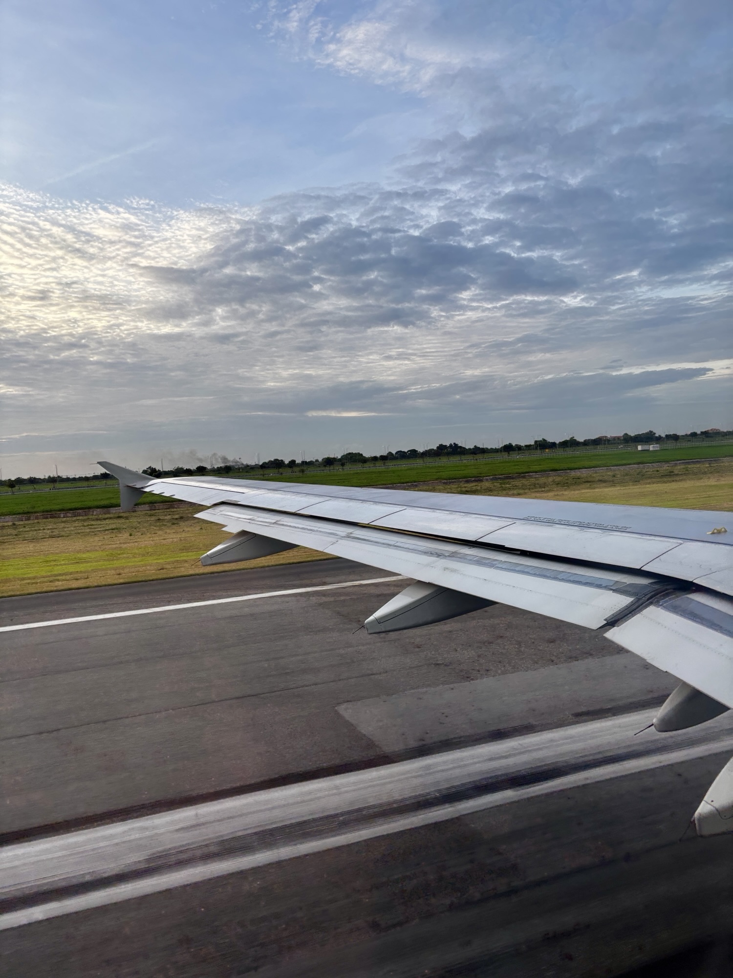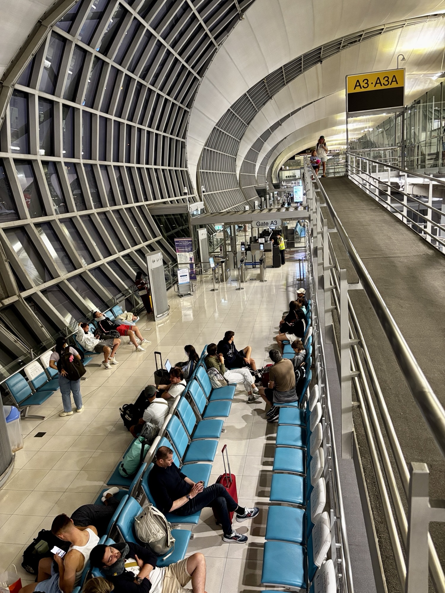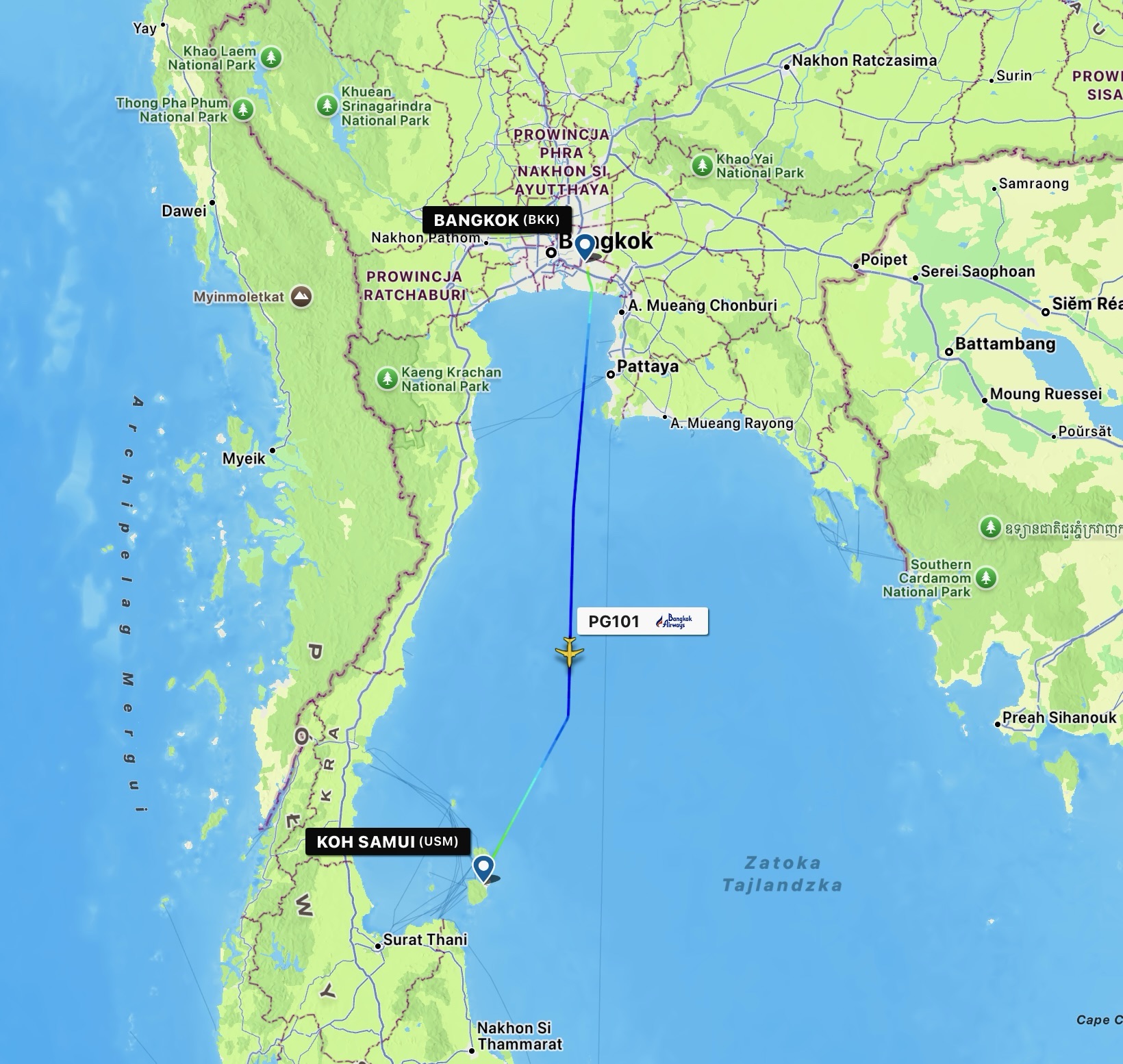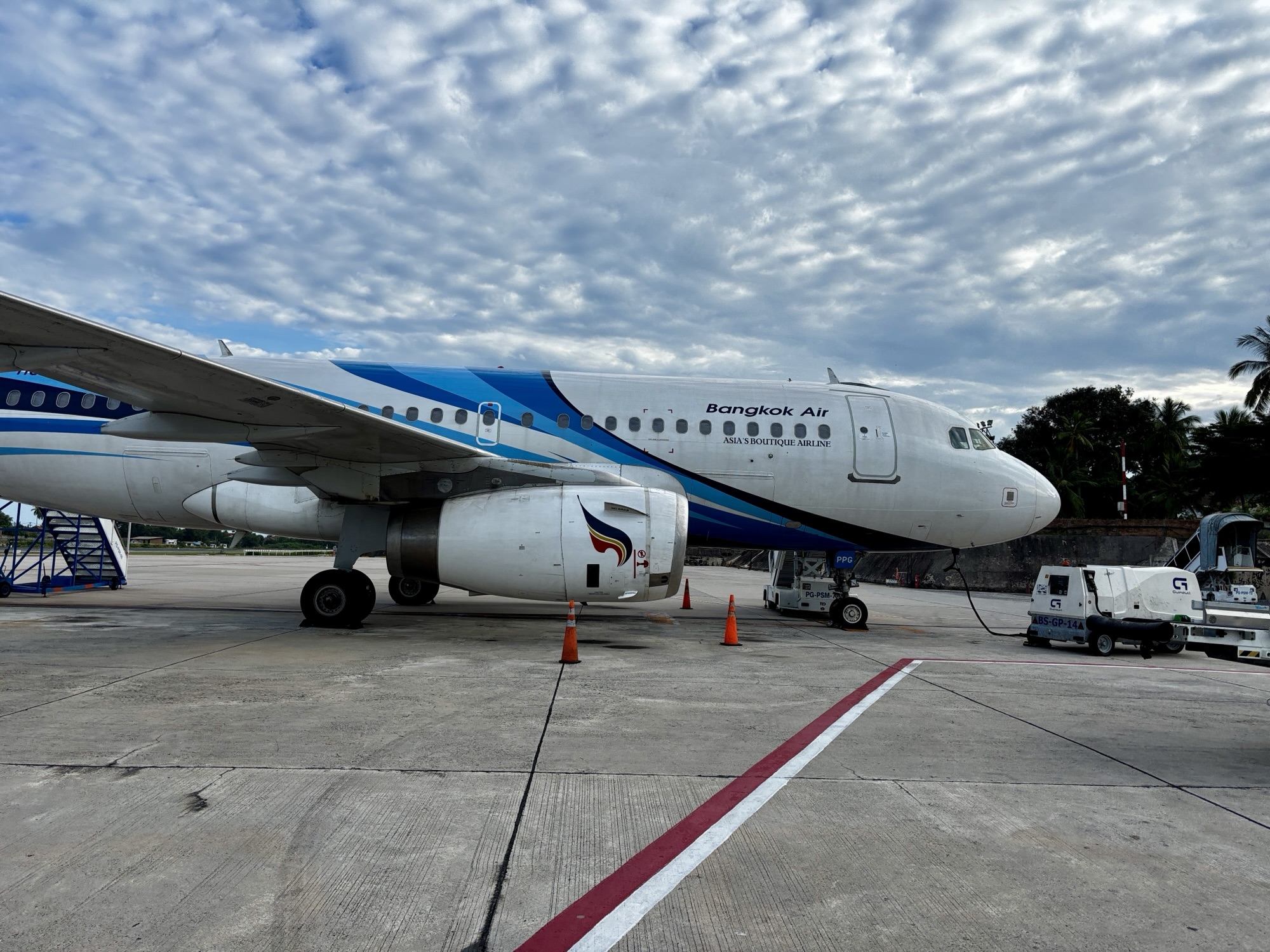 Do następnego lotu mamy sześć godzin. Sporo, ale nie jest ten drugi lot na jednej rezerwacji i musimy odebrać bagaże i ponownie je nadać co zajmie trochę czasu. W rzeczywistości, kontrola imigracyjna i cała zabawa z bagażami zajęła tylko godzinkę. Jeszcze proces zakupu nowej karty SIM aby komunikacja była i znajdujemy sobie ustronne miejsce na odpoczynek. O 4:30 ruszamy już w kierunku odlotów krajowych i po szybkiej kontroli bezpieczeństwa idziemy w kierunku bramki A3, skąd samolot linii Bangkok Airways zabierze nas na wyspę Samui. Boarding zaczyna się planowo czyli o 5:40, kołowanie i start na południe. W międzyczasie wstaje słońce, a dokładniej – robi się jasno, bo słońca nie widać przez chmury. Lipa z pogodą pomyśleliśmy, oby u nas świeciło ☀️