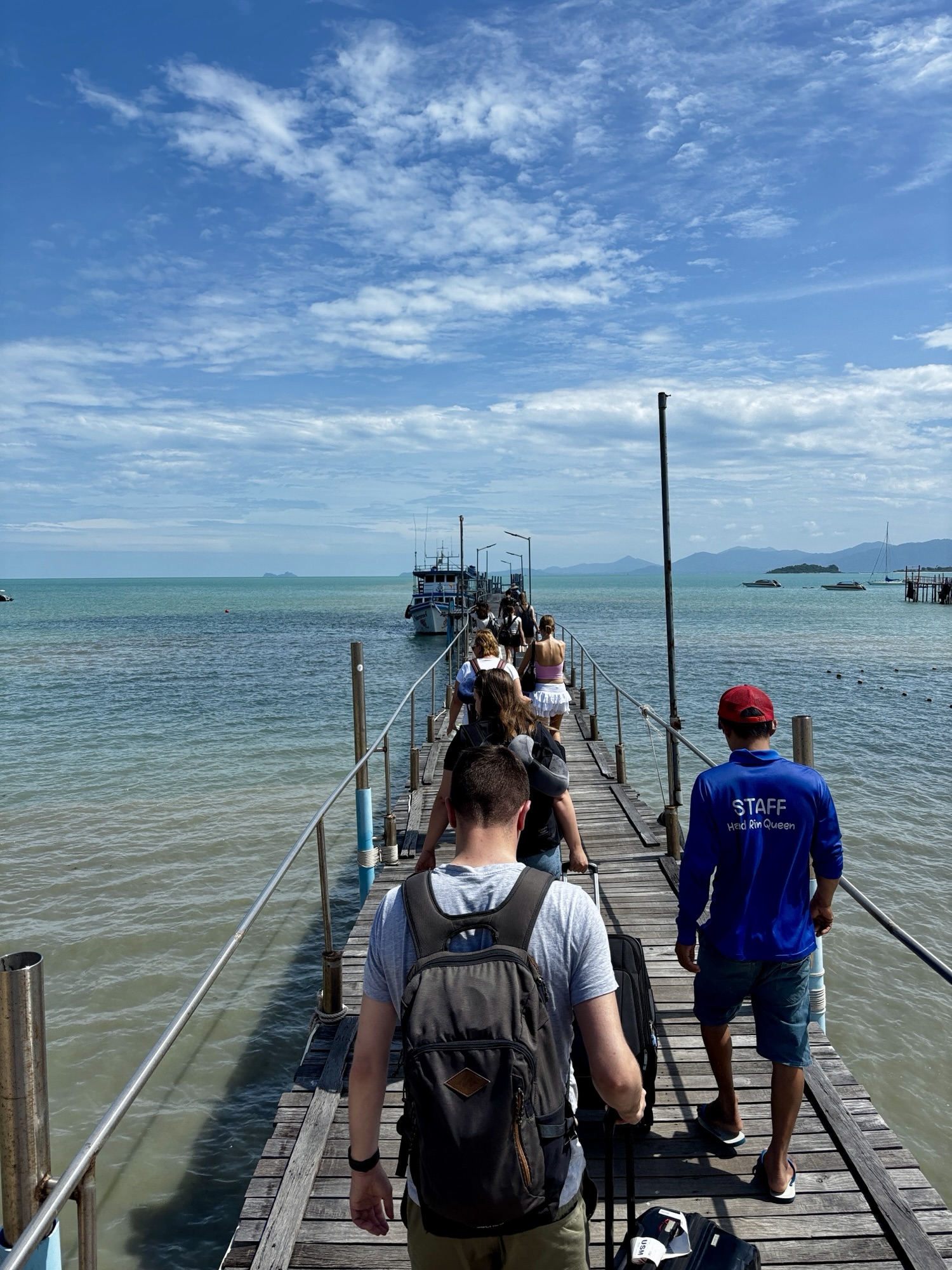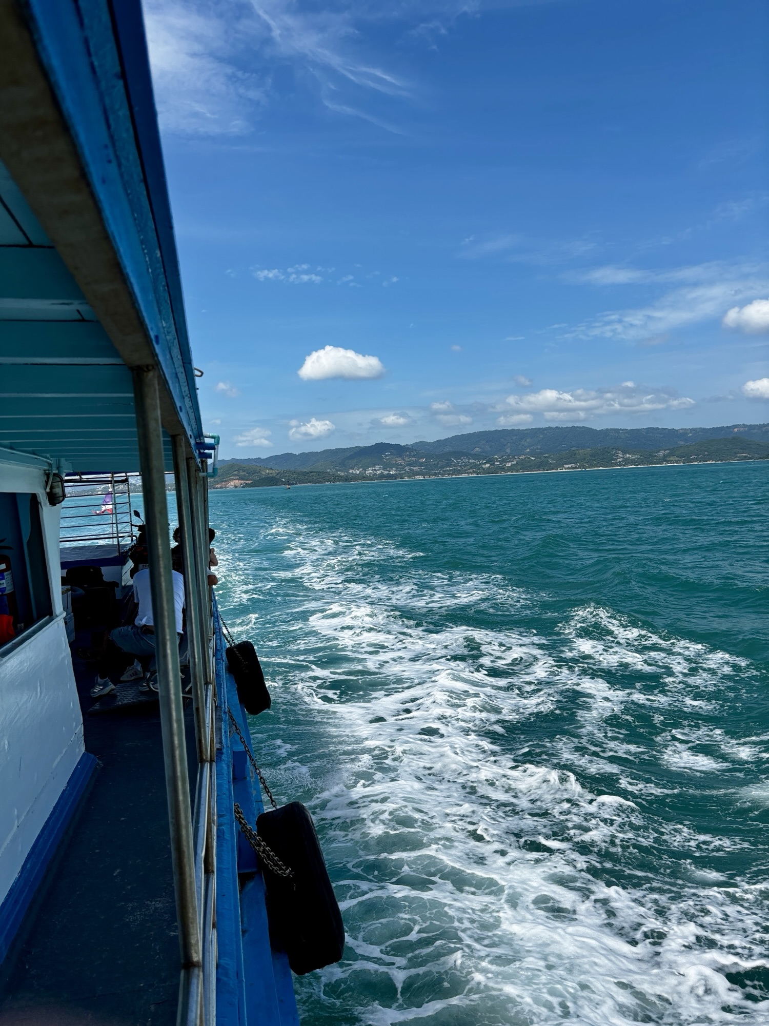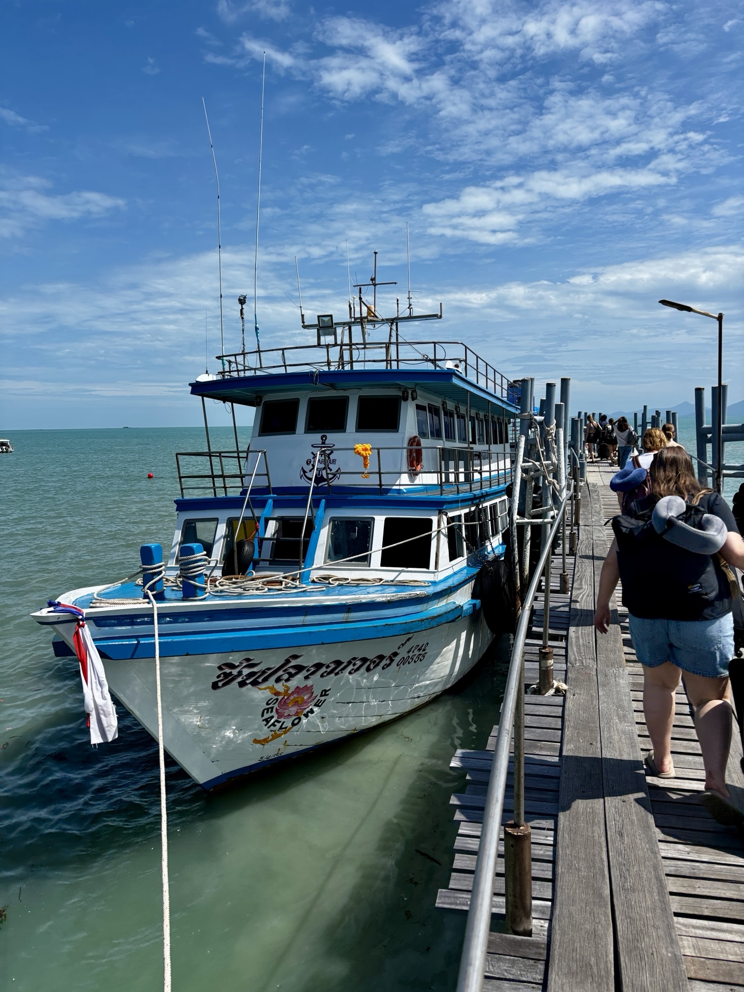 Z bagażami pakujemy się do busika, który zabiera nas do małego portu. Z nabrzeża o nazwie Haad Rin Queen Pier zabierze nas prom na wyspę Pha Ngan. To niedaleko, sąsiednią wyspa na której spędzimy następne 7 dni. Nie ma tam lotniska dlatego taka aranżacja transportowa. Prom mamy za 2,5 godziny. Dziewczyny po jakimś czasie znajdują na sąsiedniej ulicy salon masażu i już znikają na godzinkę, aby dać się wymasować po tak męczącej podróży. Ja znajduje bankomat i podejmuję gotóweczkę. Niestety zapomniałem zabrać karty z czytnika albo ona nie wyszła (już nie pamiętam) i odszedłem od maszyny i po powrocie już jej nie było. Pewnie została w środku, ale na wszelki wypadek, zablokowałem ją w aplikacji 🤷