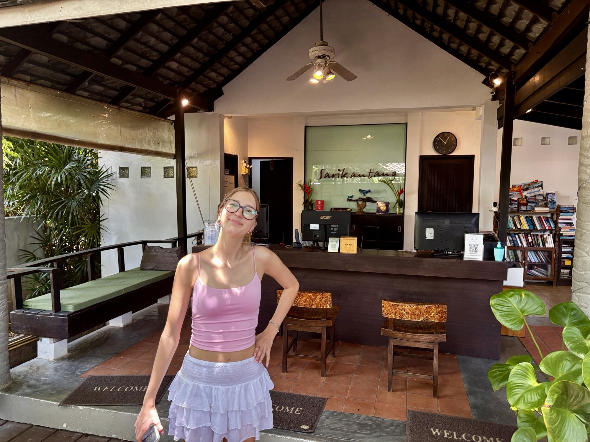 Docieramy w 10 minut do naszego hotelu, który nazywa się Sarikantang Resort and Spa. Meldujemy się i idziemy do naszych pokoi. Są standardowe z małymi balkonami.