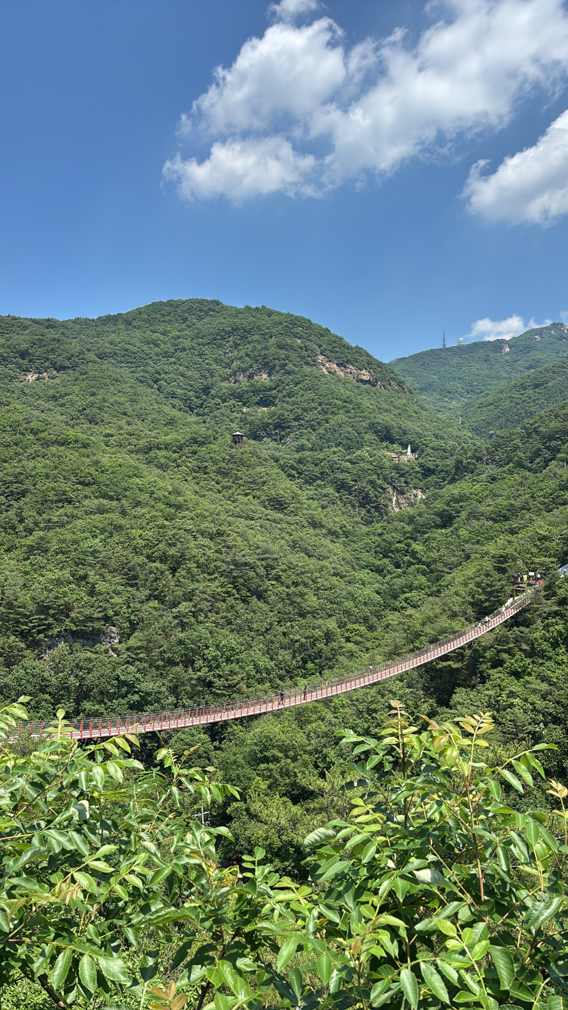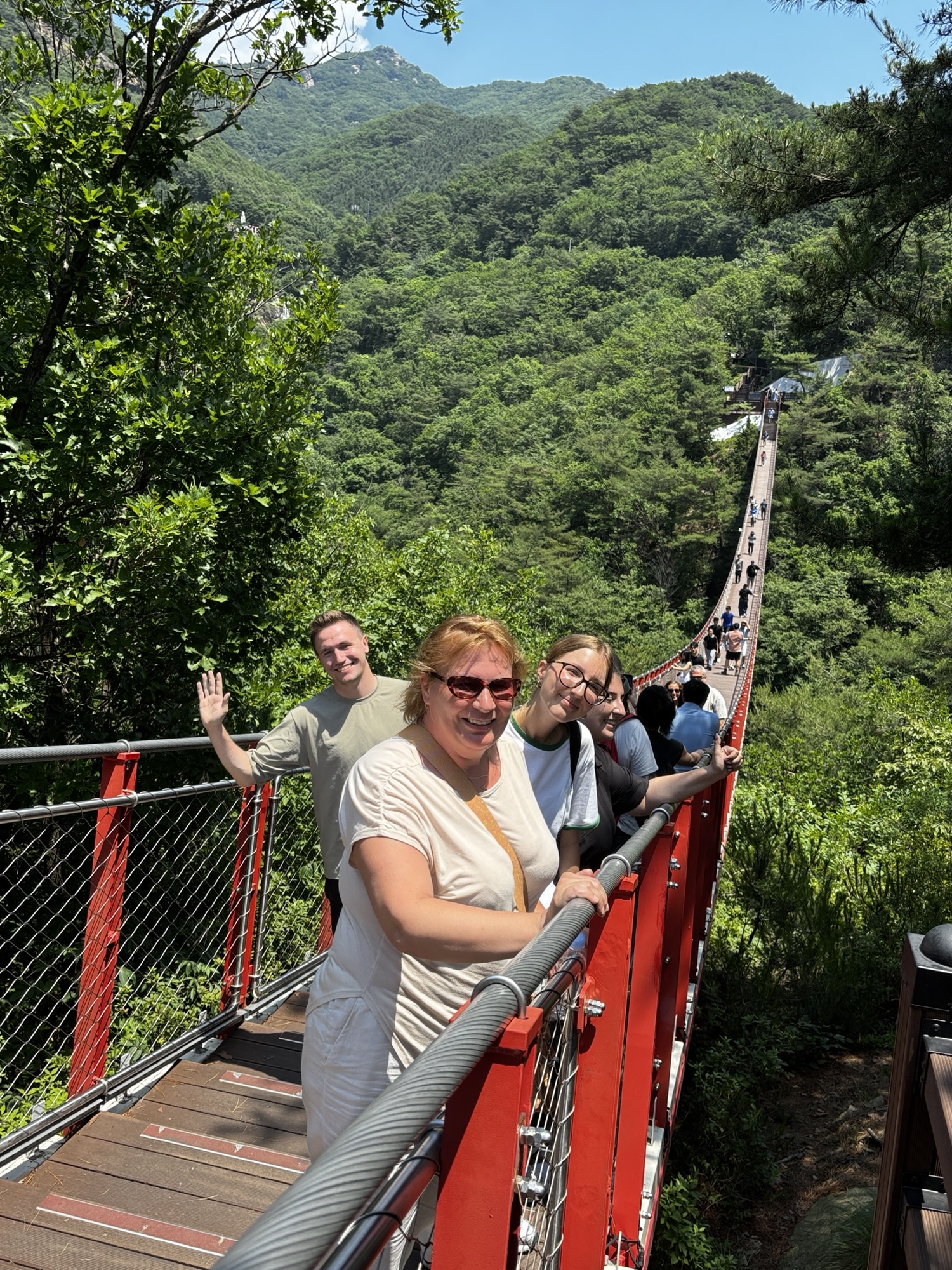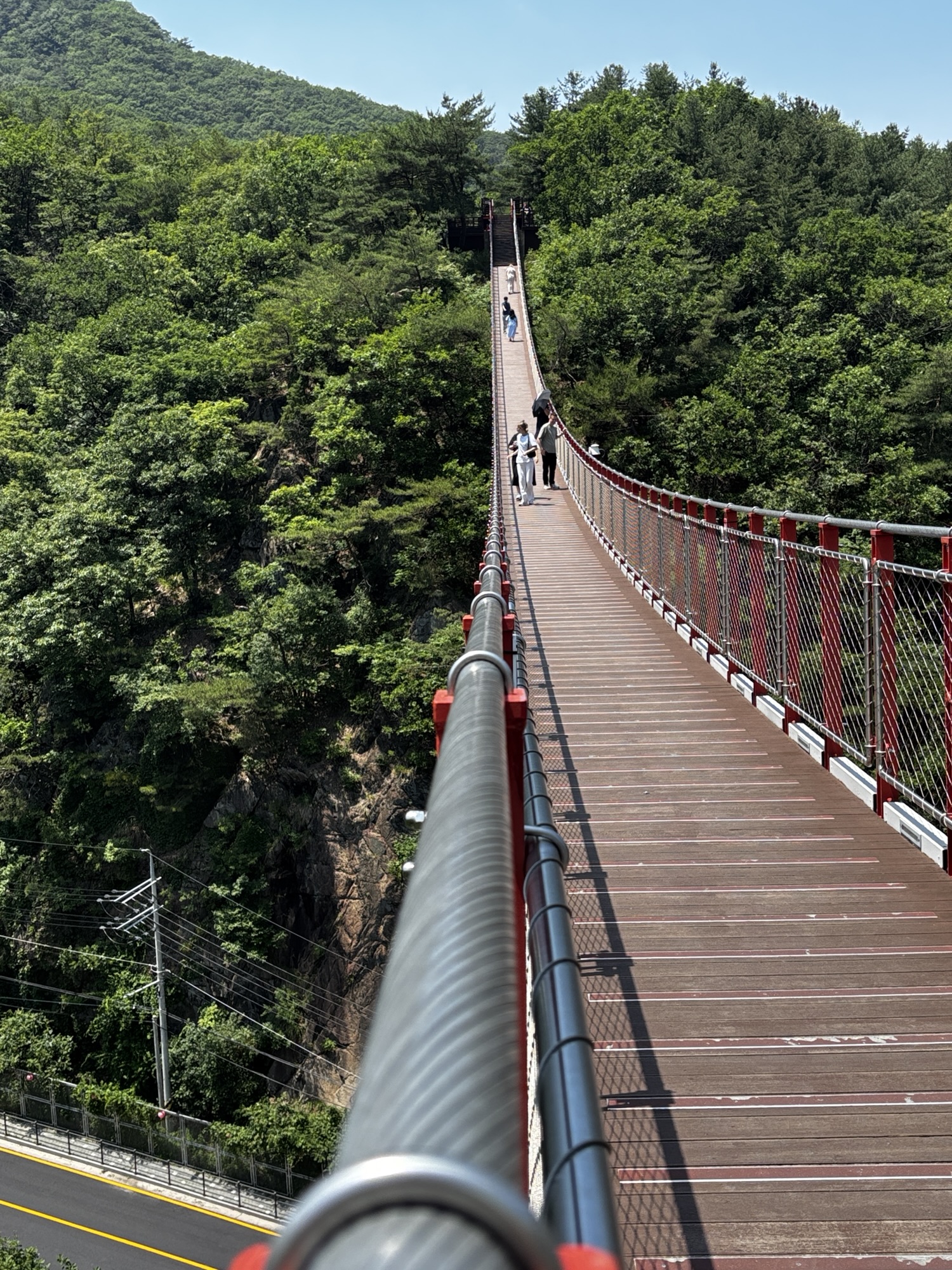 Uzupełnieniem tej wycieczki do strefy DMZ jest Gamaksan Chulleong Bridge. Jest to widowiskowy wiszący most pieszy zawieszony wysoko nad wąwozem na górze Gamaksan. To popularna atrakcja dla miłośników lekkiej wspinaczki, natury i… odrobiny adrenaliny. Ma 150 metrów długości i zawieszony jest na wysokości 42 metrów. Musimy się lekko wspiąć ale widok z mostu jest piękny.