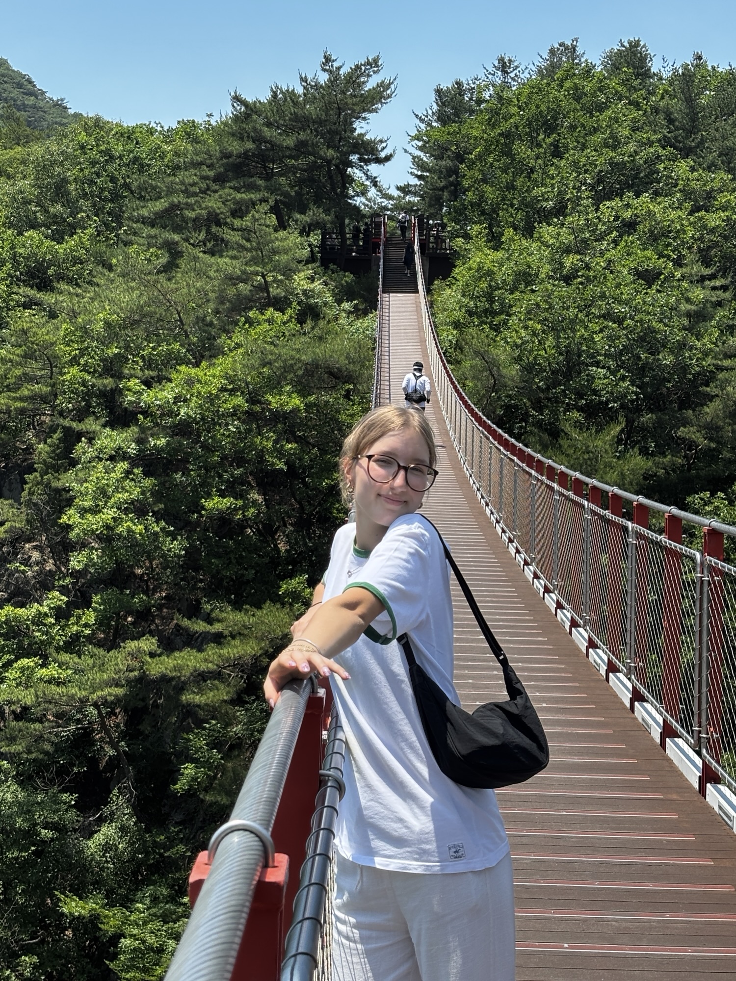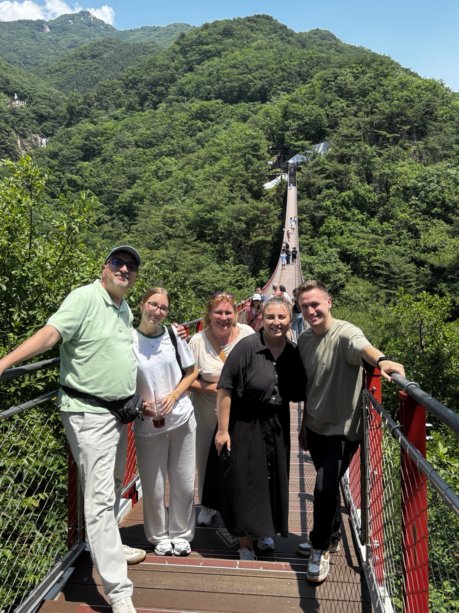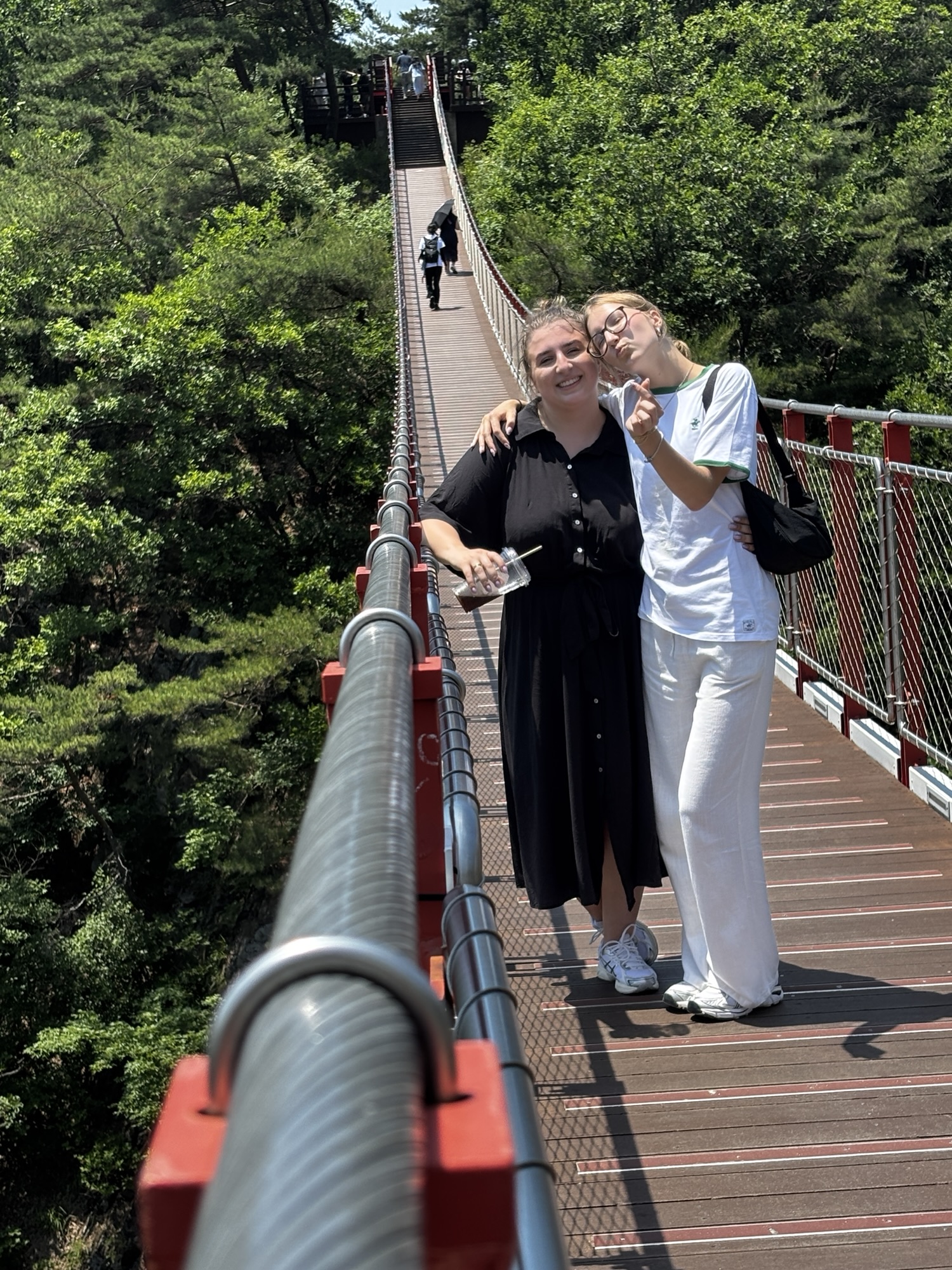 Uzupełnieniem tej wycieczki do strefy DMZ jest Gamaksan Chulleong Bridge. Jest to widowiskowy wiszący most pieszy zawieszony wysoko nad wąwozem na górze Gamaksan. To popularna atrakcja dla miłośników lekkiej wspinaczki, natury i… odrobiny adrenaliny. Ma 150 metrów długości i zawieszony jest na wysokości 42 metrów. Musimy się lekko wspiąć ale widok z mostu jest piękny.