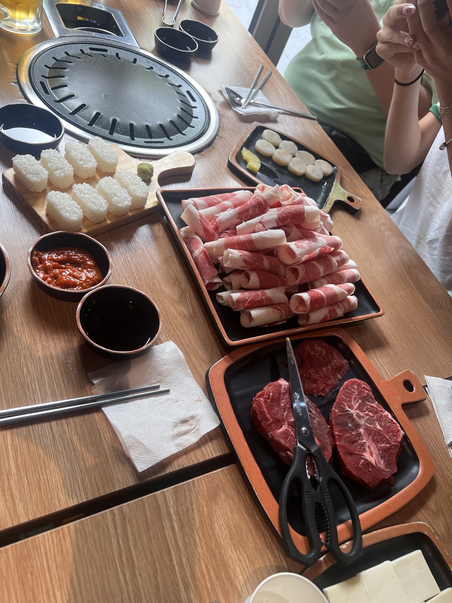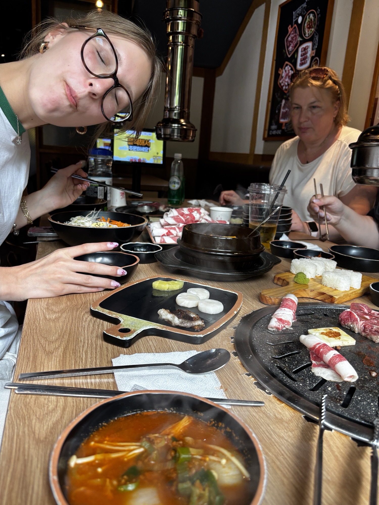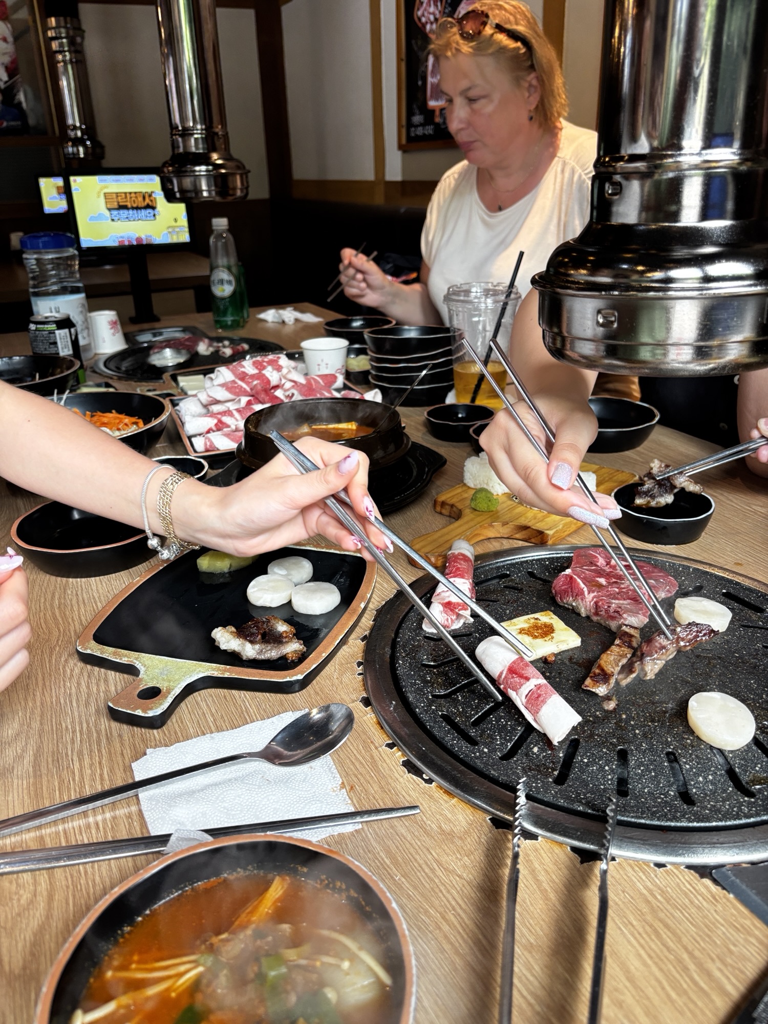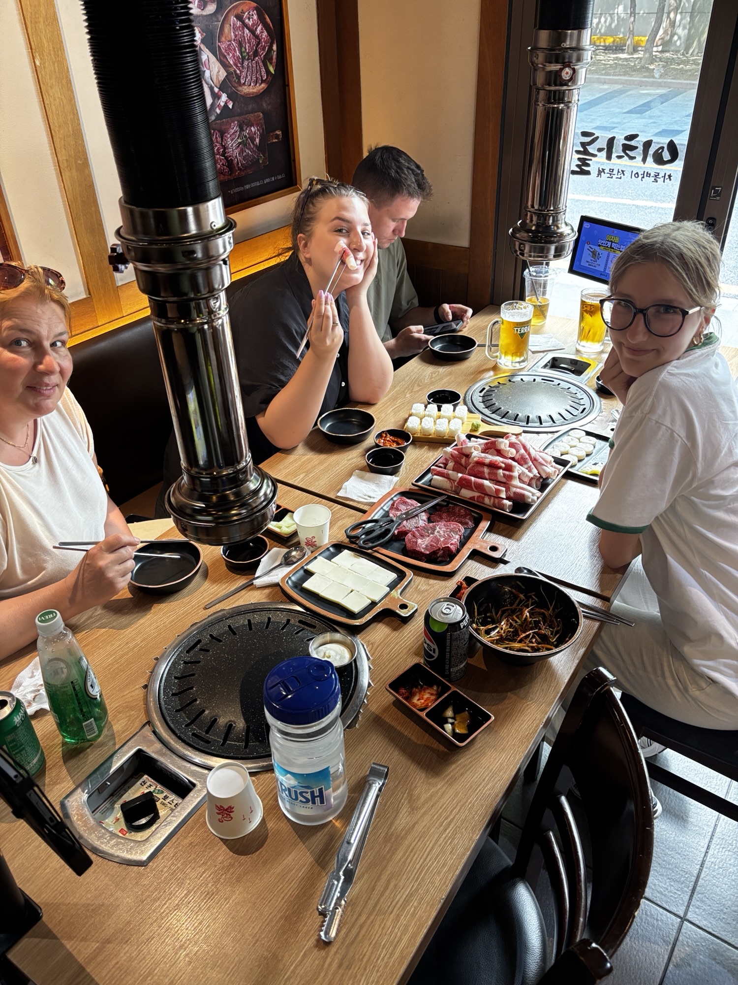 Wracamy już do Seulu. Jest godzina 16ta kiedy dojeżdżamy w okolice naszej dzielnicy i idziemy na obiado-kolację. Dziś odwiedzamy bardzo typowa dla Korei restauracje serwującą różnego rodzaju mięska , które trzeba samemu przygrilowac na stołowym grillu. Zabawa z tym była super a uczta przednia.