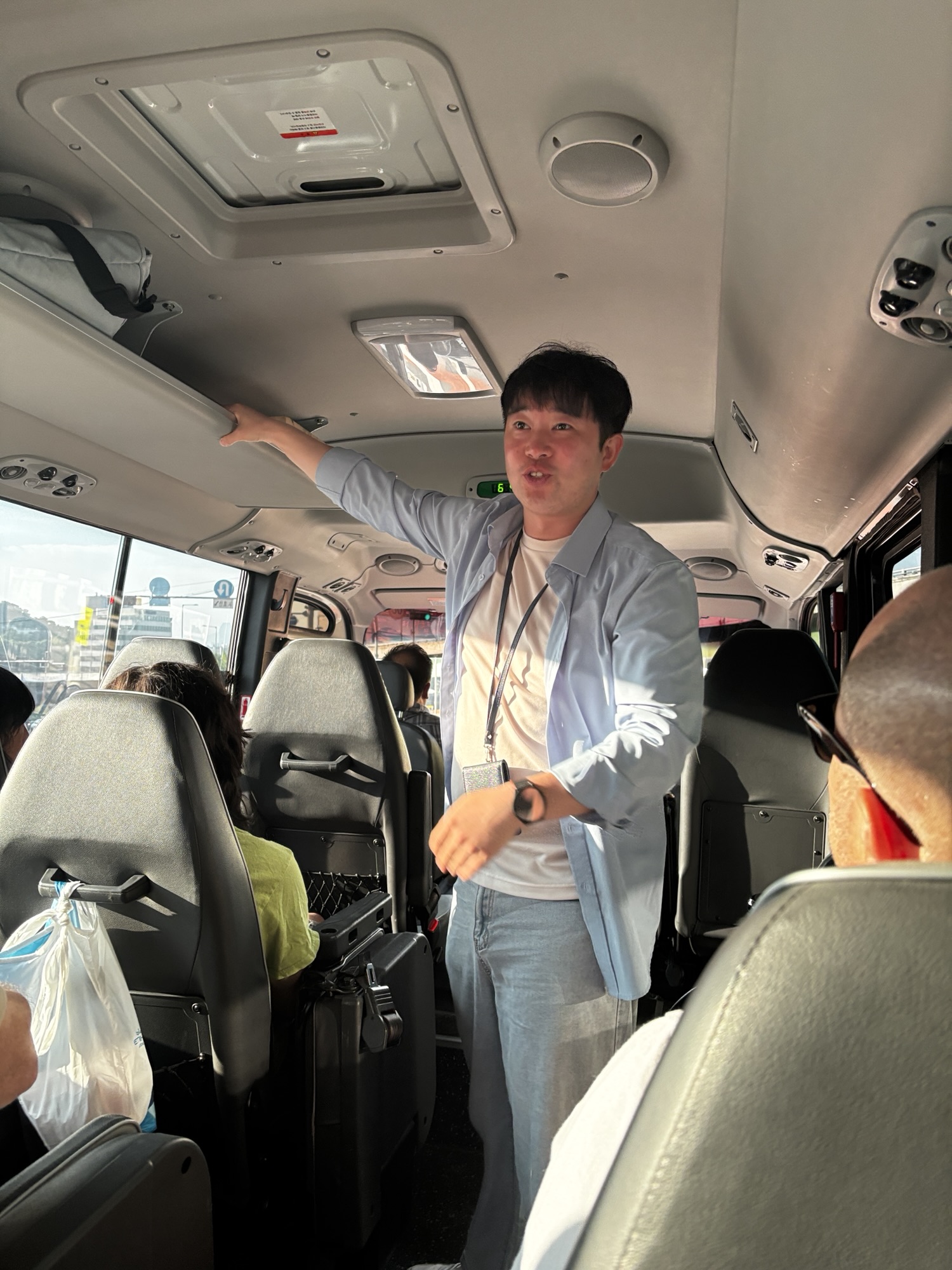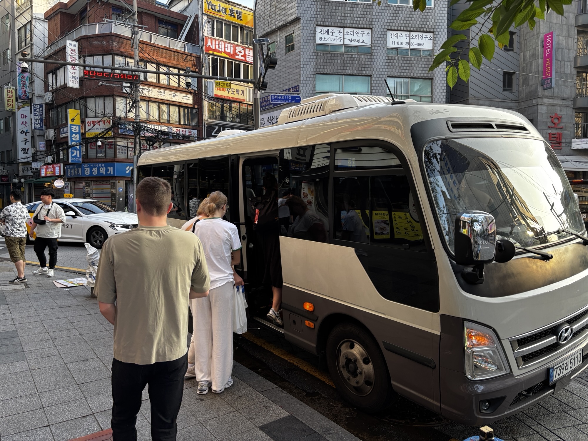 Pobudka wiec o 5:30. O 6:00 widzimy się wszyscy w hotelowym lobby i idziemy jakieś 150 metrów na koniec ulicy, gdzie będzie na nas czekał autobus. Po drodze zjadamy szybkie śniadanie, kupione w 7 eleven, gdyż śniadanie w naszym hotelu serwowane jest dopiero od 7:00. No ale co to za autobus i po co my tak wcześnie wstajemy? Zaraz wyjaśniam – dziś jedziemy na jedną ze sztandarowych wycieczek w Korei, czyli odwiedzamy strefę DMZ. Co to jest i gdzie się znajduje to za chwilę, teraz już wsiadamy do busika, który właśnie podjechał i jedziemy jeszcze w 3 miejsca w Seulu, aby odebrać innych uczestników tej wycieczki. Wita nas Wooki, który będzie naszym przewodnikiem w tej kilkugodzinnej wyprawie.