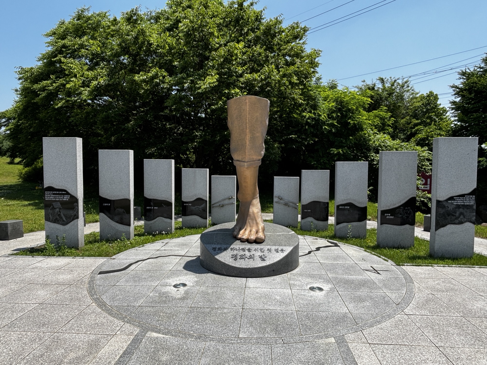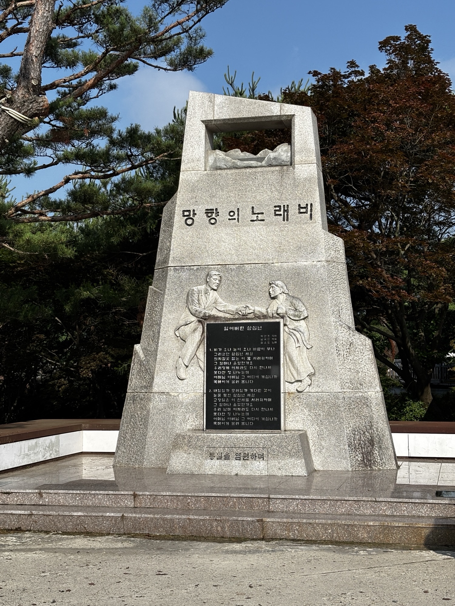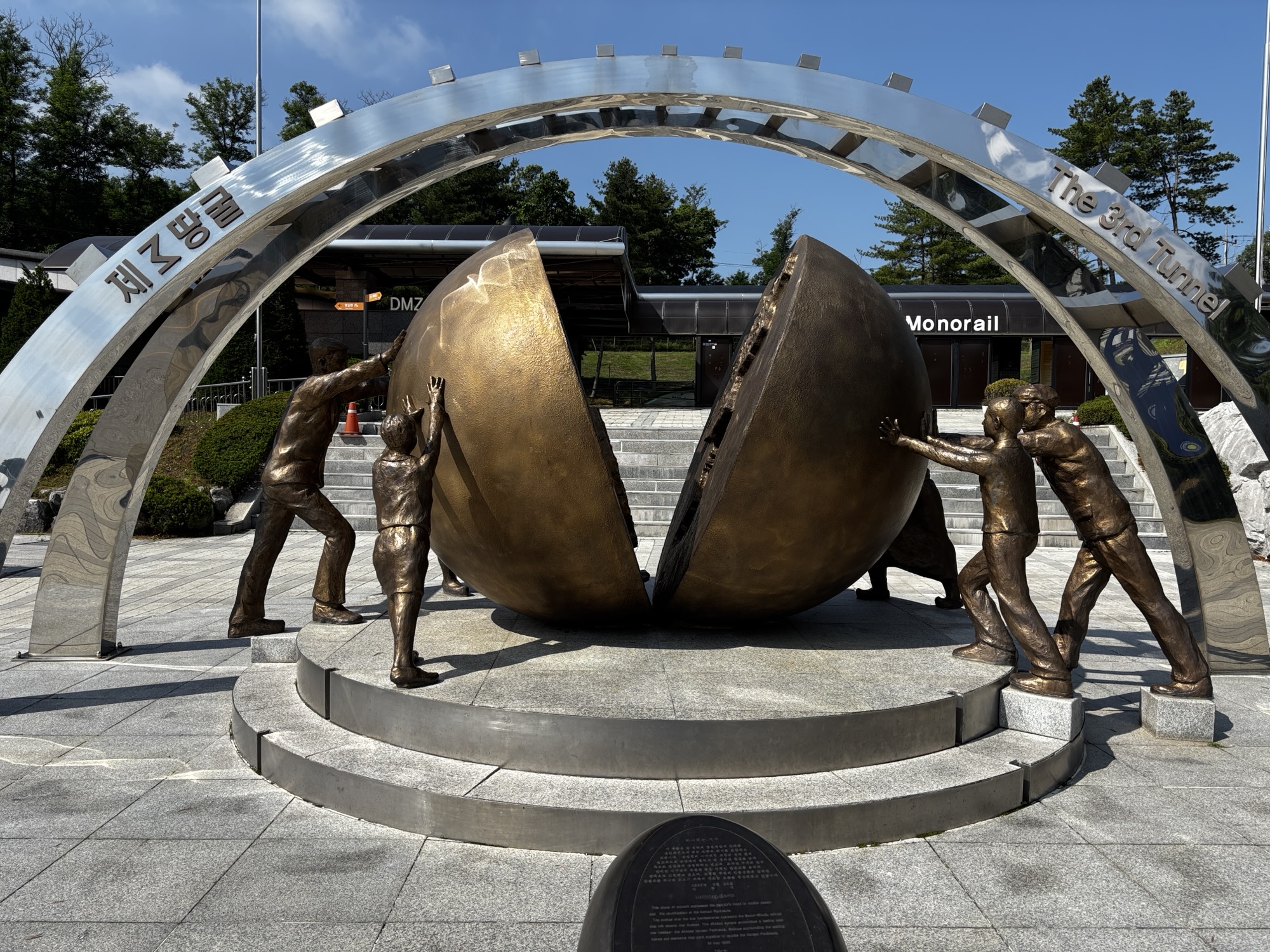 Wooki, rozdaje man słuchawki i tłumaczy pokrótce calą sytuację. Odwiedzamy pobliskie punkty pamięci, które przybliżają nam historię konfliktu. Widzimy pomniki i obeliski poświęcone rozdzielonym rodzinom koreańskim, pamiątki z wojny koreańsko -japońskiej, pomniki pokoju oraz przeprawę kolejową do DMZ a dalej do Korei Północnej, która jednak nie łączy obu tych krajów.