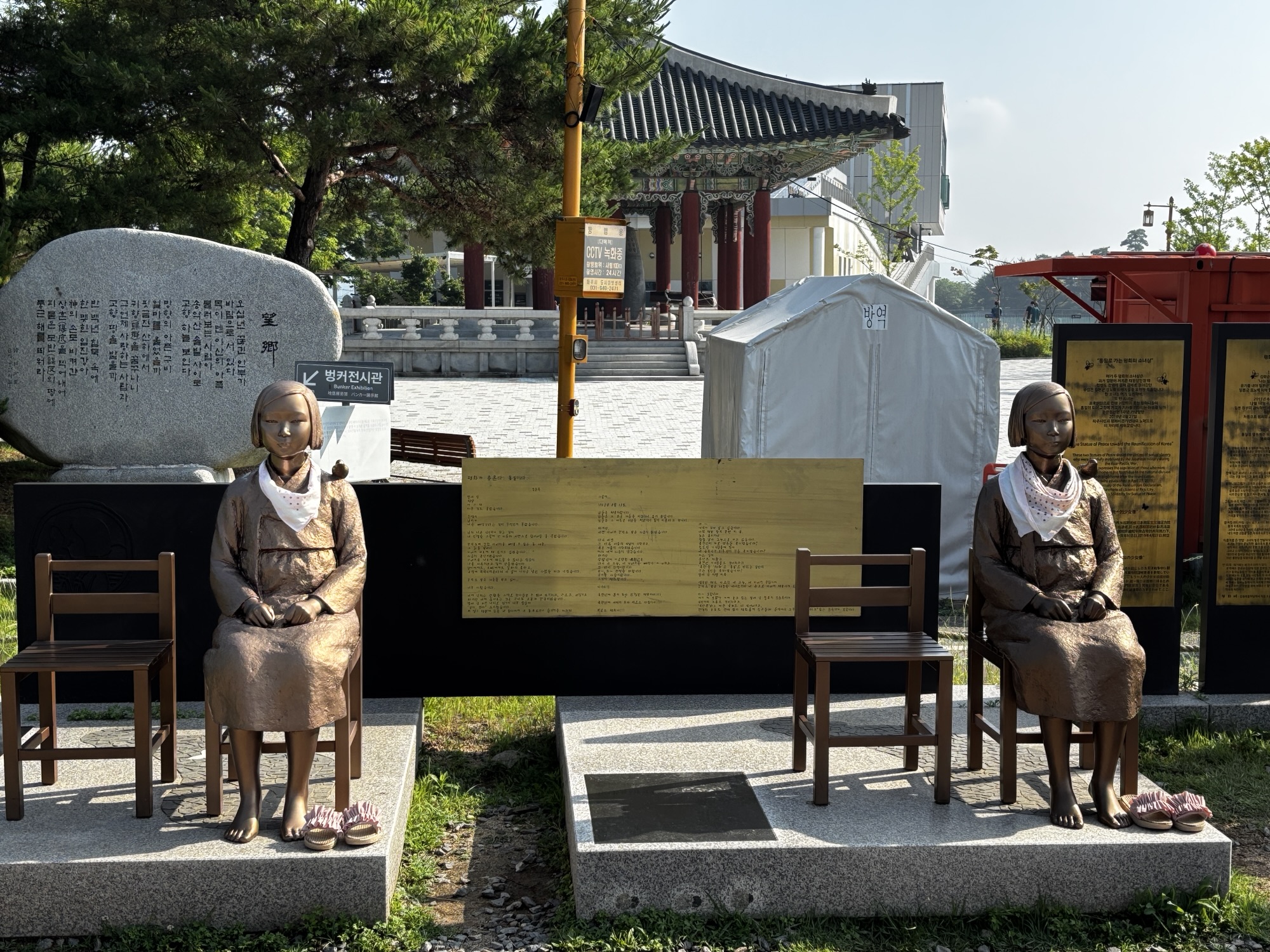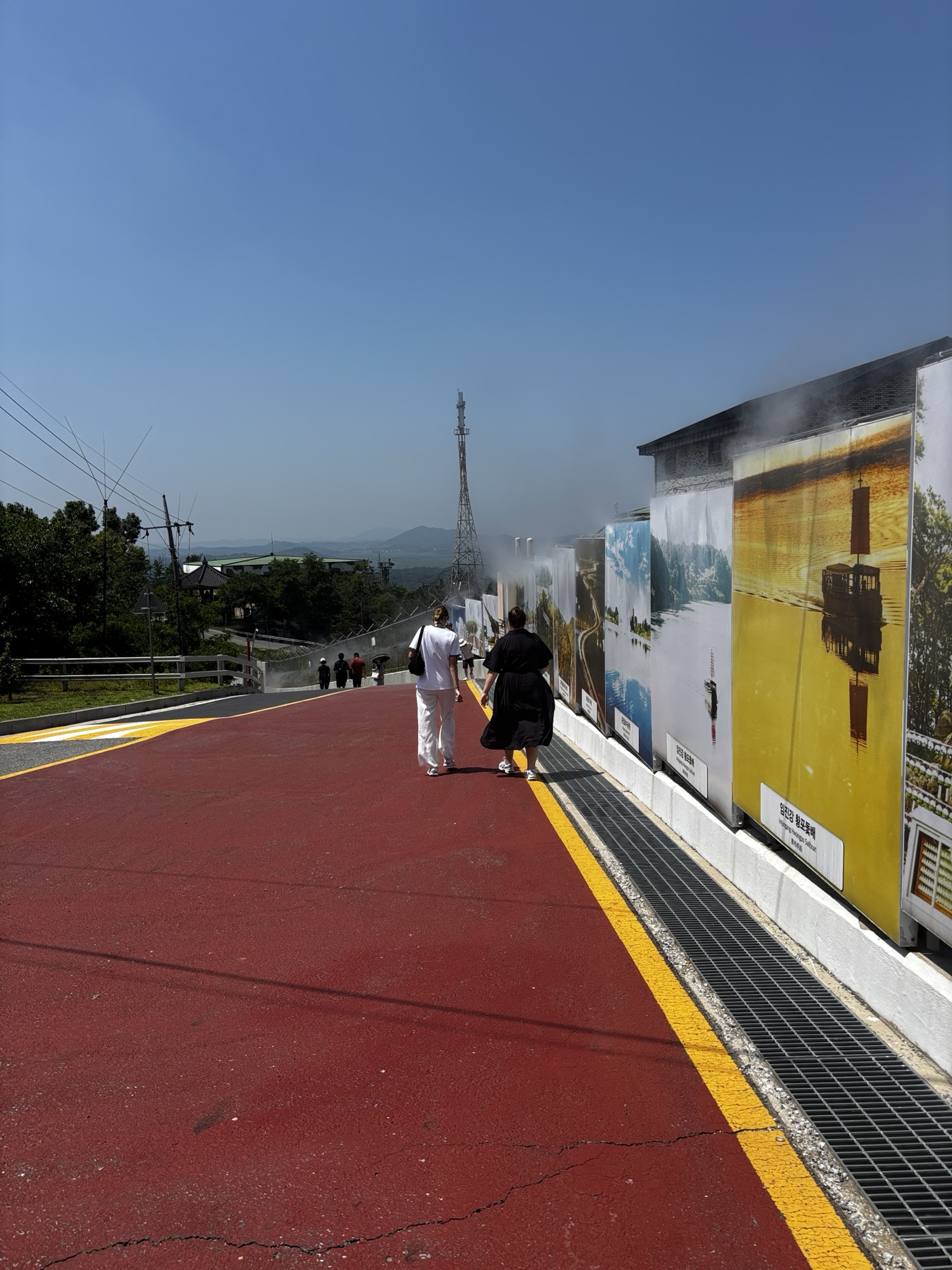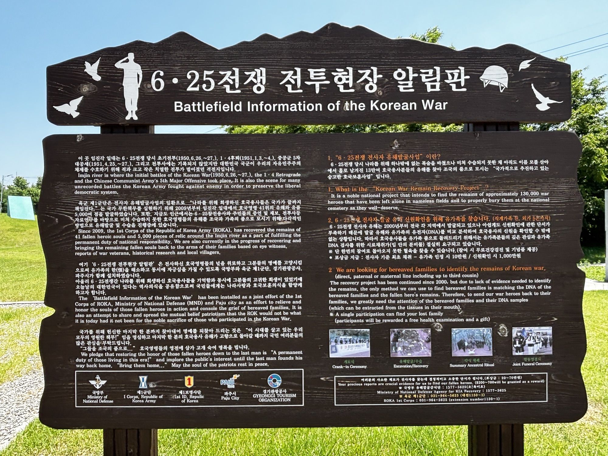 Wooki, rozdaje man słuchawki i tłumaczy pokrótce calą sytuację. Odwiedzamy pobliskie punkty pamięci, które przybliżają nam historię konfliktu. Widzimy pomniki i obeliski poświęcone rozdzielonym rodzinom koreańskim, pamiątki z wojny koreańsko -japońskiej, pomniki pokoju oraz przeprawę kolejową do DMZ a dalej do Korei Północnej, która jednak nie łączy obu tych krajów.