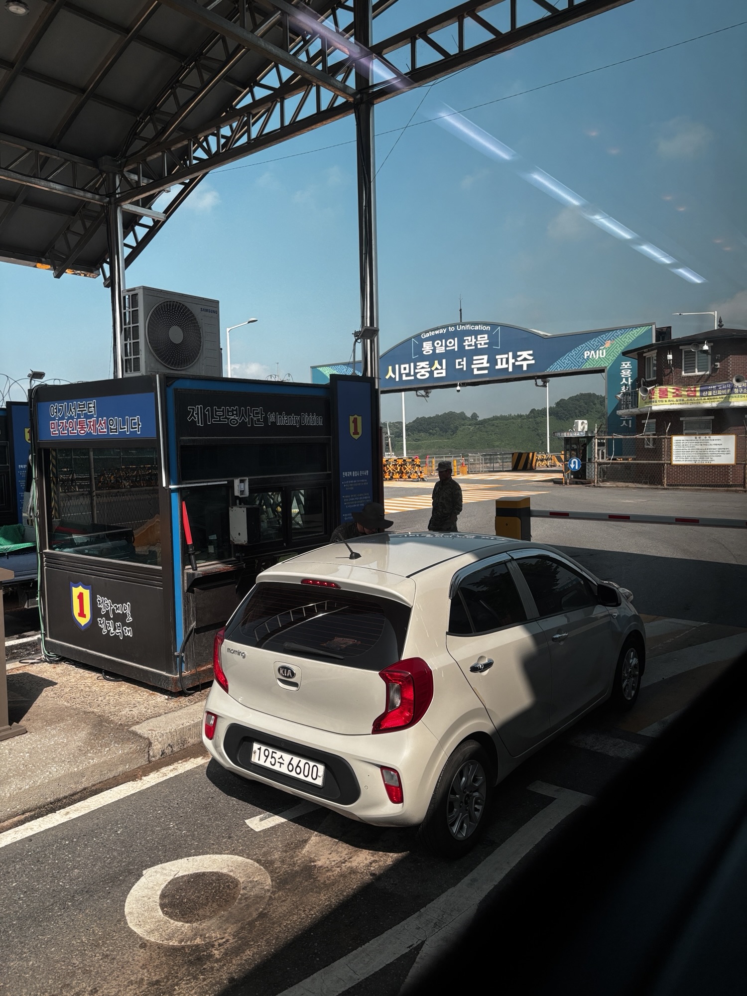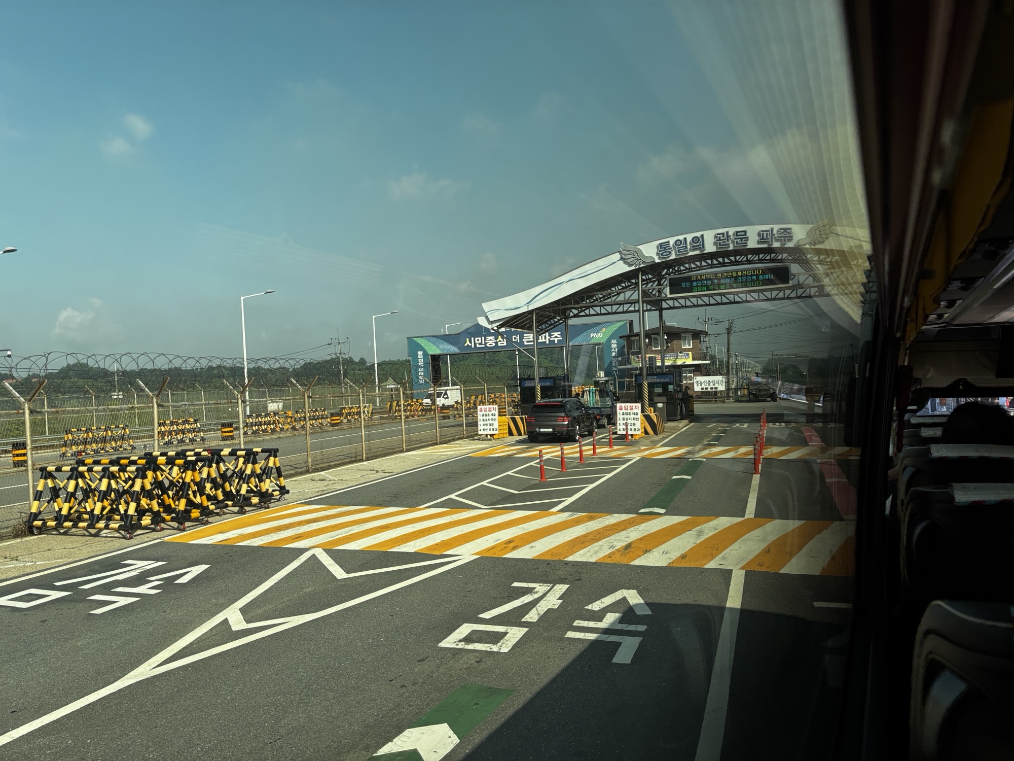 Ruszamy już nowym autobusem, który ma zezwolenie na wjazd od DMZ. No ale nie tak szybko. Okazuje sie , że najpierw musimy przekroczyć granicę strefy CCZ czyli Civilian Control Zone. Jest to obszar położony tuż przed DMZ, zarówno po stronie południowej, jak i północnej. Musimy przejechać przez pierwszy check point i okazać nasze paszporty. Fotografowanie zabronione to tylko tak dwie fotki „z partyzanta” zrobione.