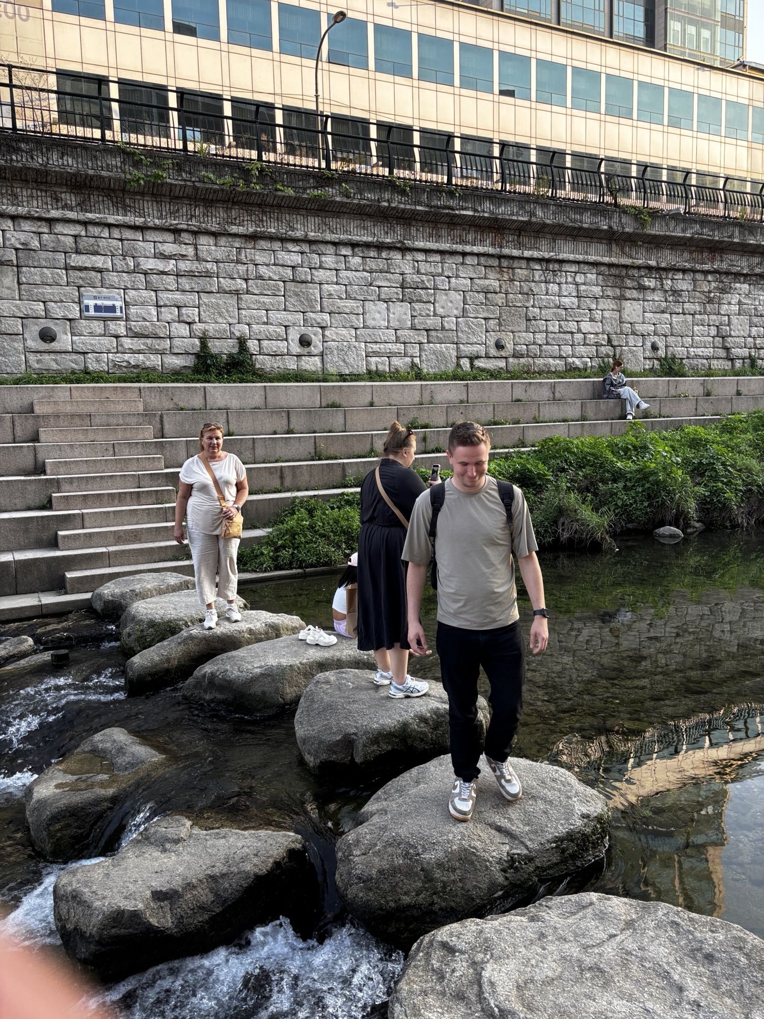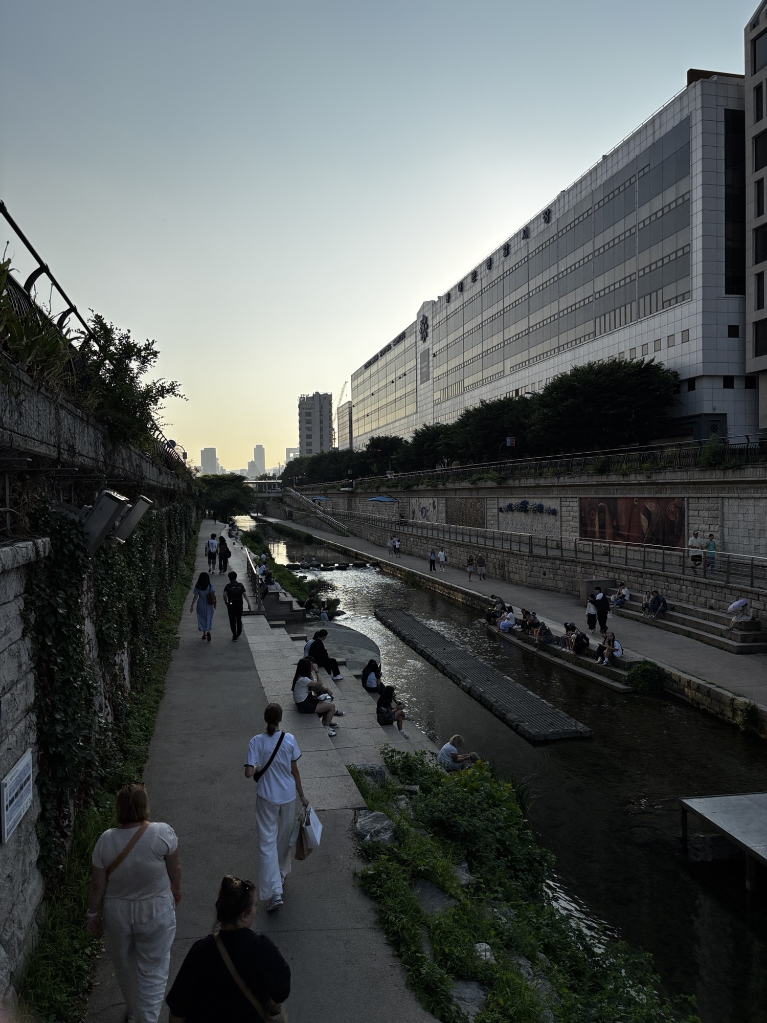 Zbliża się już 19ta to i czas ruszyć w kierunku hotelu. Do stacji metra nasza droga prowadzi przez potok Cheonggyecheon – wąską wstęgę wody, która stała się symbolem odnowy i harmonii w miejskim krajobrazie.