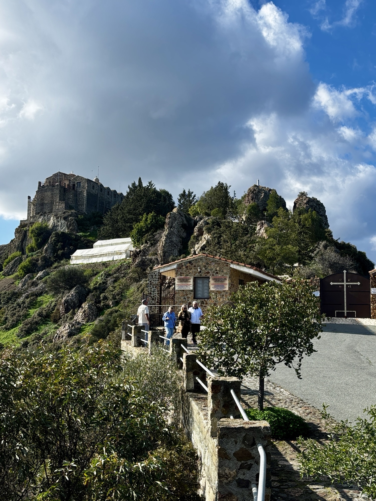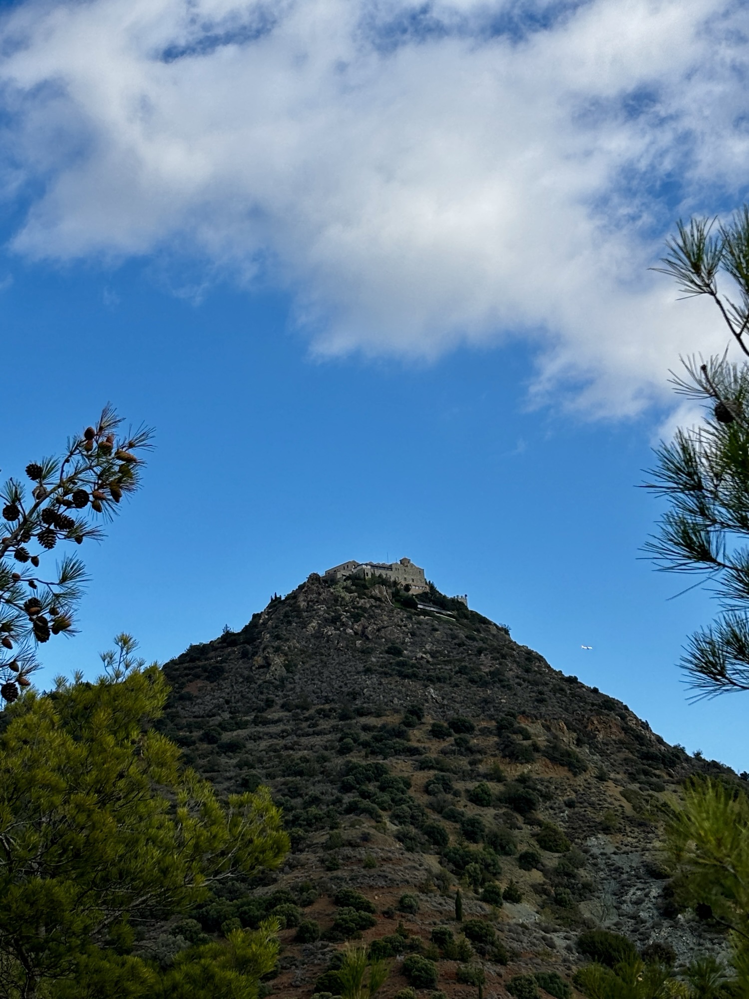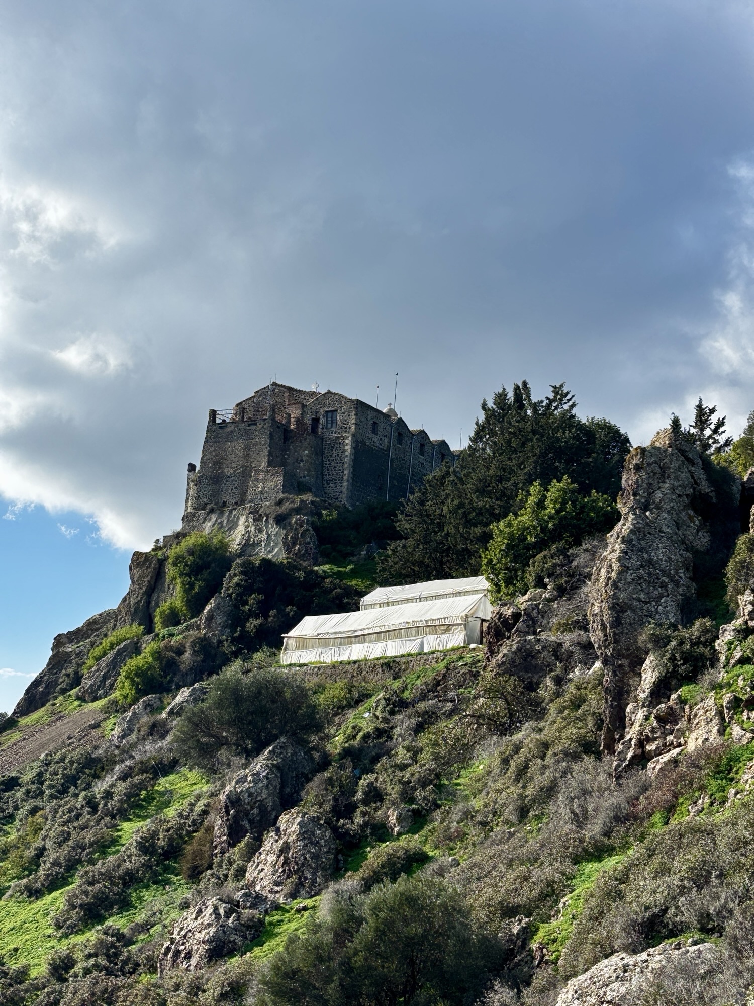 Jak pisałem, klasztor wznosi się na stromym, skalistym wzniesieniu na wysokości około 750 m n.p.m., oferując rozległe widoki na okolicę i Morze Śródziemne.