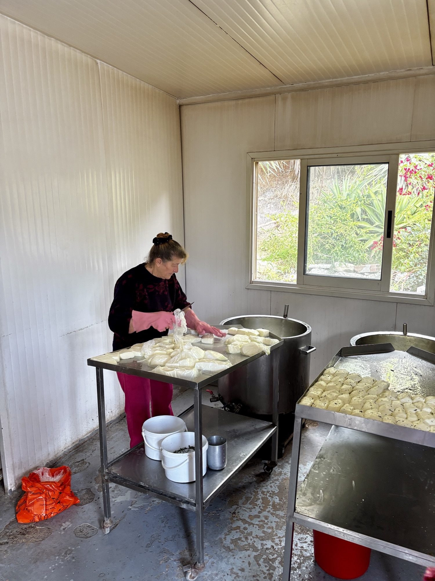 Wyruszamy dalej aby po kolejnych kilkunastu kilometrach dotrzeć do niewielkiej wytwórni sera hallumi, króla nazywa sie Loulla’s Halloumi Making. Pani która prowadzi tą manufakturę objaśnia nam jak powstaje ten charakterystyczny dla Cypru ser a proces jest skomplikowany.