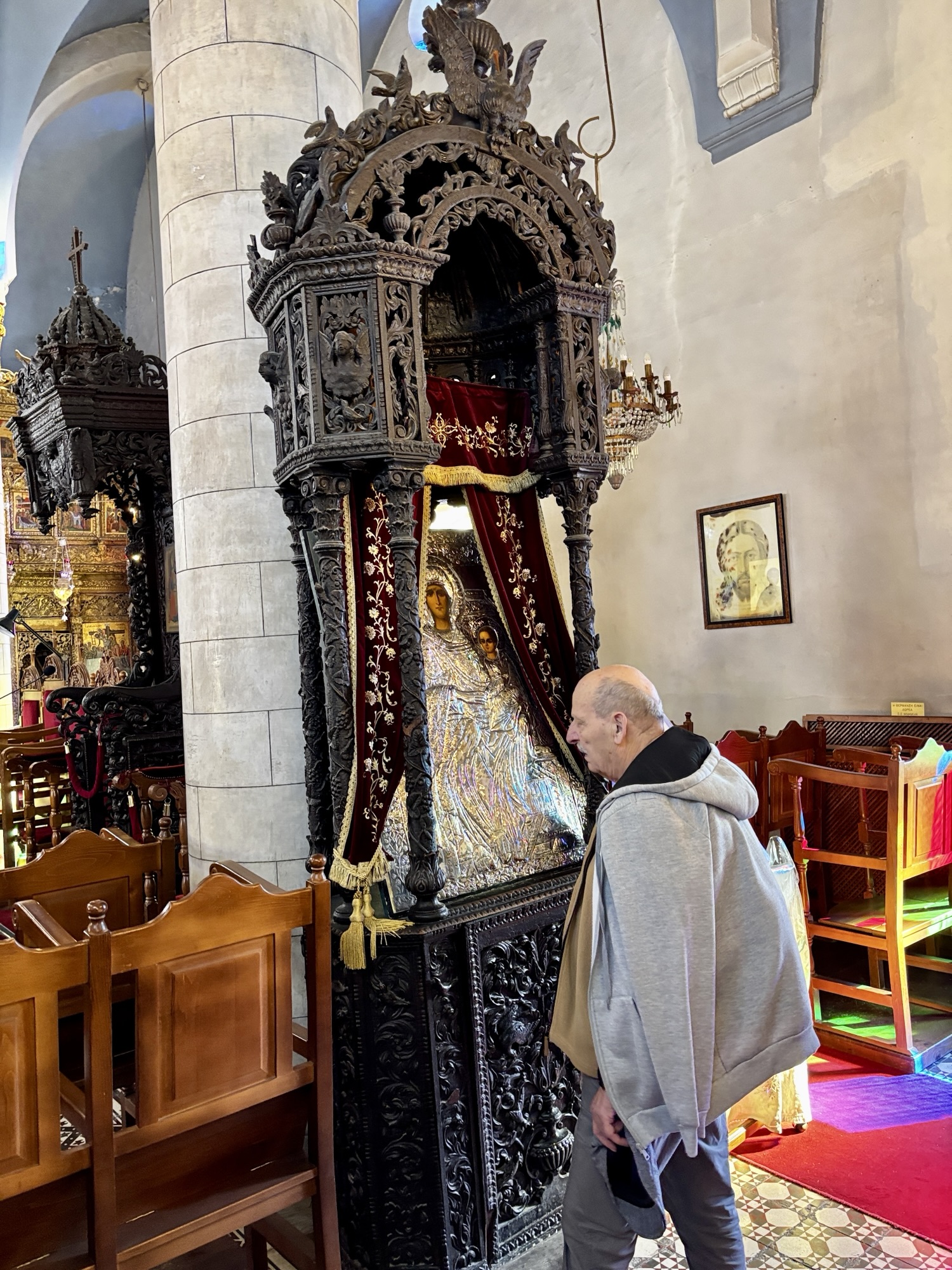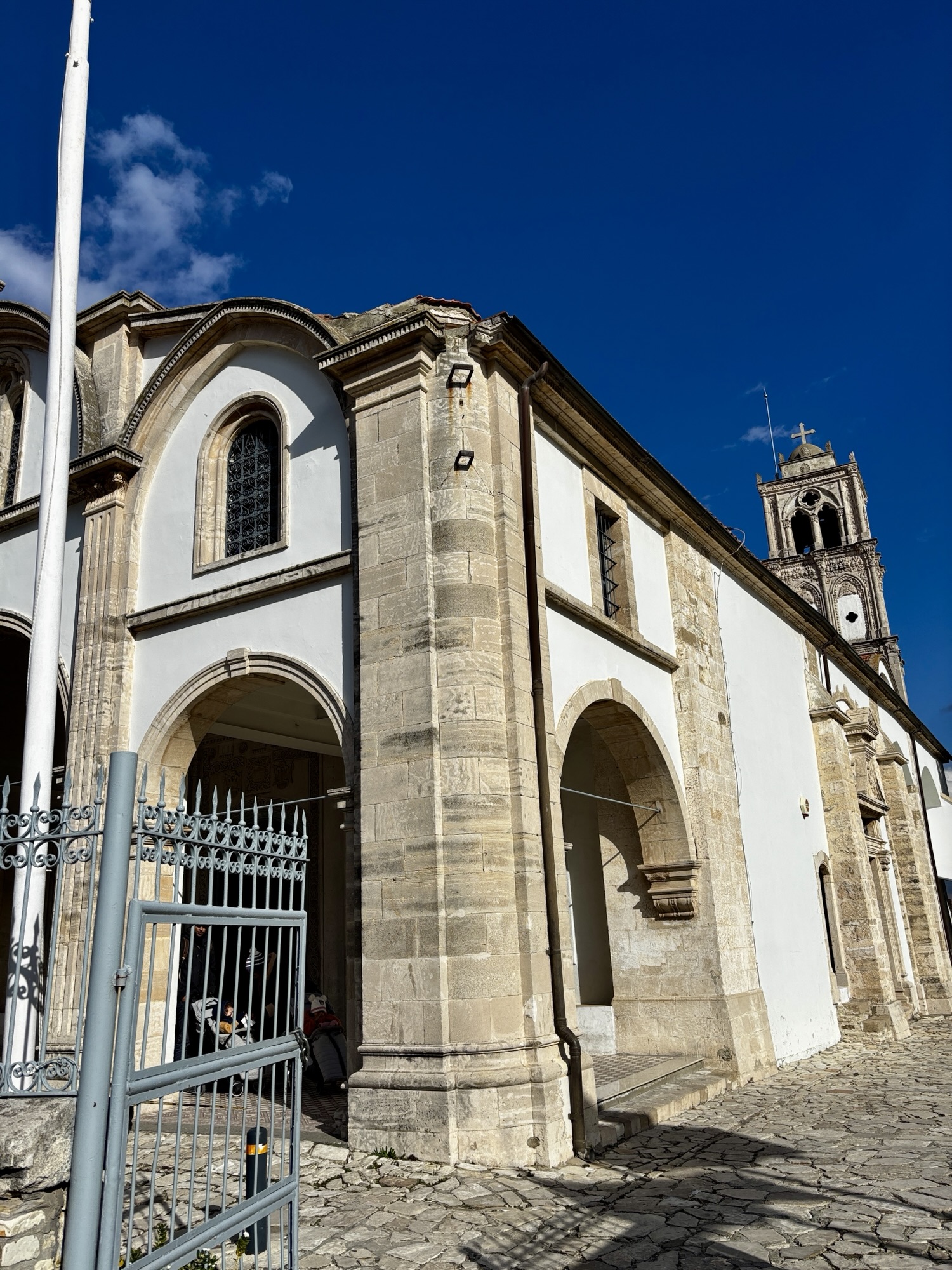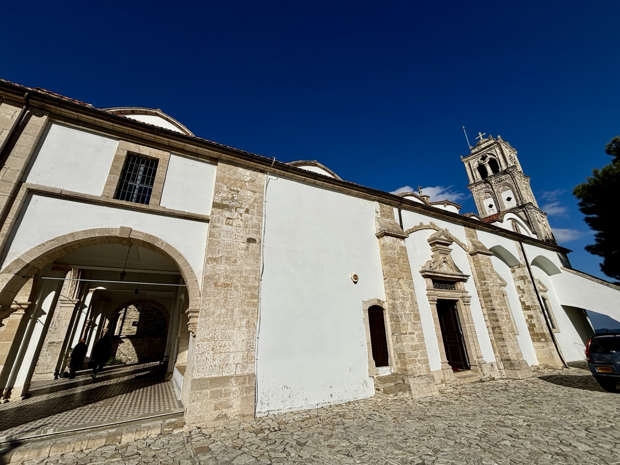 Nie jest tam łatwo dojechać gdyż leży on na stromym wzniesieniu i musimy pokonać wiele serpentyn aby do niego dotrzeć. Klasztor Stawrowouni to jeden z najstarszych i najbardziej surowych klasztorów prawosławnych na Cyprze. Został założony w IV wieku przez św. Helenę, matkę cesarza Konstantyna Wielkiego, podczas jej podróży z Ziemi Świętej do Konstantynopola. Według tradycji pozostawiła ona na szczycie góry relikwię Krzyża Świętego, od której pochodzi nazwa klasztoru (gr. stavros – krzyż, vouni – góra). Do dziś obowiązują tu bardzo rygorystyczne zasady monastyczne – wstęp dla kobiet jest zabroniony, a mężczyźni muszą przestrzegać surowego dress code’u i ciszy. Stawrowouni słynie z ascetycznego stylu życia mnichów, którzy żyją w odosobnieniu, modlitwie i pracy. Aby wejść na jego teren, nawet dla mężczyzn potrzebne jest specjalne zezwolenie o które należy się ubiegać wcześniej. My podziwiamy jego majestat z dolnego parkingu.