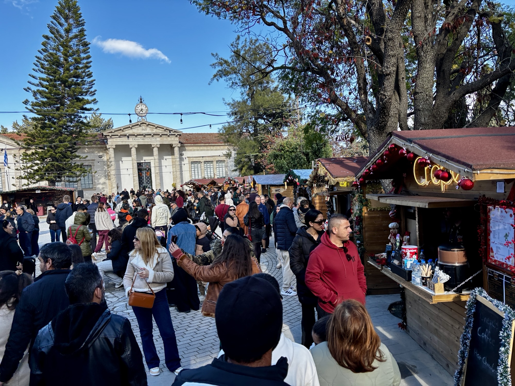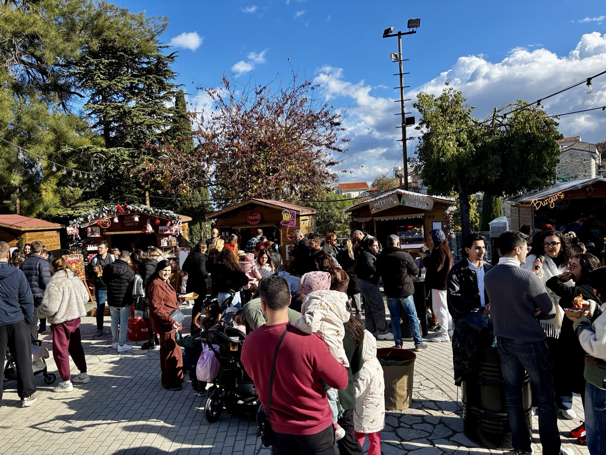 Nie wiedzieliśmy o tym, że w tym okresie w Lewkarze także odbywa się jarmark bożonarodzeniowy i miasteczko będzie zamknięte dla ruchu samochodowego. Zostaliśmy pokierowani na oddalony o 2 km parking z którego do centrum kursował busik.
