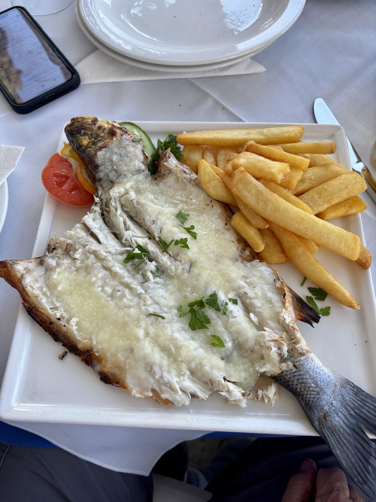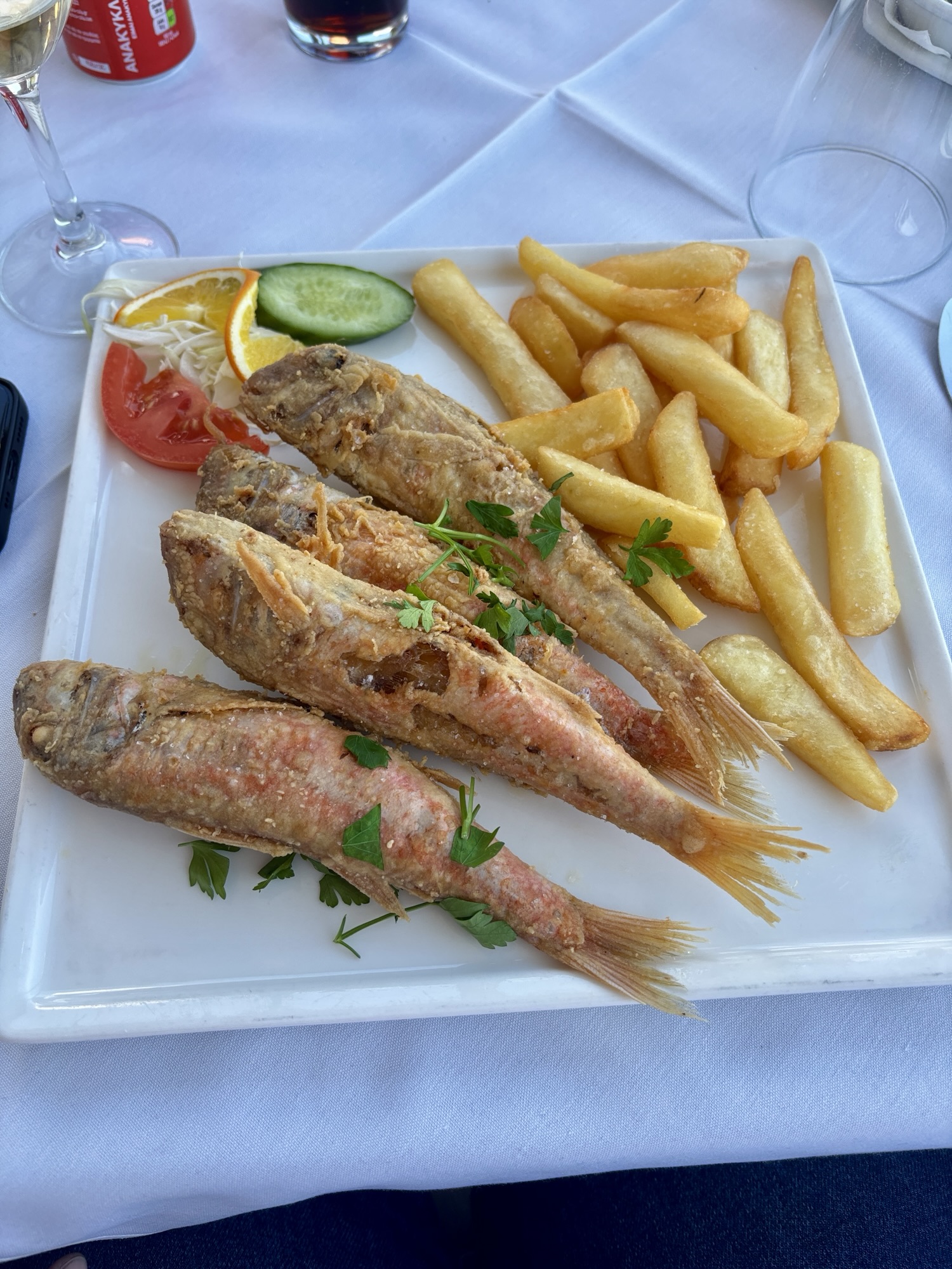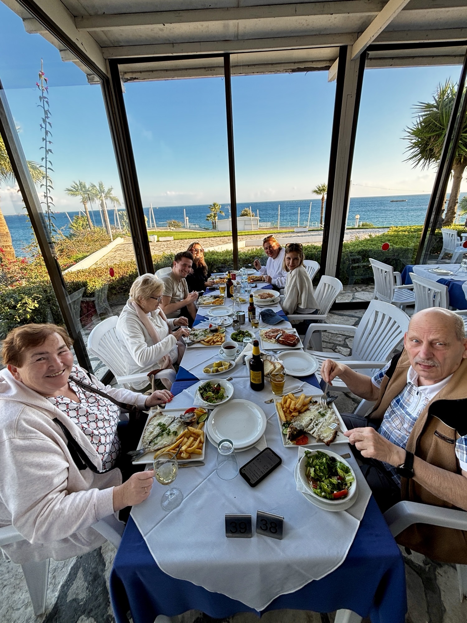 Jest już po 15tej gdy busik zawozi nas z powrotem na parking a my obieramy kierunek południowy w stronę wybrzeża. Jedziemy na zachód słońca w okolice słynnych „White Stones”, ale po drodze należy nam się lunch. Wstępujemy do malowniczo położonej tawerny Kalymnos, gdzie objadamy się pysznymi rybkami.