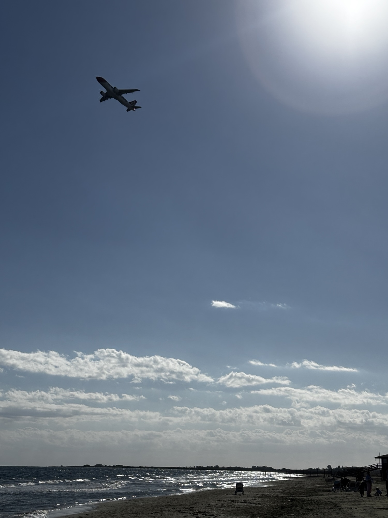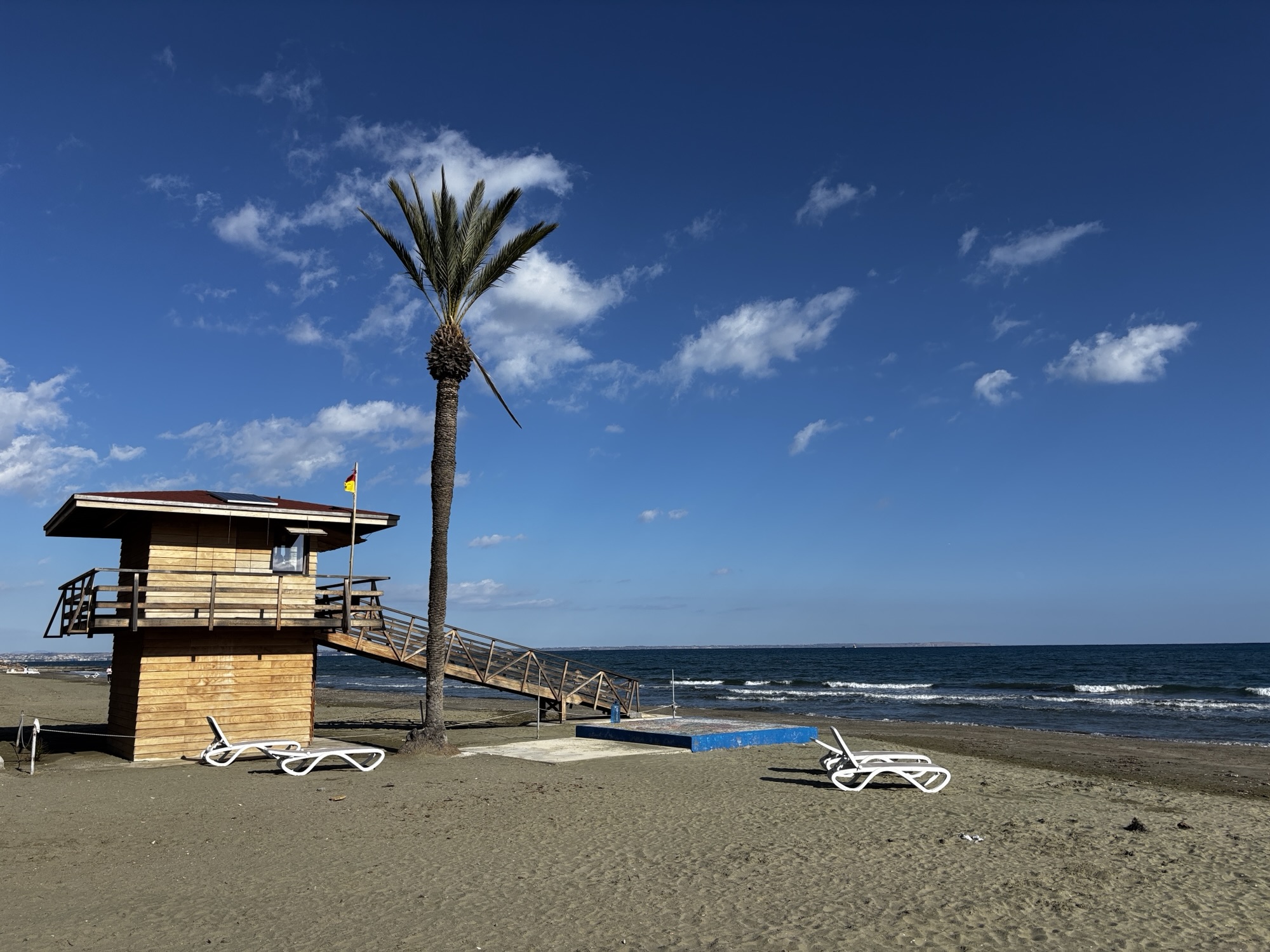 Rano jeszcze idziemy na deptak w Larnace aby zaopatrzyć się w pamiątki i złapać ostatnie promyki cypryjskiego słońca. Opuszczamy hotel o 12:00 ale nie jedziemy jeszcze na lotnisko lecz na niedaleka plaże Mackenzie. To popularne miejsce wypoczynkowe położone bezpośrednio przy lotnisku. Mamy do odlotu jeszcze 4h to sobie tam poczilujemy, zjemy lunch i poobserwujemy startujące samoloty. Pogoda jest, jak i podczas całego pobytu, piękna. Świeci słońce i mamy dziś 18C. Plaża pusta, plażowe restauracje tej porze też.
