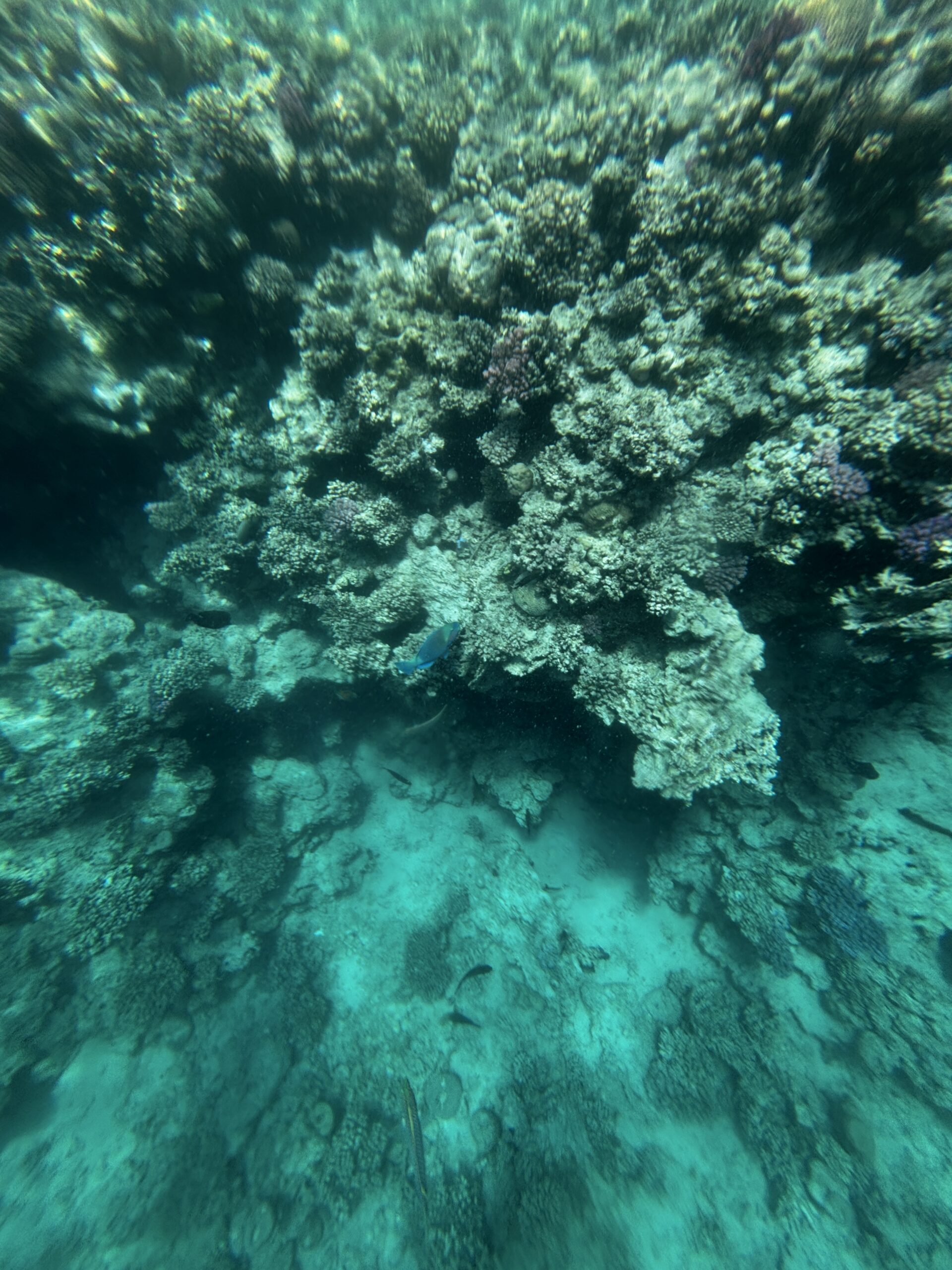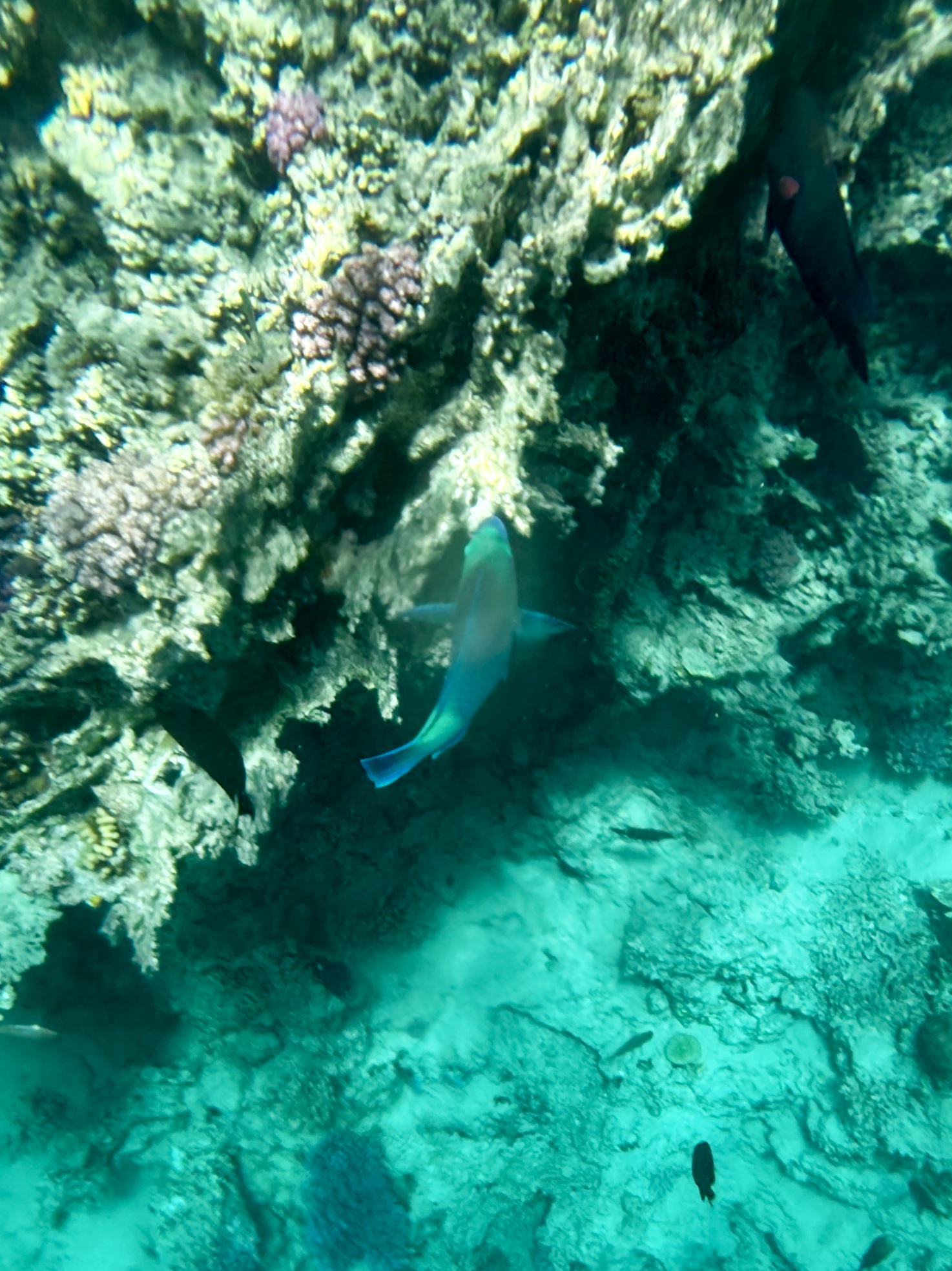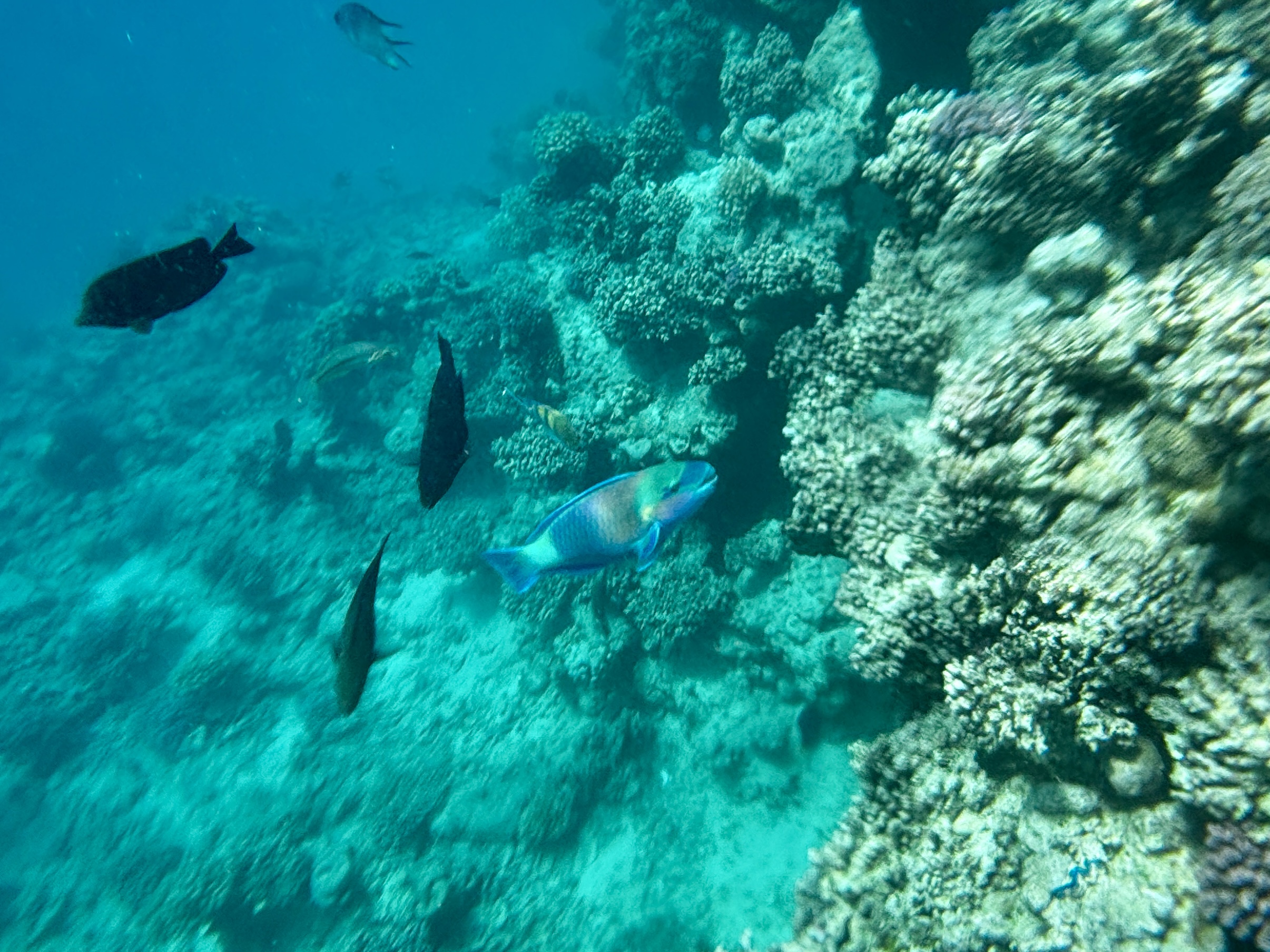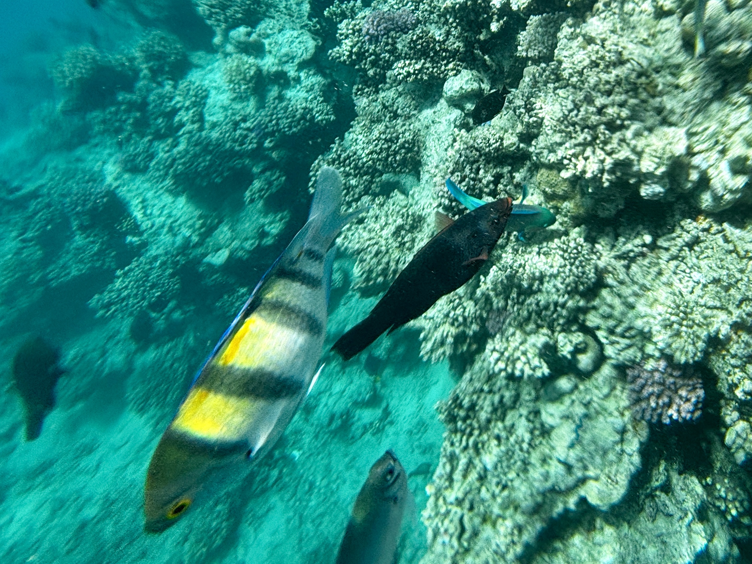 Rafa zaczyna się może 5 metrów od brzegu i jest zadziwiająco ładna. Oczywiście nie są to Malediwy, ale jest trochę żywych korali i ukwiałów, są różnokolorowe rybki – tylko kamery nie ma, bo jak wiecie się była zalała i te poniższe zdjęcia to iPhone w foliowym etui były robione to jakość słaba. Ale jak na przyhotelową rafę to szacunek.