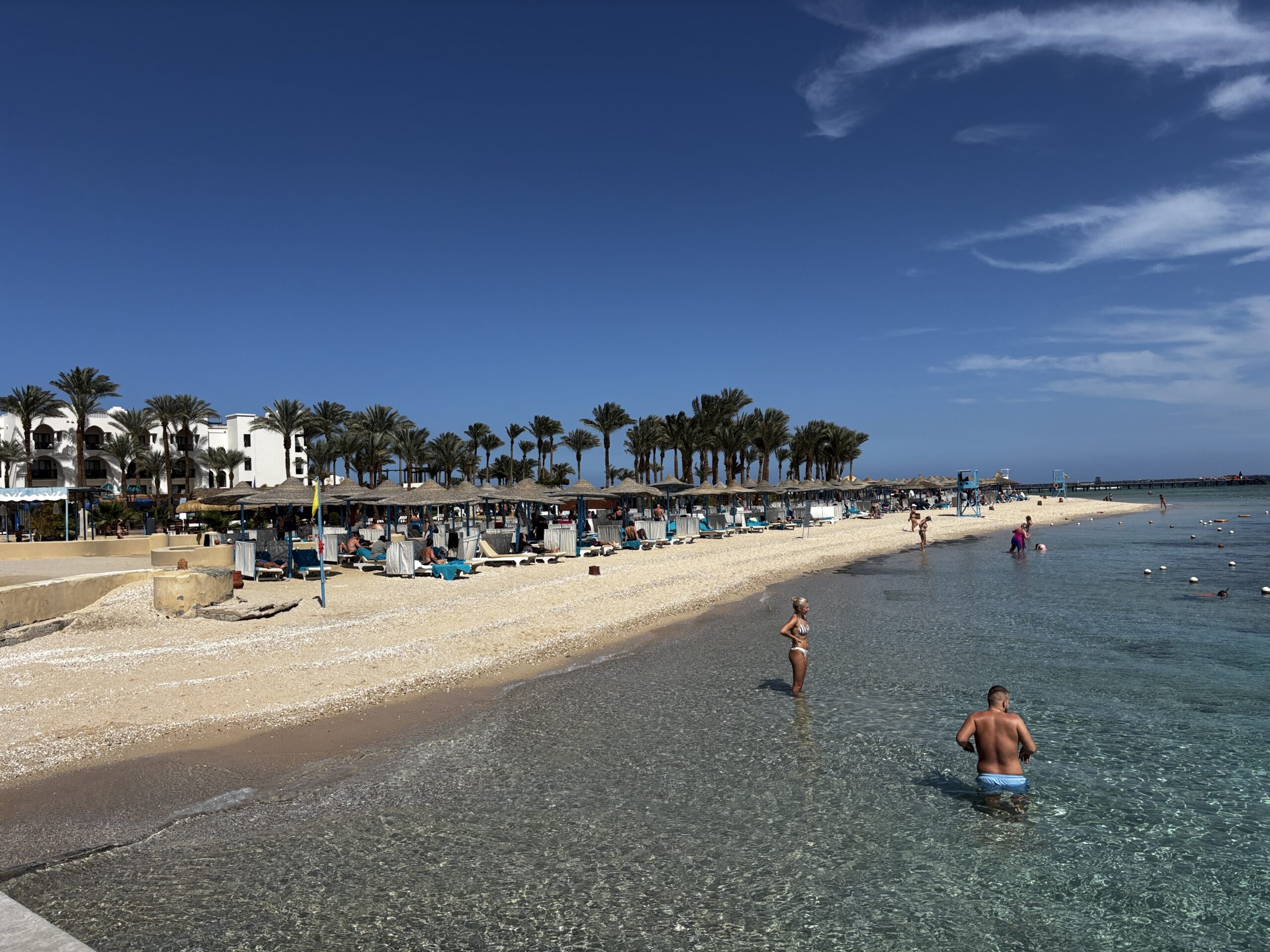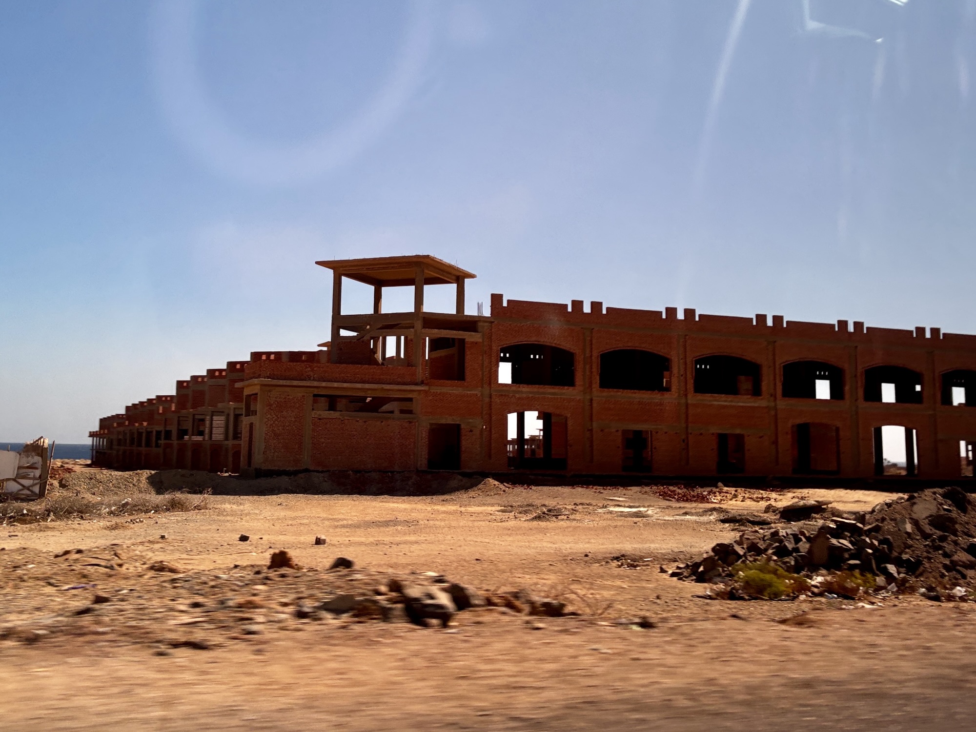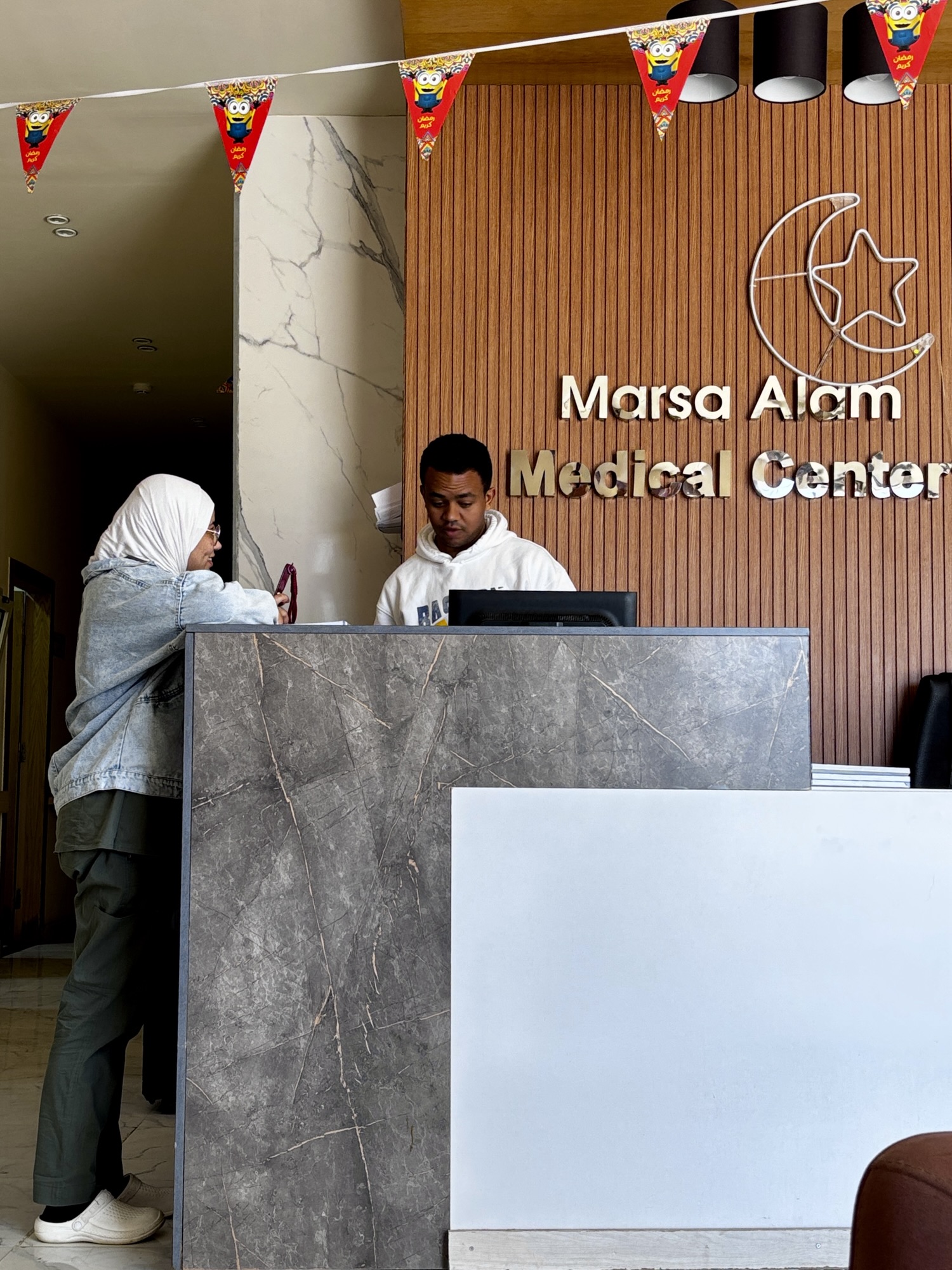 Kolejny dwudniowy wpis. Wczoraj dzień zaczęliśmy od nieplanowanej wycieczki do Marsa Alam. Nieplanowanej bo „wycieczka” była do szpitala. Rano, przed śniadaniem Aga zgłosiła ból gardła i ogólne osłabienie. Ledwo co mówił rano. No to zgłaszamy problem u ubezpieczyciela. Jako, że jesteśmy na zorganizowanym wypoczynku, Rainbow obowiązkowo ubezpiecza także nasz pobyt od nagłych zachorowań. Dodatkowo także wykupiliśmy sobie ubezpieczenie w Warcie tak na wszelki wypadek. Korzystamy jednak wpierw z tego co mamy w pakiecie. Naprawdę łatwy kontakt z ubezpieczycielem u którego Rainbow ma polisę czyli TU Europa przez stronę a potem już przez WhatsApp. Po zaledwie 15 minutach od zgłoszenia, dzwoni już do nas taksówkarz z informacją, że będzie za 20 minut i zabierze nas do szpitala do oddalonego o 60 km na południe Marsa Alam. To kawałek, ale widocznie nie ma nic bliżej. Podróż trwa ok. 45 minut. Szosa prowadzi blisko morza przez pustynię. Co jakiś kawałek mijamy kolejne enklawy hotelowe. Co ciekawe wiele z nich jest opuszczona.