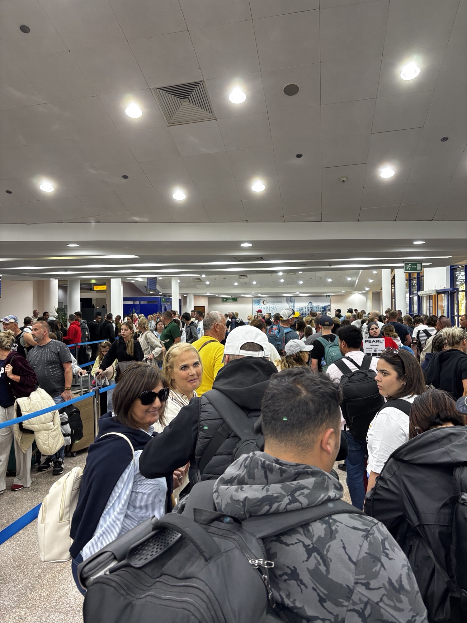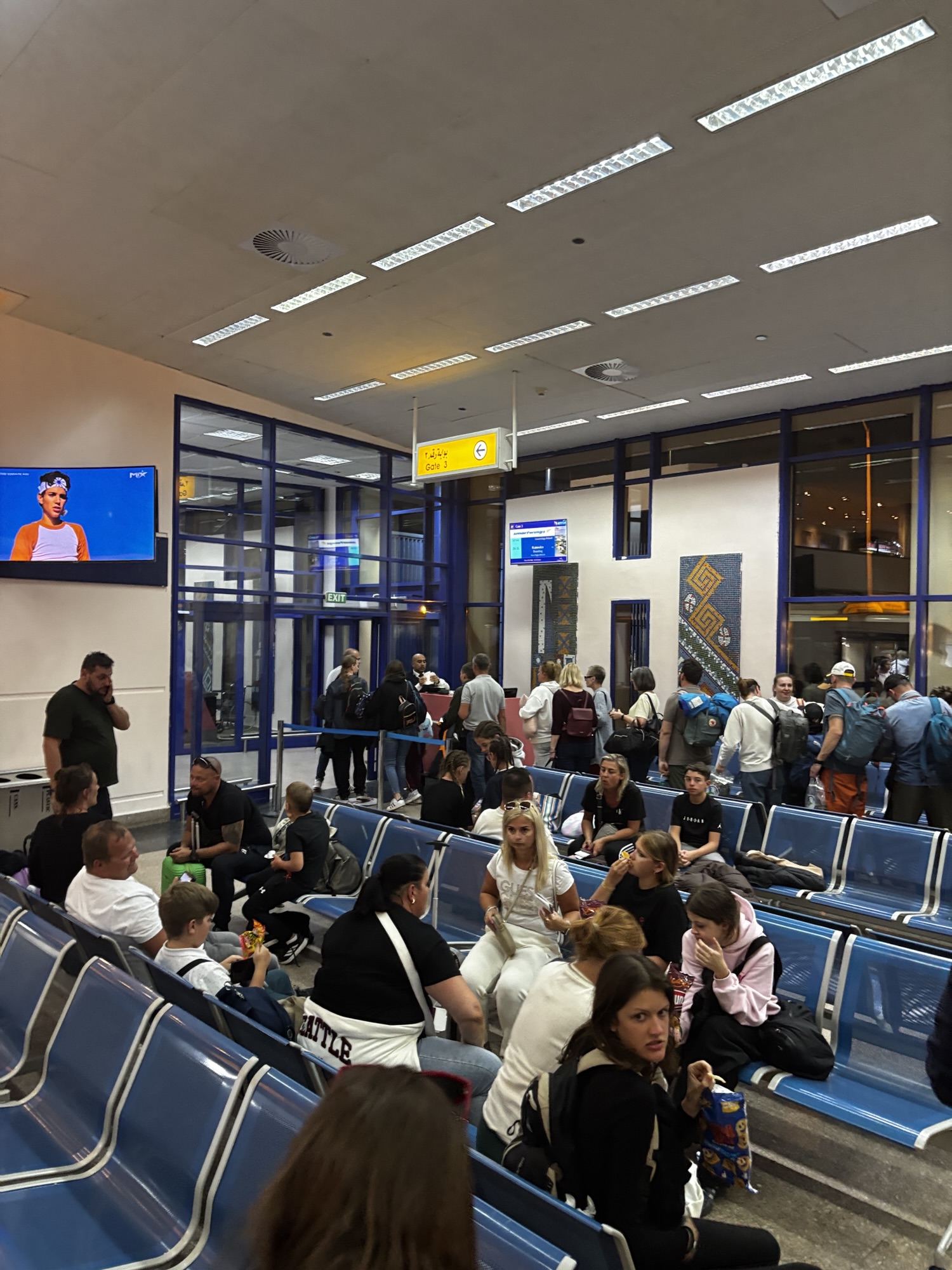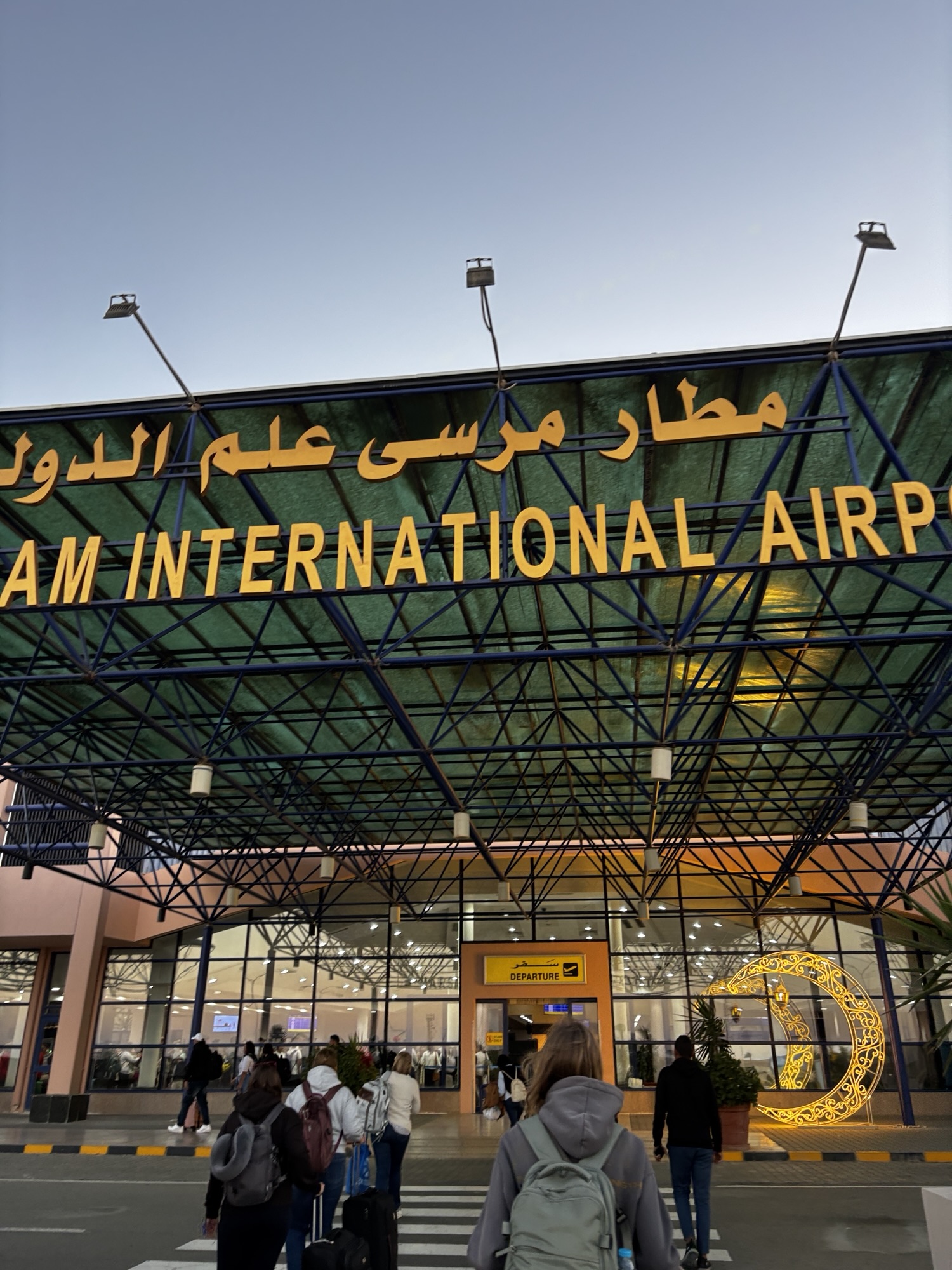 O 17:15 podjeżdża autobus. Ostatnie zdjęcia i po 20 minutach wysiadamy przed halą odlotów na lotnisku Marsa Alam. Tam tłok niesamowity o ogólnie bardzo duże zamieszanie bo to ramadan przecież, zbliża się zachód słońca to pora karmienia nadeszła i cała obsługa poszła sobie coś zjeść. Przerwa trwała ok. 20 minut. Potem też nie było lepiej bo kontrola za kontrolą, wypełnianie jakiś dodatkowych świstków i wieczny ścisk.