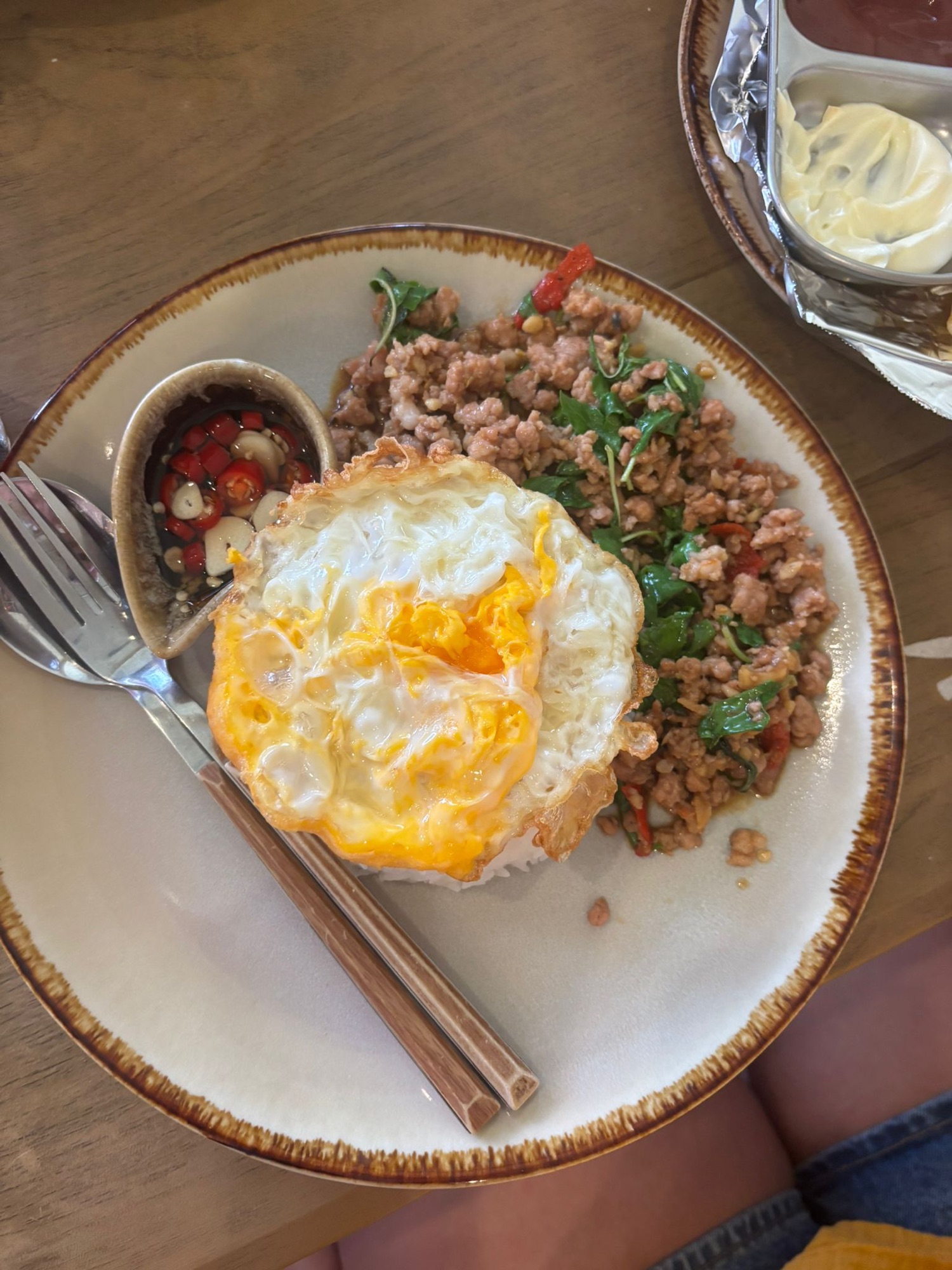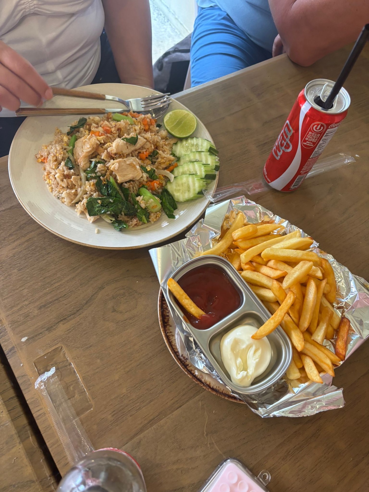 Jeszcze tylko wspólna kolacja. Zamawiamy typowe tajskie specjały i fryty na „przełamanie” smaku 😄