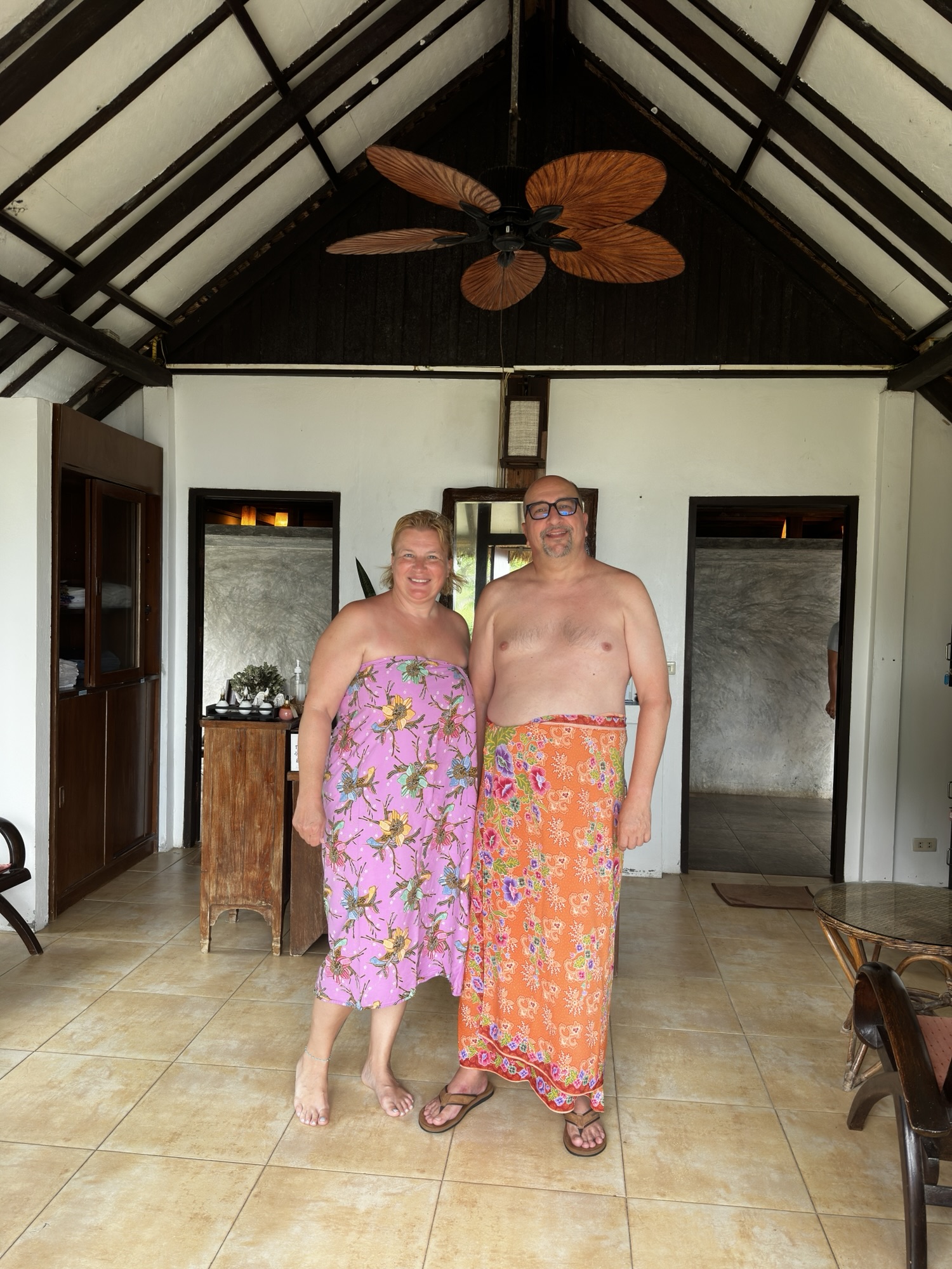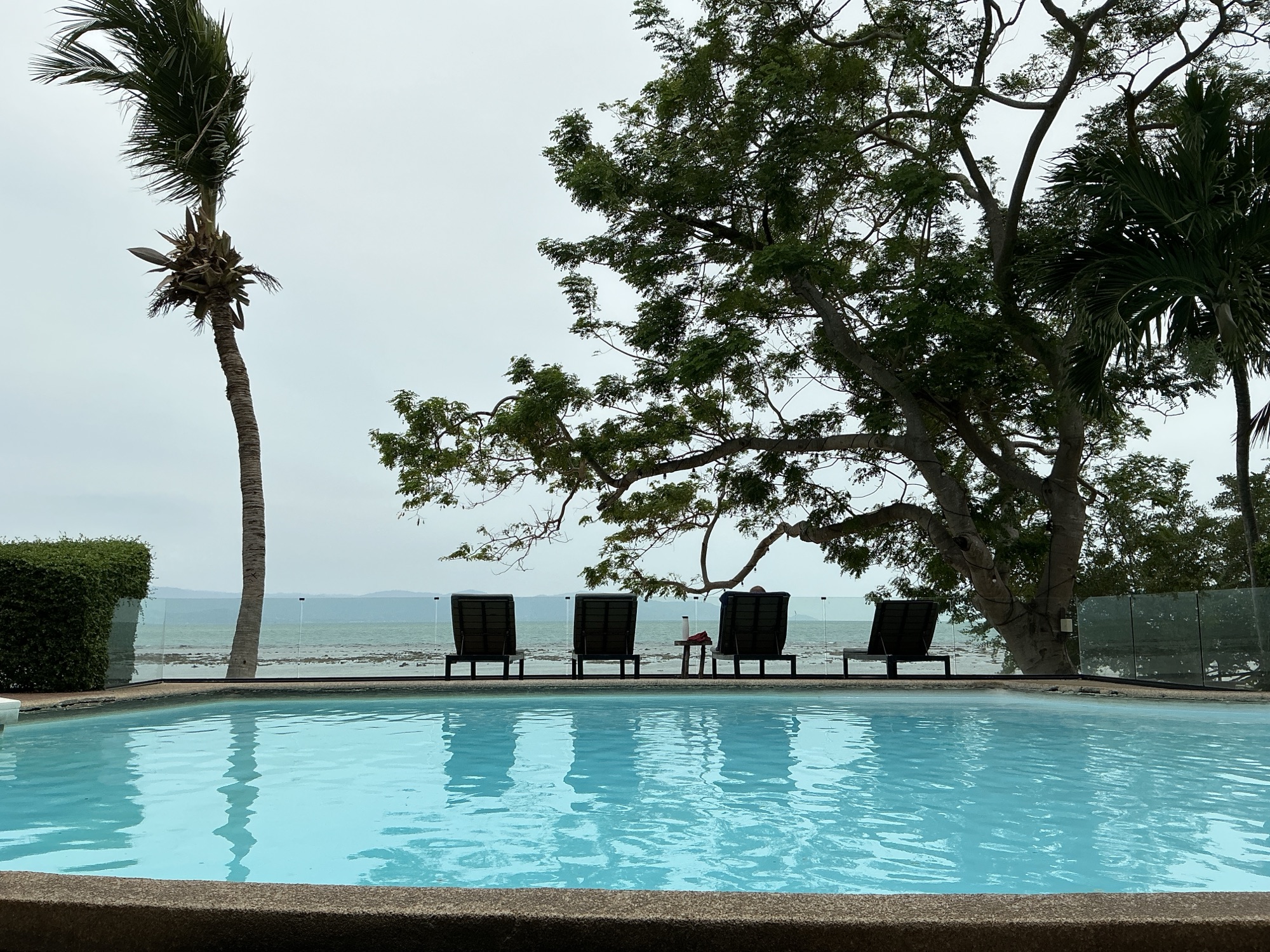 My po tych sesjach z masażystkami, spotykamy się na basenie, aby odpocząć trochę. Pogoda dalej nie rozpieszcza – jest pochmurnie, ale także bardzo gorąco i wilgotno.