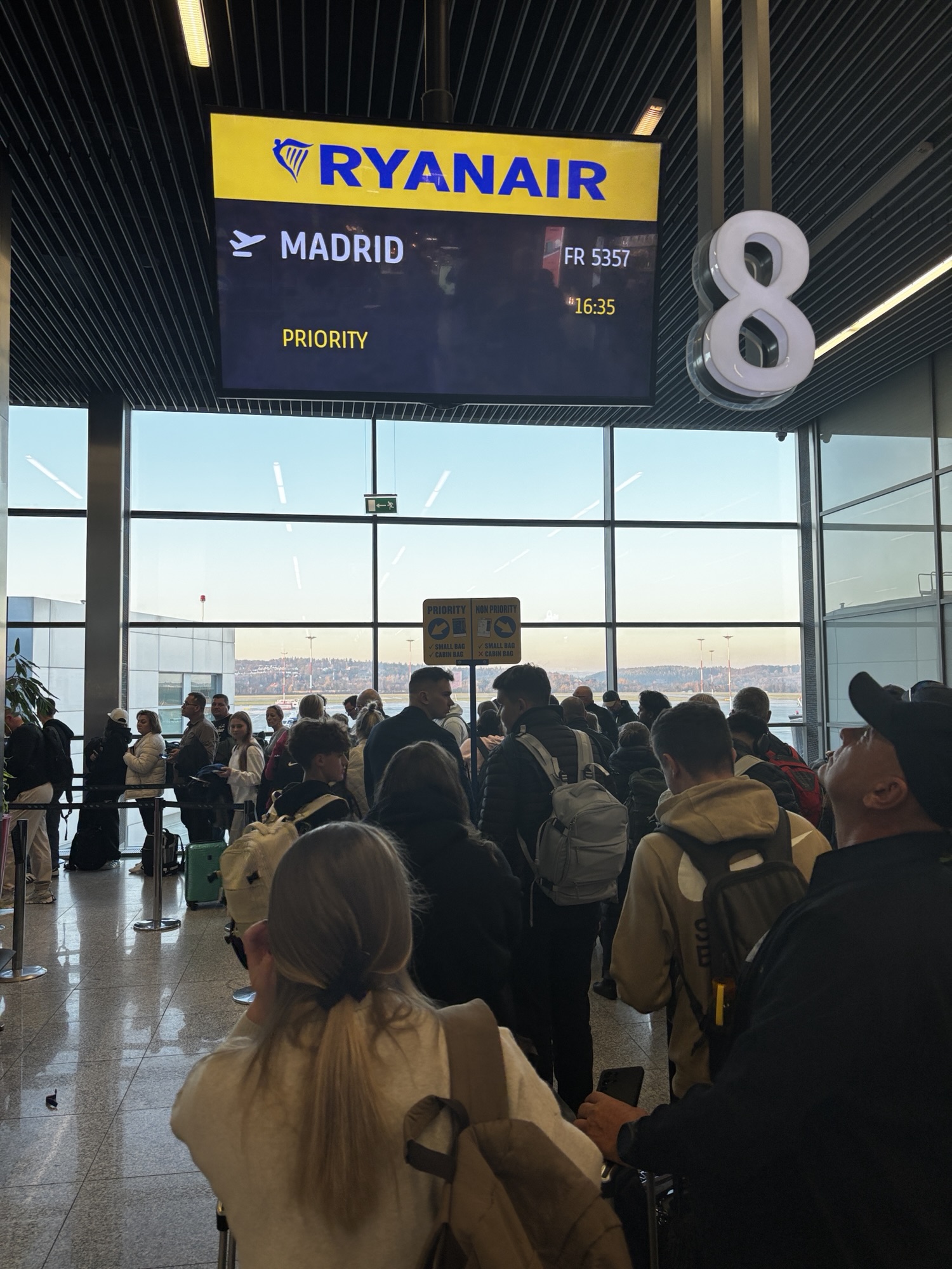 Nie lecimy jednak tam bezpośrednio z Krakowa lecz wpierw odwiedzimy na kilkanaście godzin Madryt. Tak też zaczynamy naszą podróż – boarding na lot Ryanair do Hiszpanii.