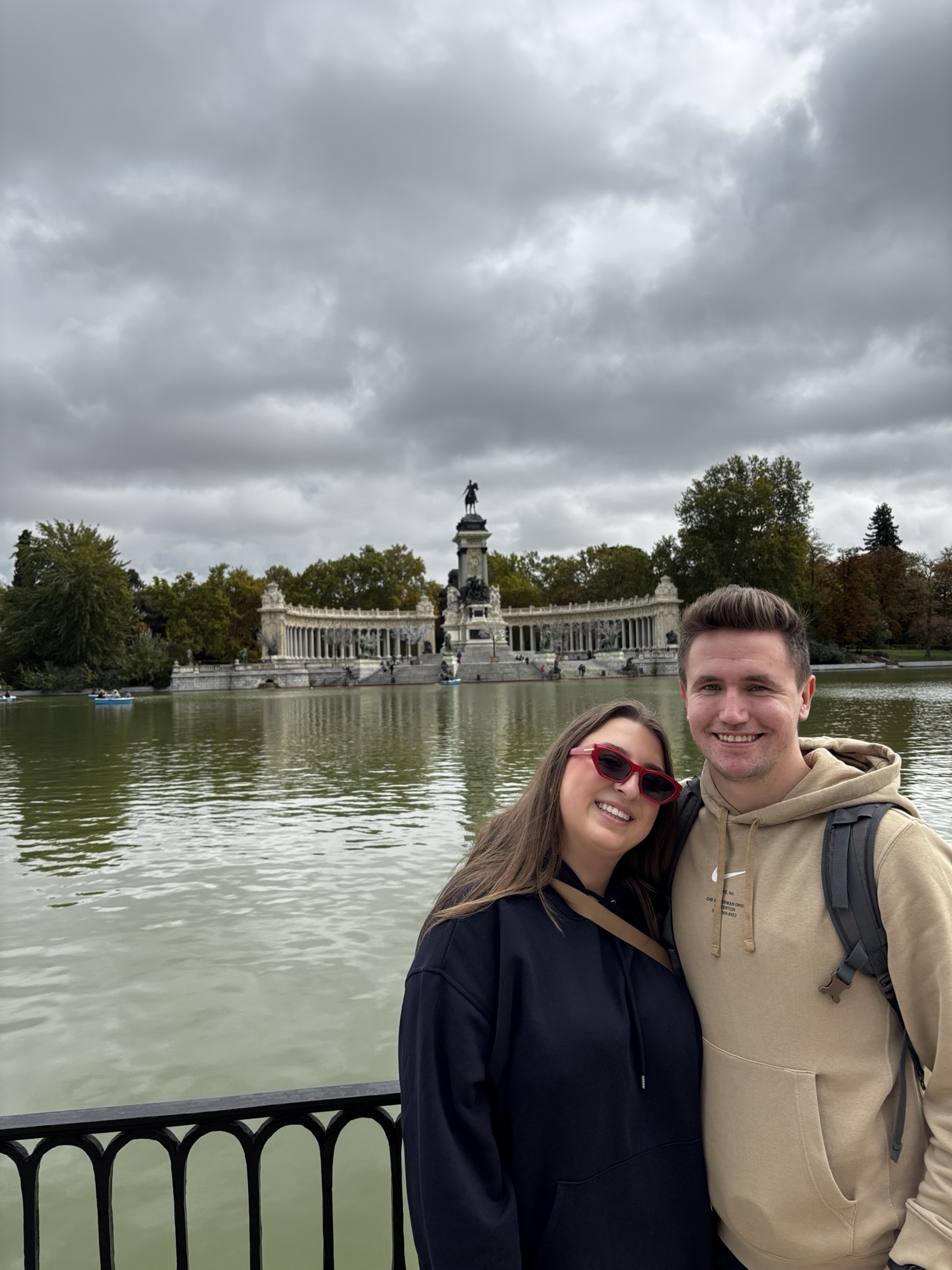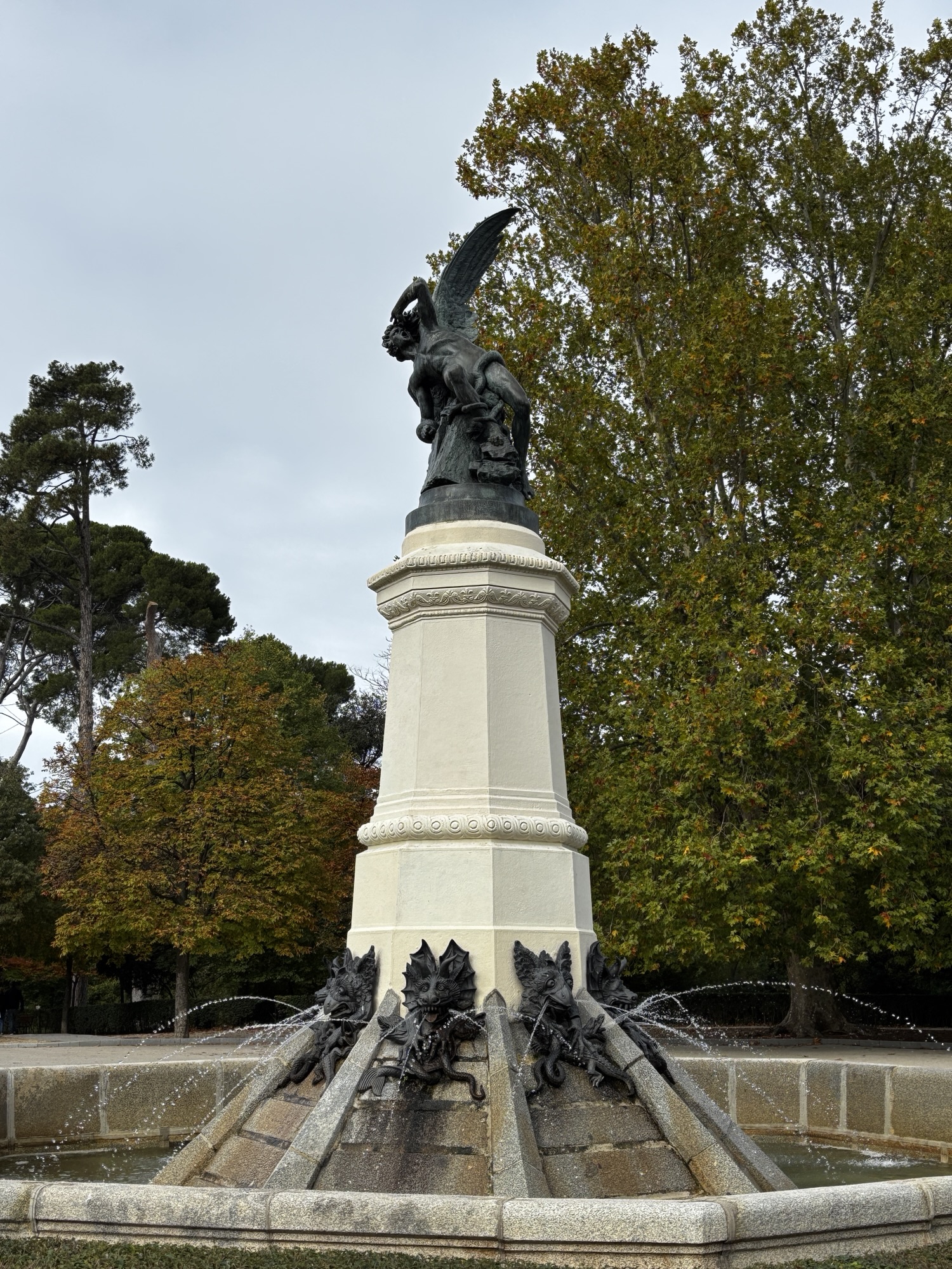 Potem nasze kroki kierujemy do przepięknego parku El Buen Retiro. To spora przestrzeń pocięta alejkami i pomnikami. Naszym celem jest Crystal Palace. Piękny przeszklony pałac położony w centrum tego parku. Po drodze mijamy pomnik upadłego anioła i docieramy do pałacu, który jest w remoncie. O tym nie wiedzieliśmy. Robimy więc zdjęcia przy jeziorku z fontanną przy którym wybudowany jest ten pałac.