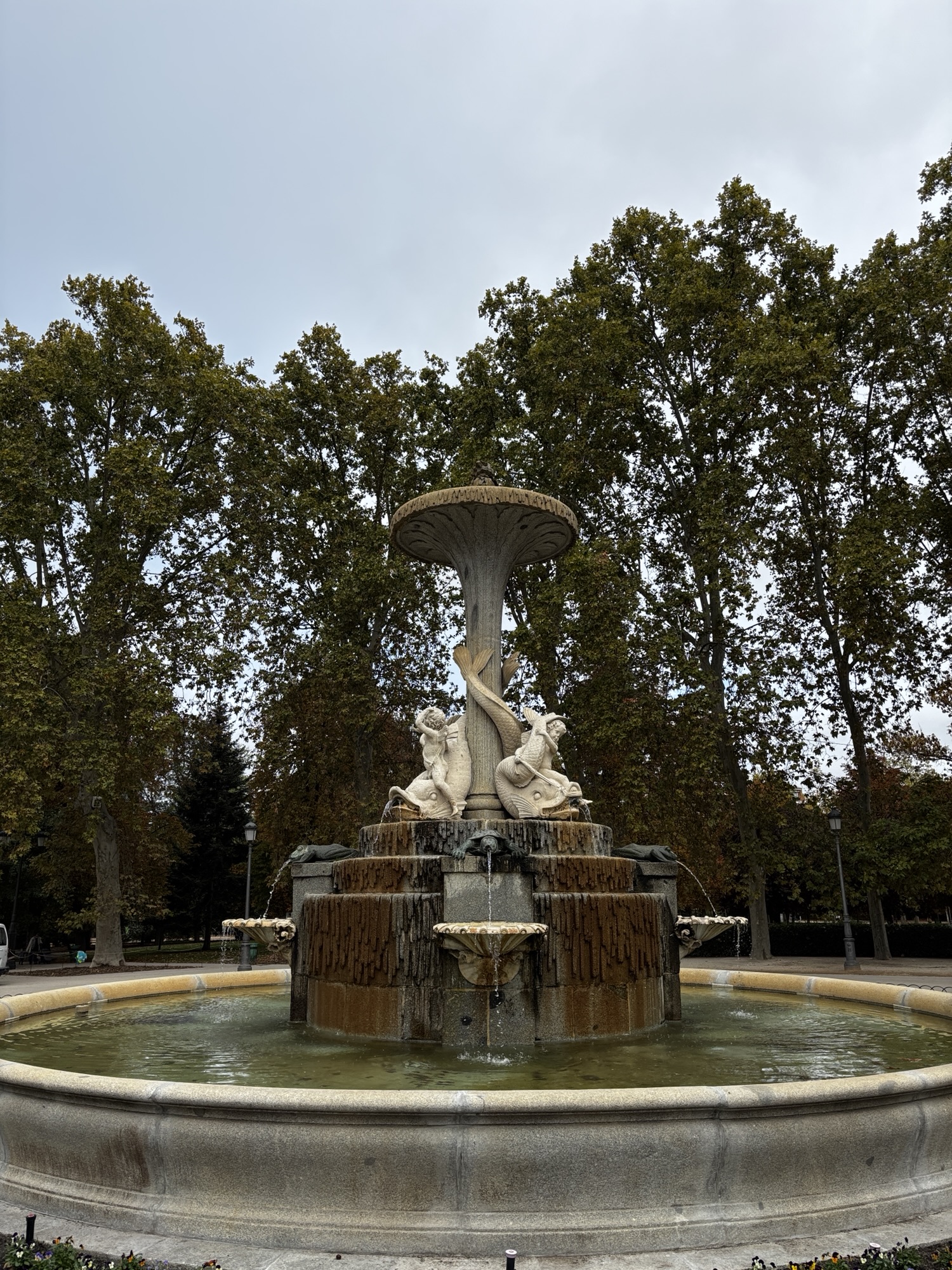 Dalej, już w drodze powrotnej mijamy kolejne, większe już jeziorko z górującym za nim pomnikiem króla Alfonsa XII , kolejne fontanny i atrakcje parku.