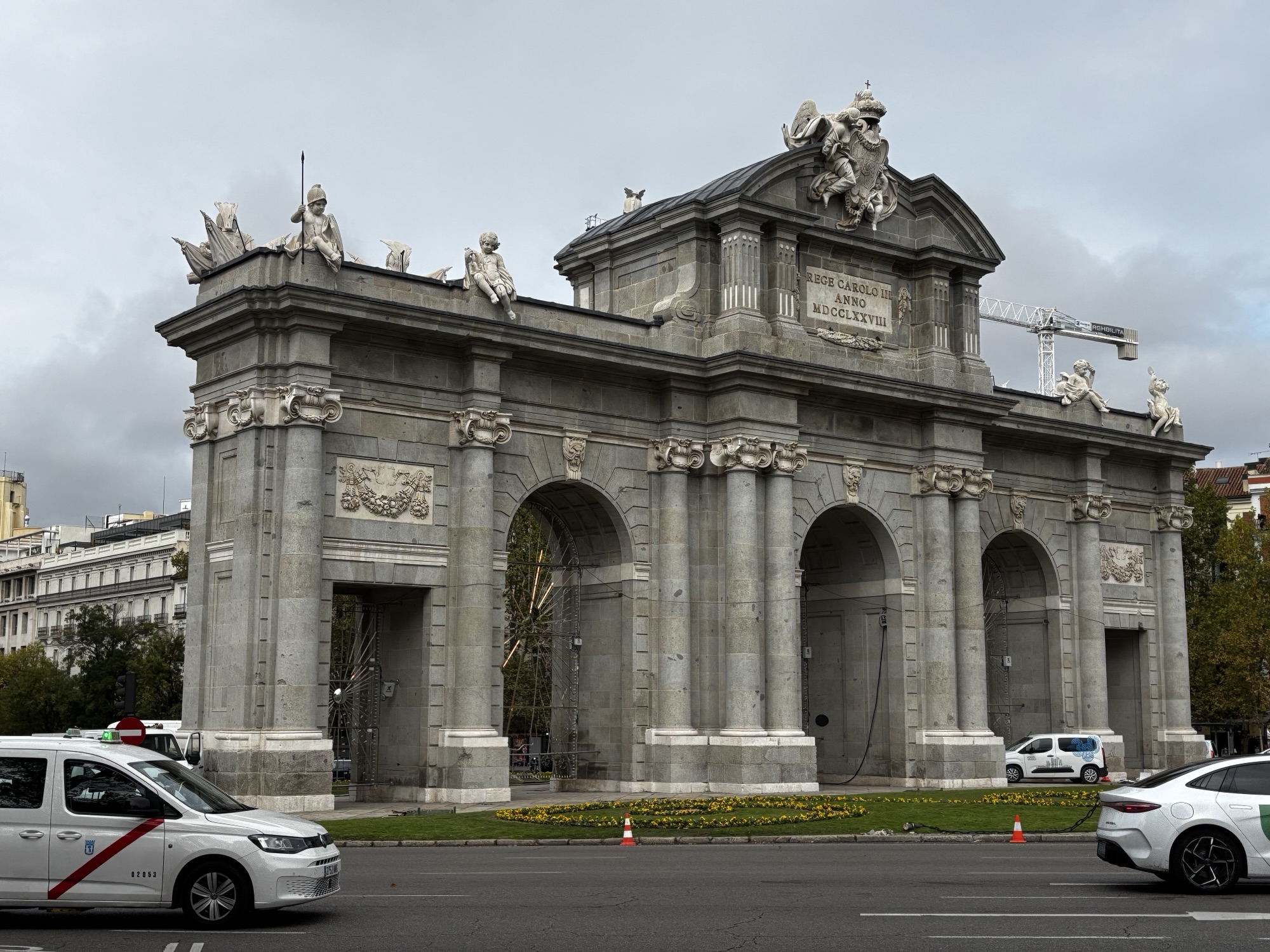 Opuszczając już park dochodzimy do bramy Puerta de Alcalá, która kiedyś była jedna z bram wjazdowych do miasta a teraz jest znana z tego, że piłkarze i kibice Realu świętują tutaj zdobyte tytuły.