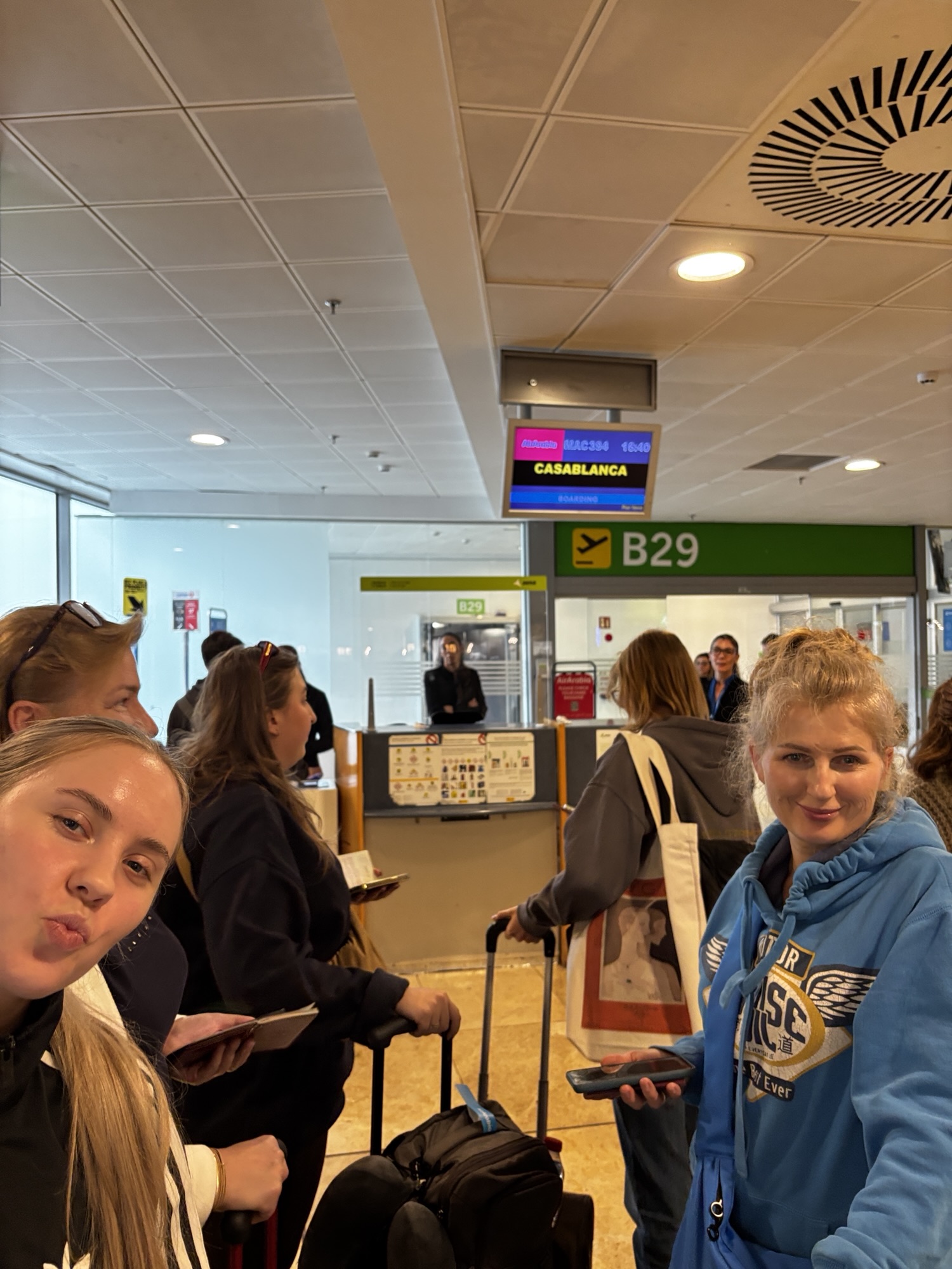 Tu zwykle i obowiązkowe procedury i na pół godziny przed planowanym odlotem do Casablanki zaczyna się boarding na pokład samolotu AirArabia.