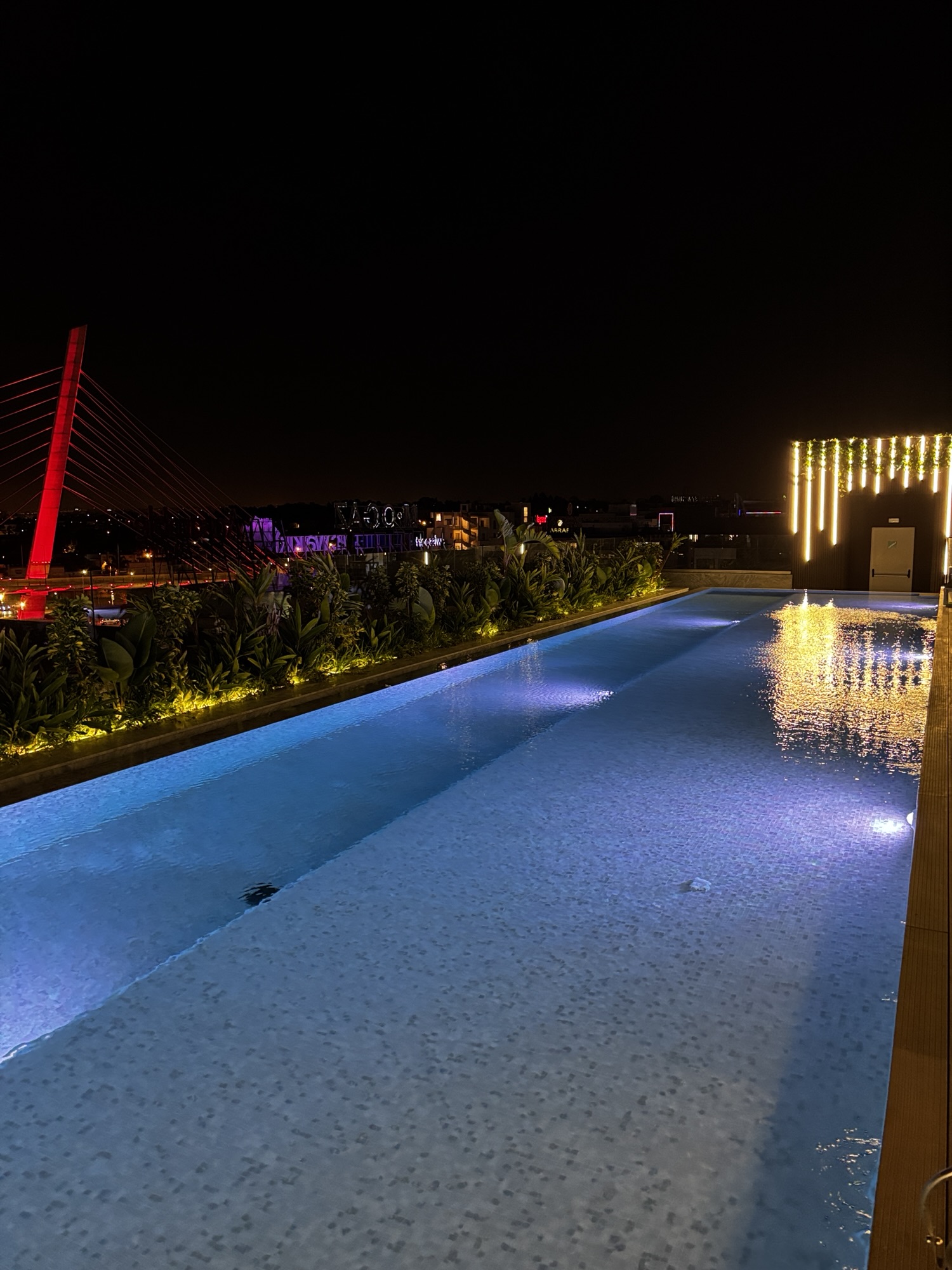 Bez obaw. Tu nie było skuchy. Dwa mercedesy już czekały na nas i sprawnie zawiozły nas szybko do naszego hotelu. Przez następne 4 dni będziemy gośćmi w Kenzi Sidi Maarouf Hotel. Po zameldowaniu wyjeżdżamy na dach hotelu, gdzie mamy basen oraz bar. Zamawiamy lekkie potrawy, gdyż jest już 21:00.
