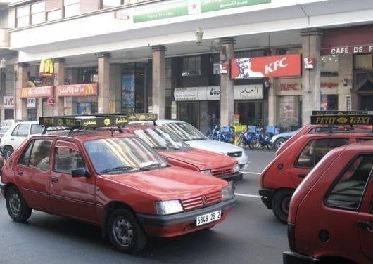Łapiemy na ulicy lokalne taksówki zwane petit taxi. Są najczęściej czerwone samochody, które służą do poruszania się po terenie miasta. Każdy z nich może zabrać maksymalnie trzech pasażerów i kursuje wyłącznie w granicach Casablanki. Taksówki te są tanie i szybkie, ale bardzo stare i rozgruchotane. Musimy wziąć aż 4 taksówki ale jest ich w mieście ponad 10 tysięcy więc nie czekamy długo. Przejażdżka taka taksówką to atrakcja sama w sobie. Po pierwsze – stan techniczny tych samochodów odbiega wiele od standardów taksówek w Europie więc nie wiesz czy np. zaraz koło się nie urwie. Po drugie – styl jazdy kierowców to istne szaleństwo. Wcisną się w każdą wolną przestrzeń w korku aby tylko być szybciej, łamią przepisy, jadą pod prąd, i tym podobne. Wszystkie samochody sa poobijane co świadczy o stylu jazdy. Na szczęście w powolnym ruch spowodowanym sporymi korkami, nie rozwijają nadmiernych prędkości.