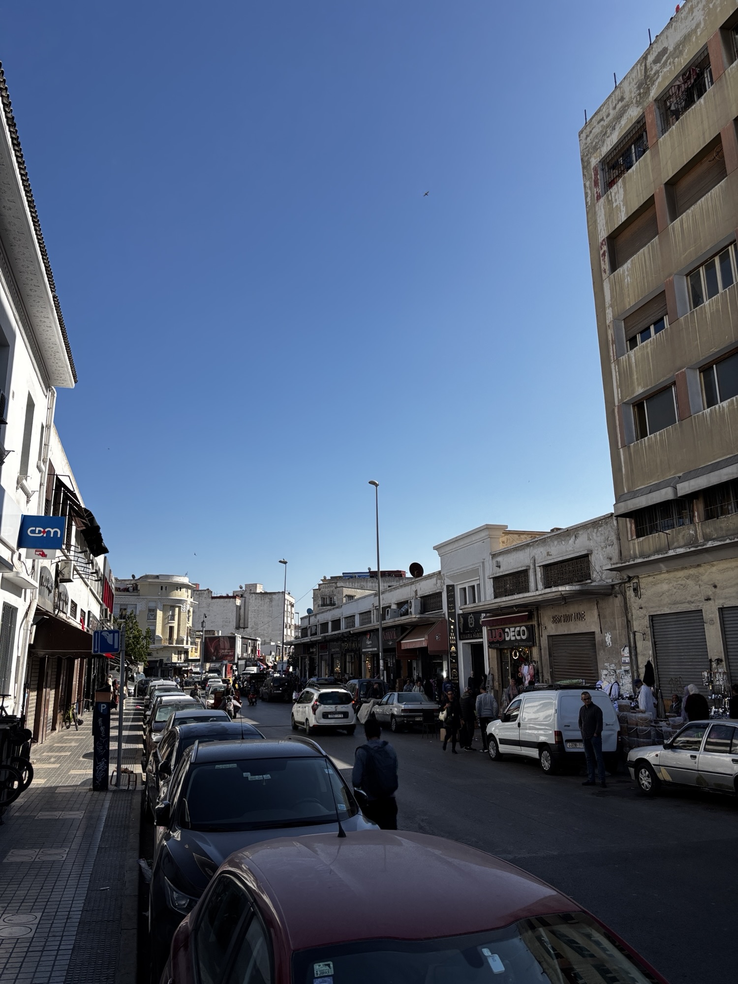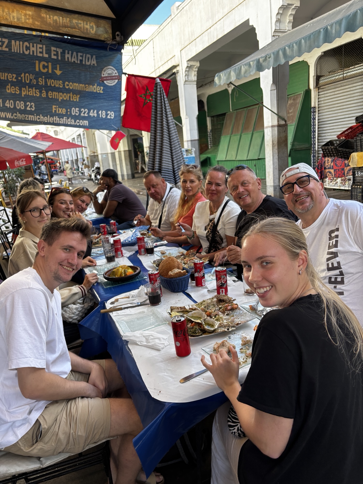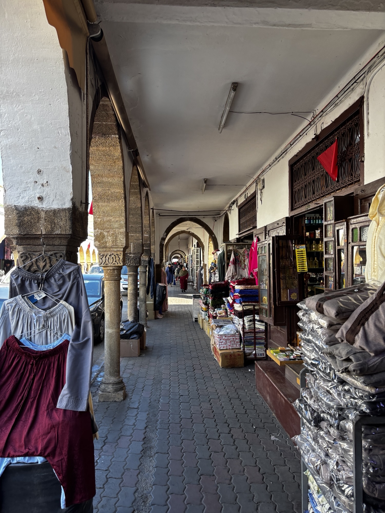 Centrum handlowe składa się z kilkudziesięciu pomniejszych sklepików i jednego dużego – Marjane. Marka u nas nieznana, gdyż jest to największa sieć hipermarketów w Maroku tylko, oferująca szeroki wybór produktów spożywczych, odzieży, elektroniki i artykułów domowych. Kupujemy jakieś lokalne słodycze, daktyle, oliwy i tam inne ale głównie spożywcze specjały. Zanosimy zakupy do hotelu.