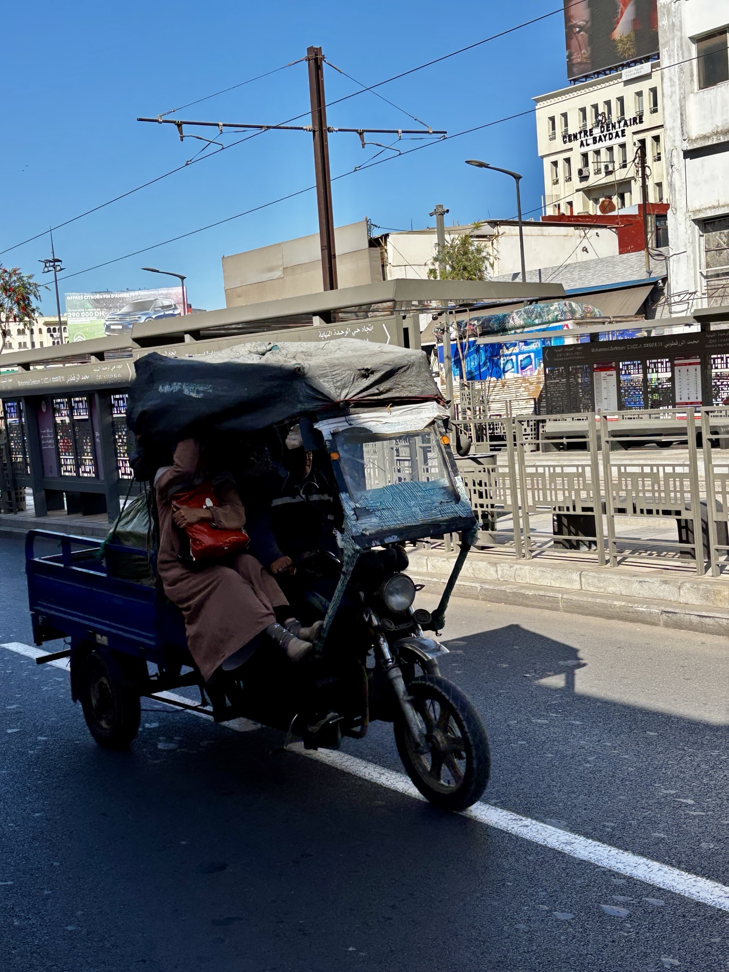 Zaraz obok budynku targu mamy przystanek tramwajowy i akurat linia która operuje z tego miejsca jedzie pod nasz hotel. Decydujemy się na powrót do hotelu takie środkiem transportu. Tramwaje są w Casablance najszybszym chyba środkiem transportu publicznego. W niecałe 1/2 godzinki docieramy do hotelu bardzo komfortowymi wagonikami wyprodukowanymi przez francuski Alstom.